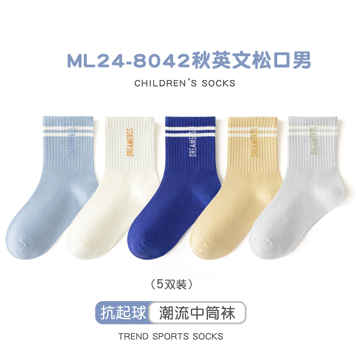 2024男童袜子春秋棉袜儿童中大童学生运动字母潮袜男孩透气中筒袜