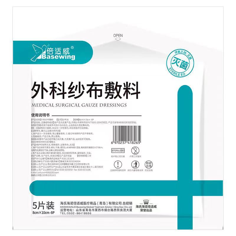 하이누오 수술 거즈 드레싱 BeiShiWei 멸균 거즈 블록 8*10 상처 소독 의료 탈지 거즈