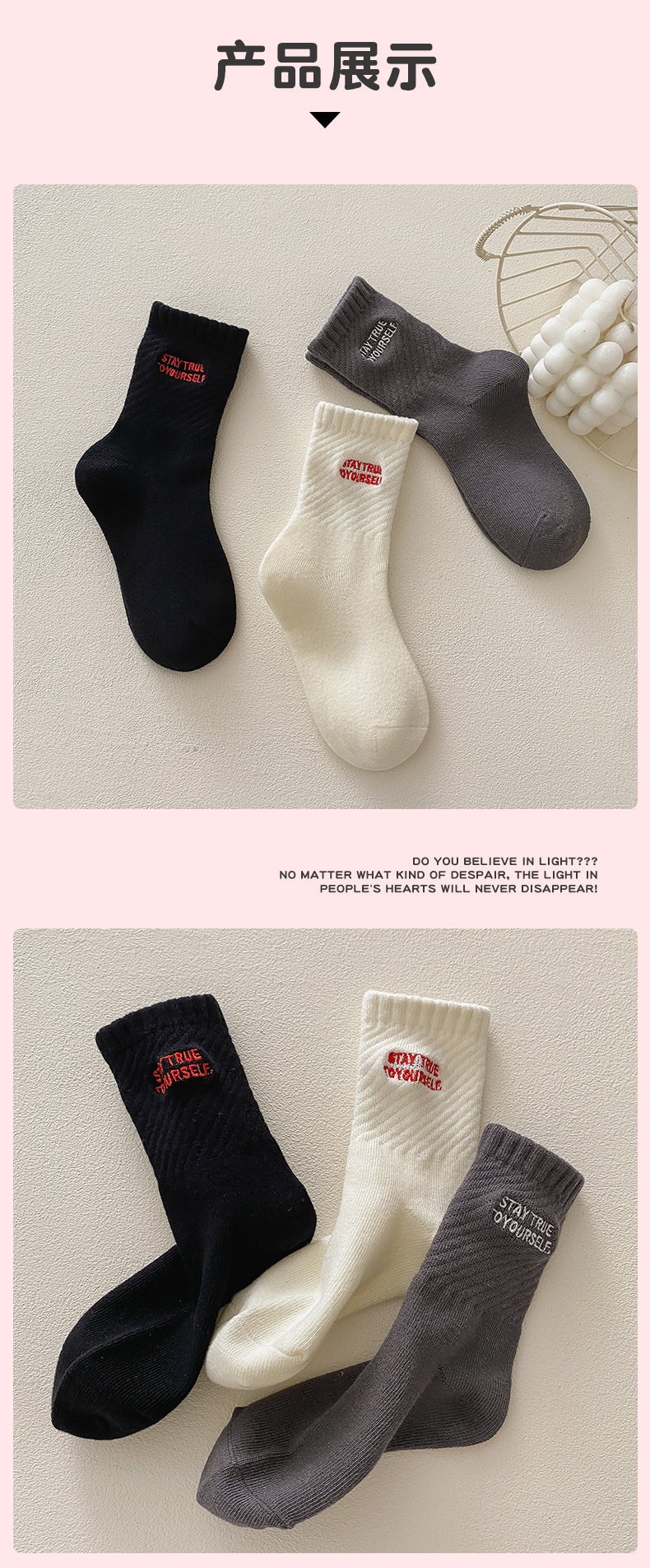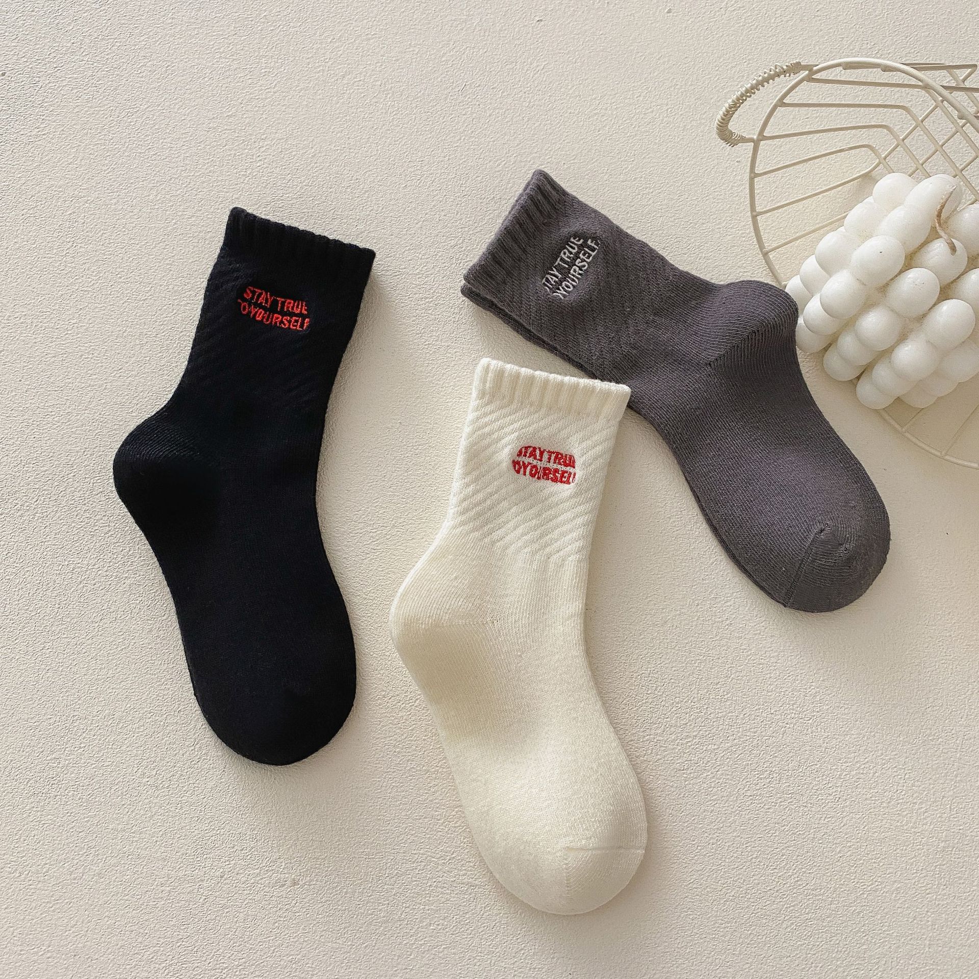 새로운 도착 올 매치 레터 스포츠 양말 중간 양말 심플한면 양말 스택 코일 양말 학술 스타일 어린이 양말스토어 가기