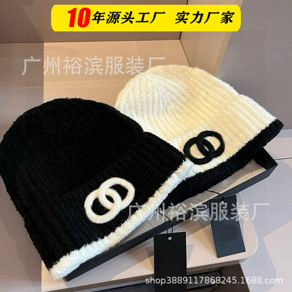 高品质秋冬网红款双C刺绣百搭时尚冷帽大牌针织帽保暖小香毛线帽