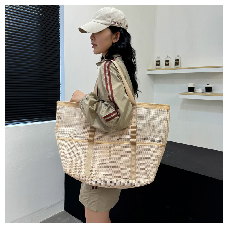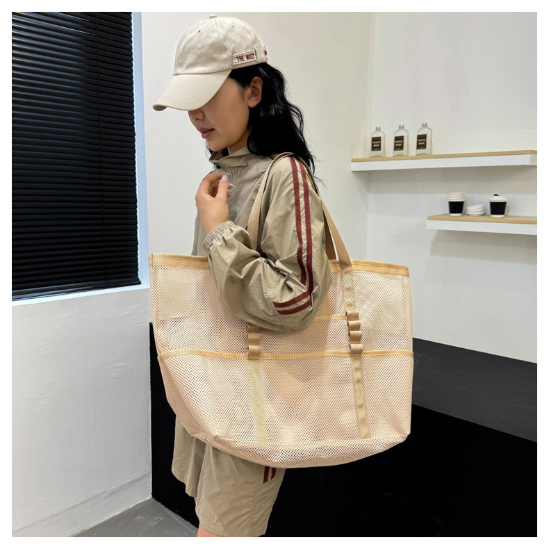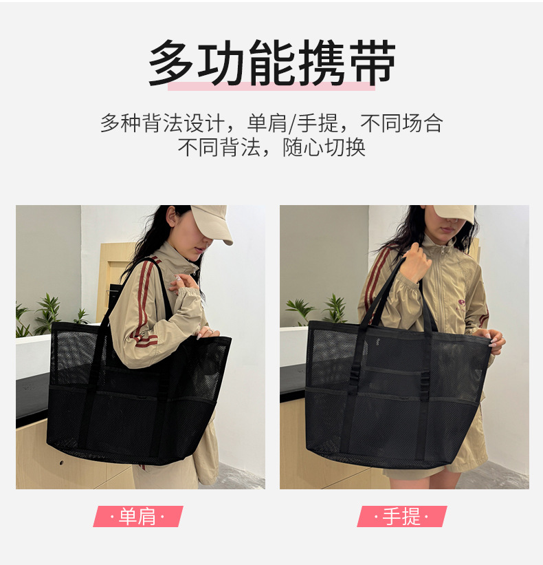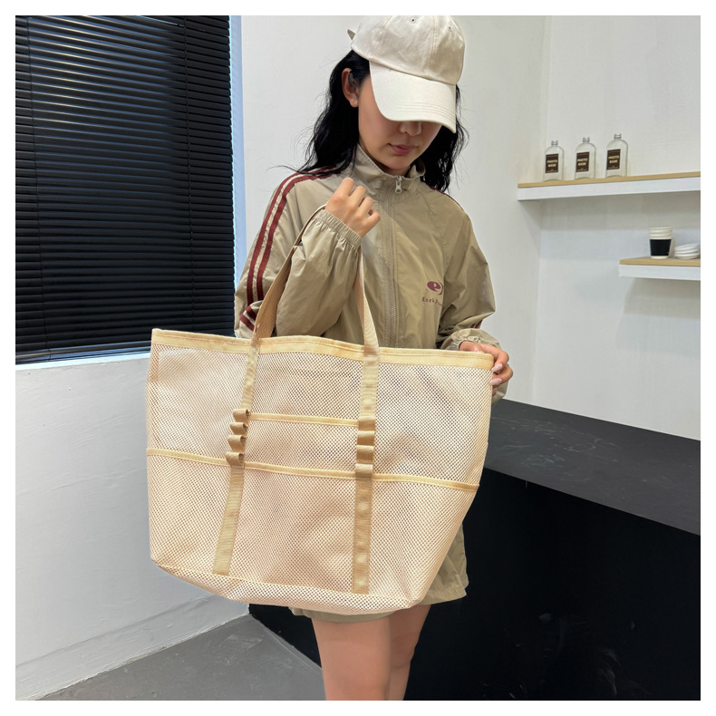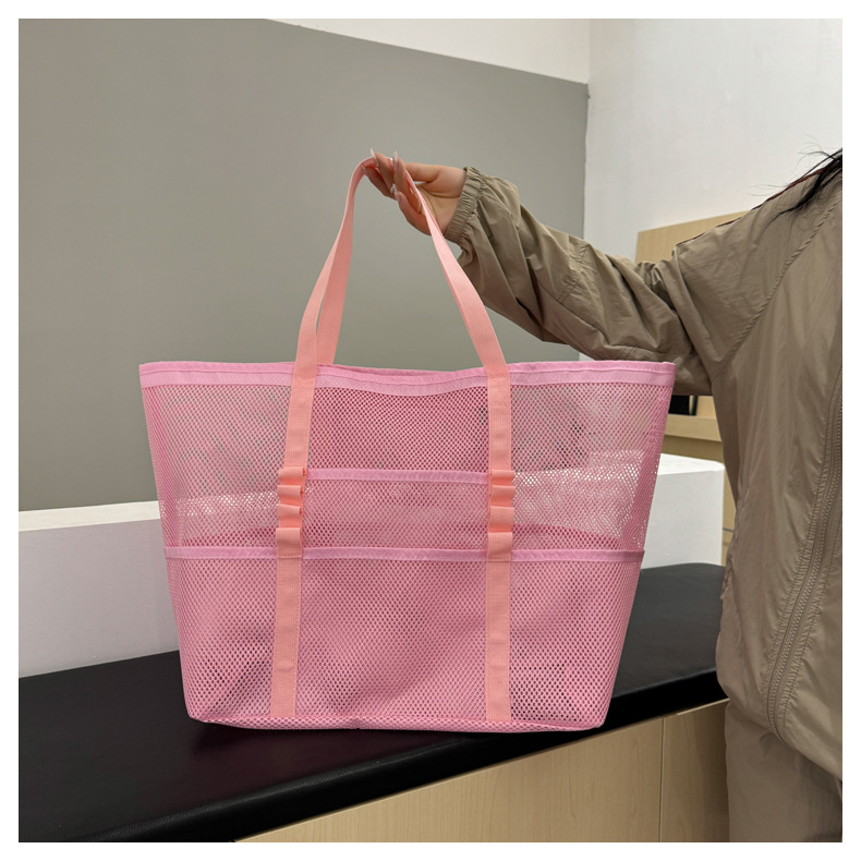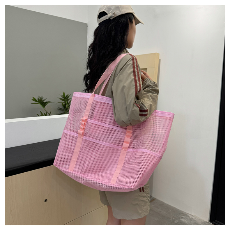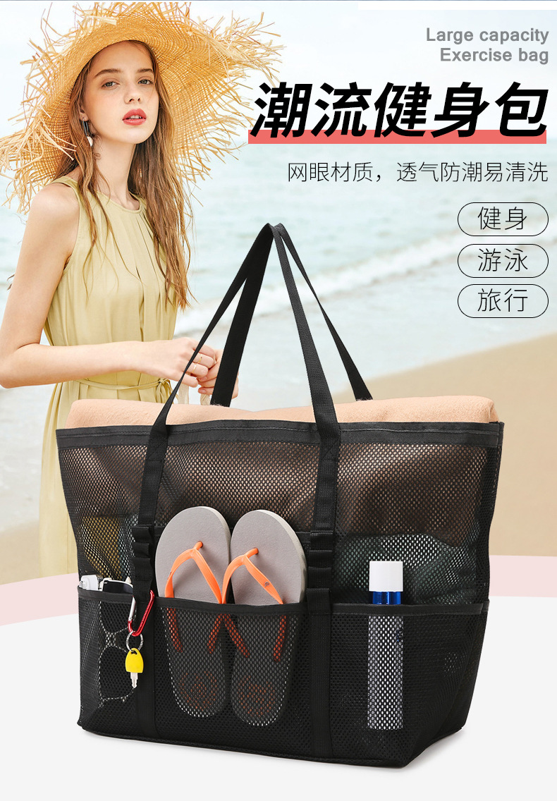 아마존 새로운 헤어 비치 가방 해변 휴대용 메쉬 가방 휴대용 메쉬 어깨 대용량 야외 여행 가방