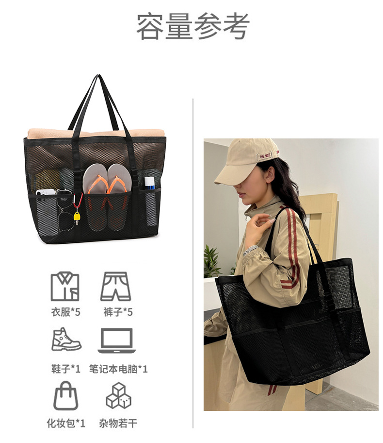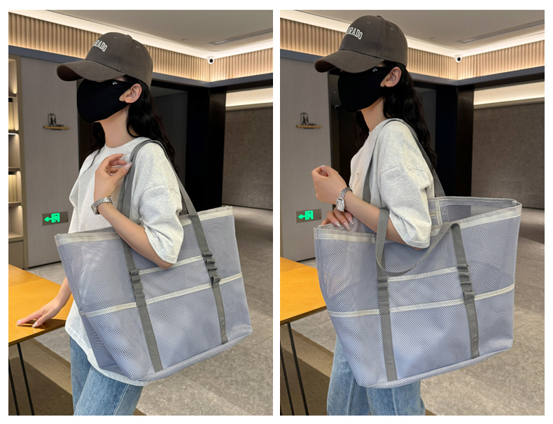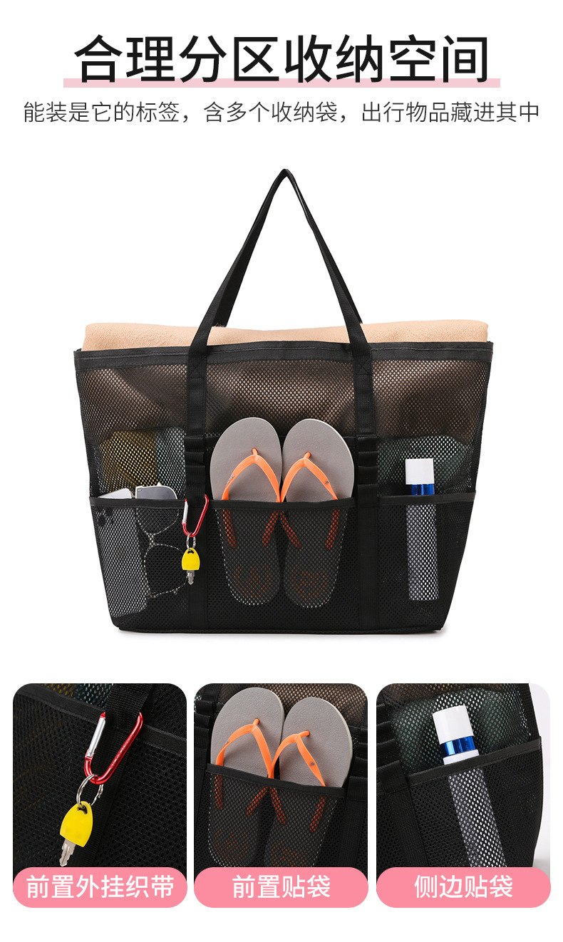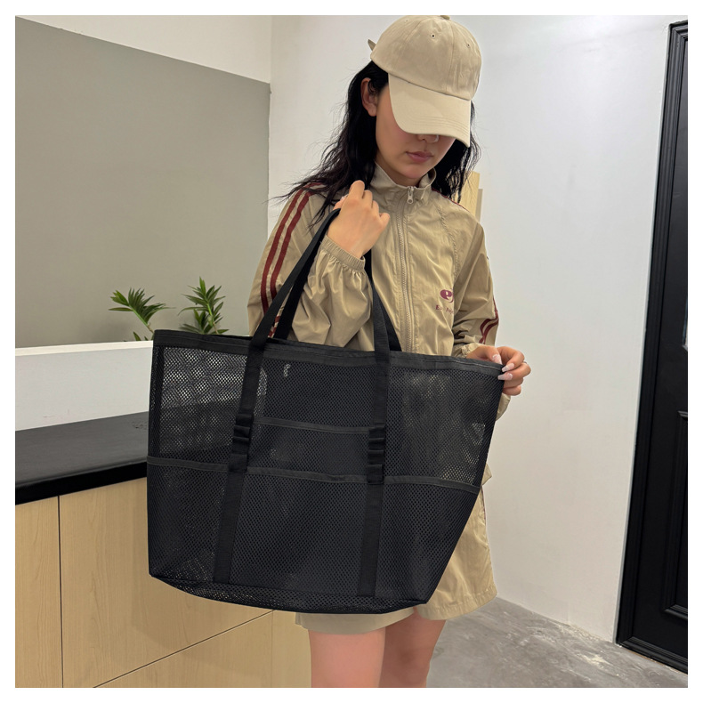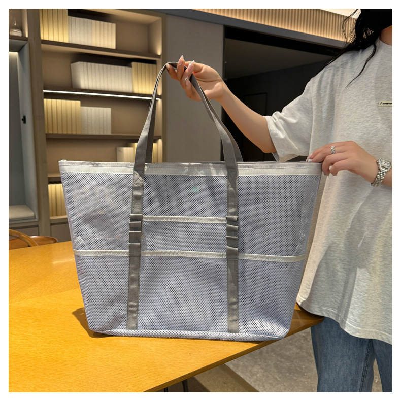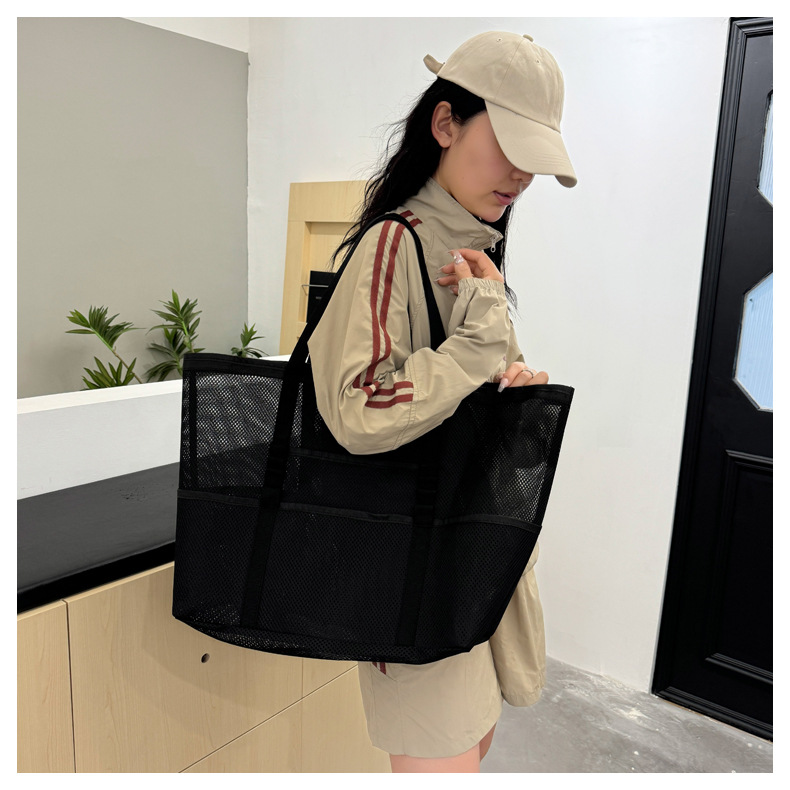 아마존 새로운 헤어 비치 가방 해변 휴대용 메쉬 가방 휴대용 메쉬 어깨 대용량 야외 여행 가방