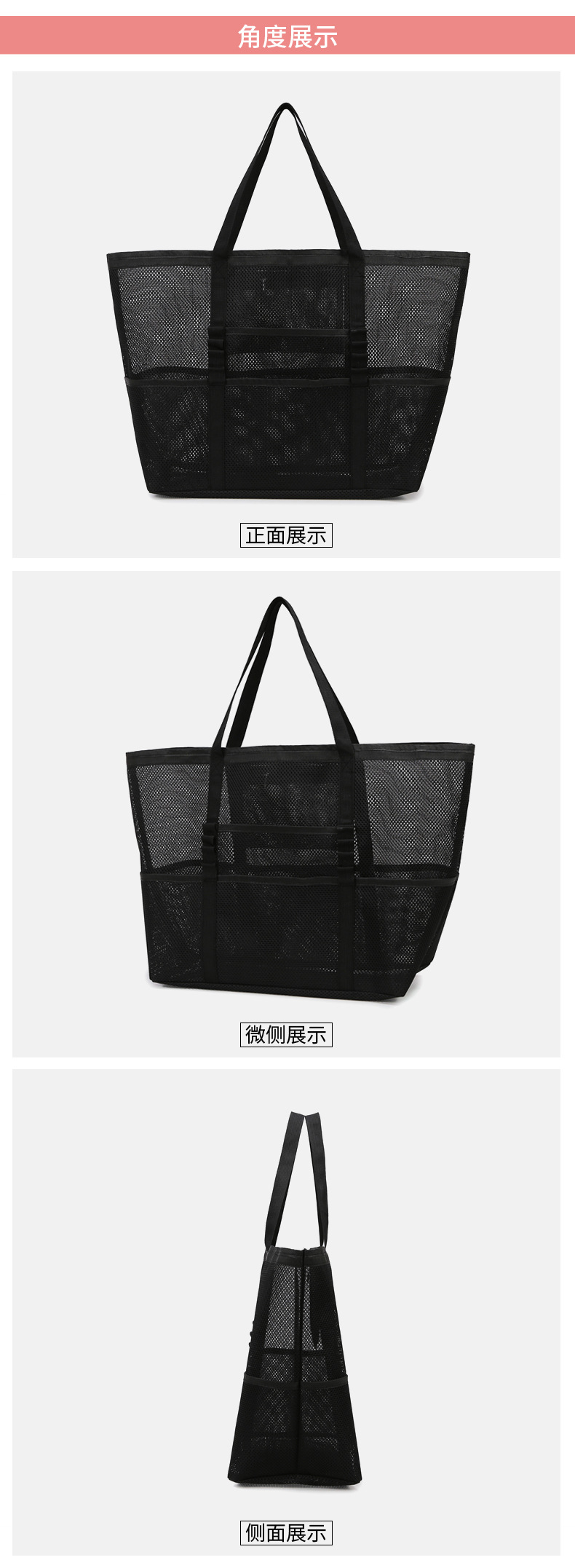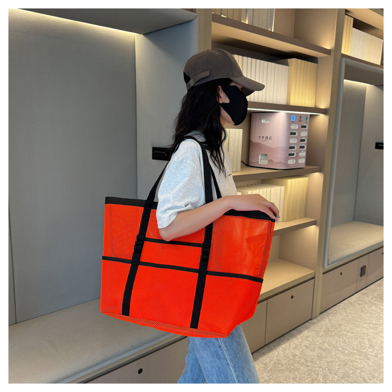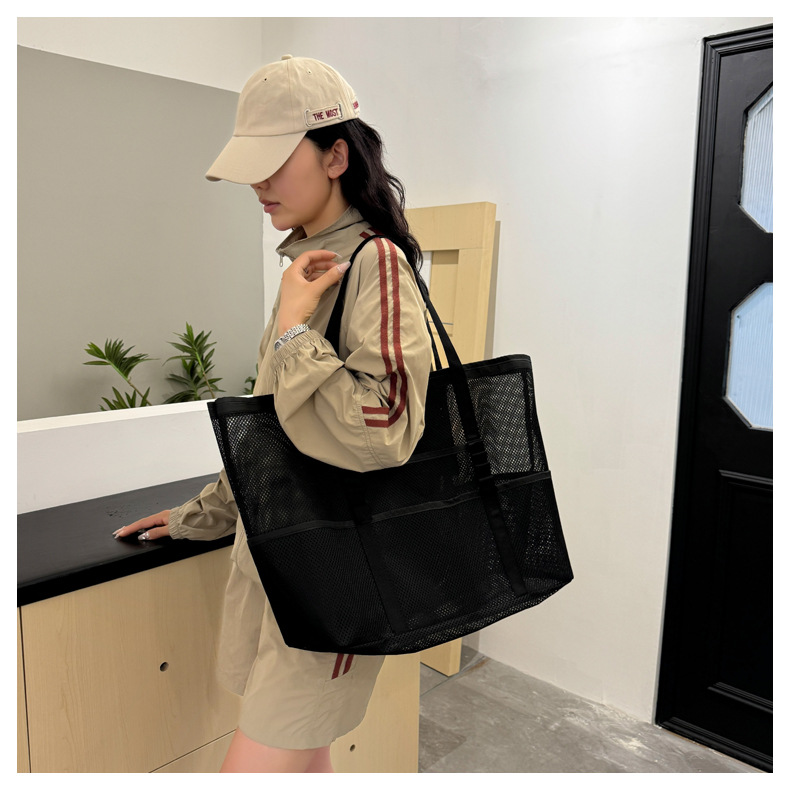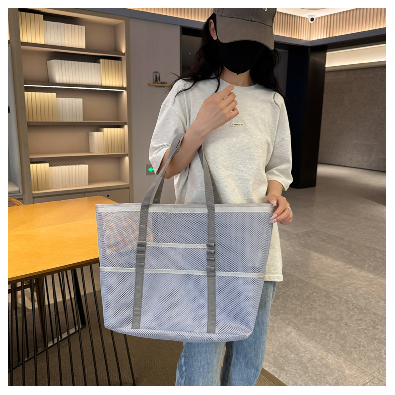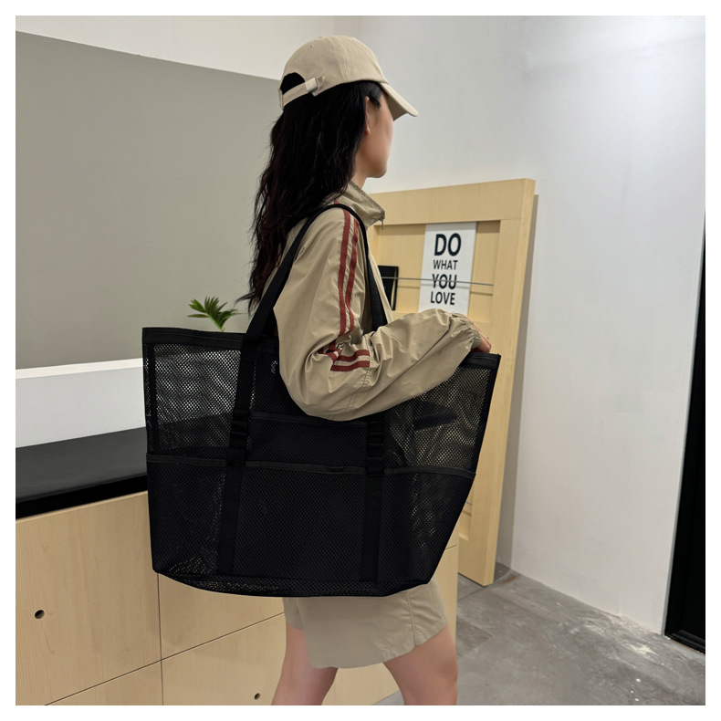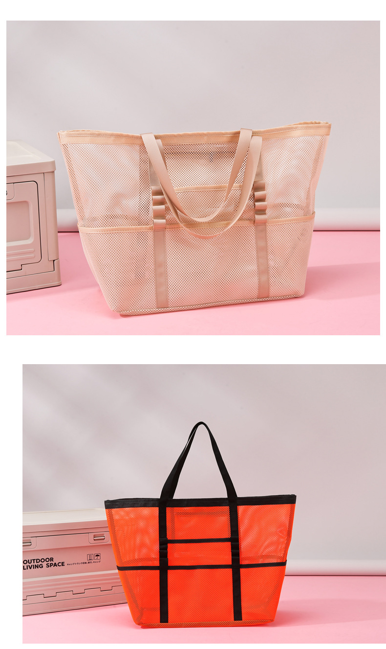 아마존 새로운 헤어 비치 가방 해변 휴대용 메쉬 가방 휴대용 메쉬 어깨 대용량 야외 여행 가방