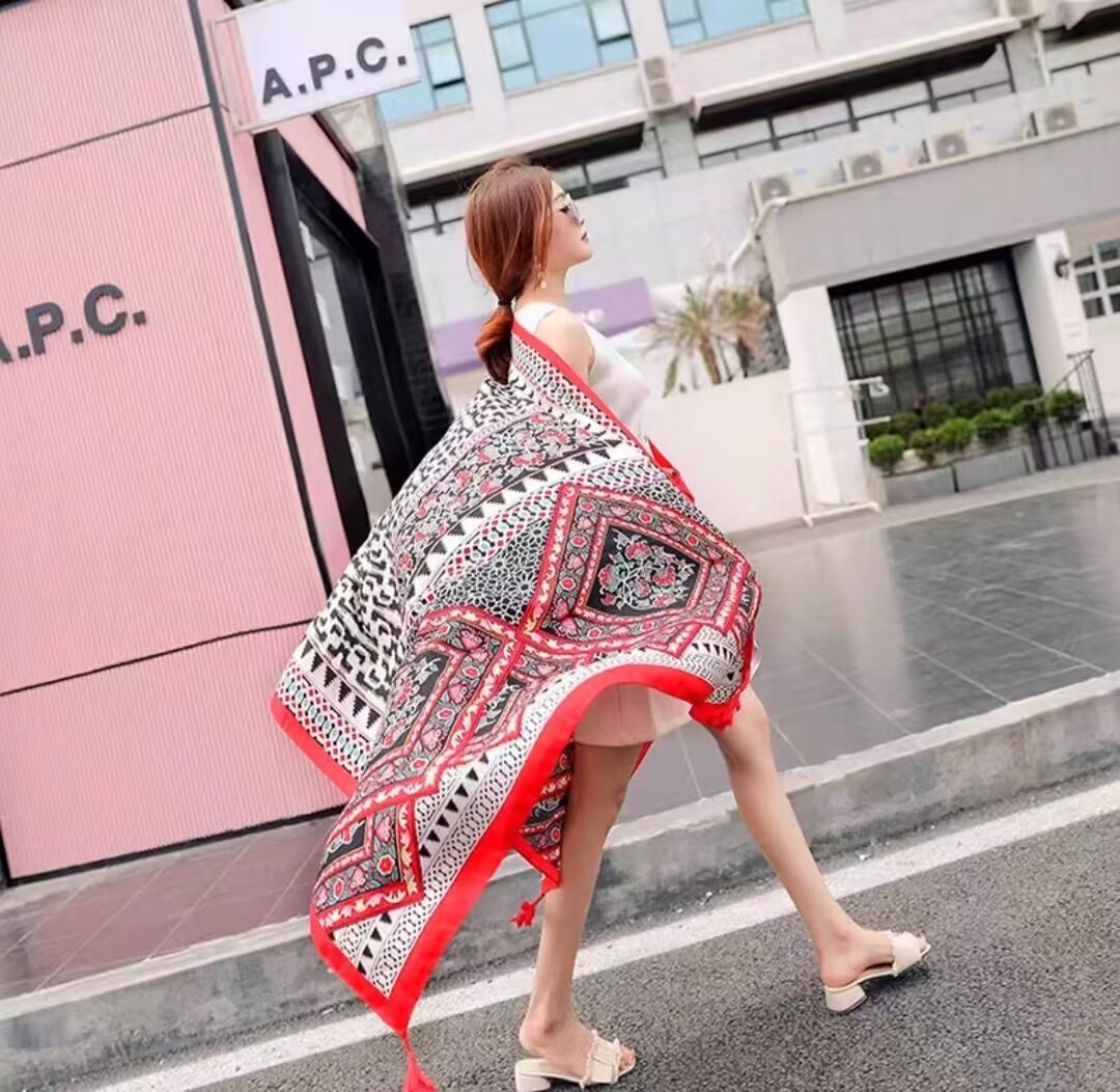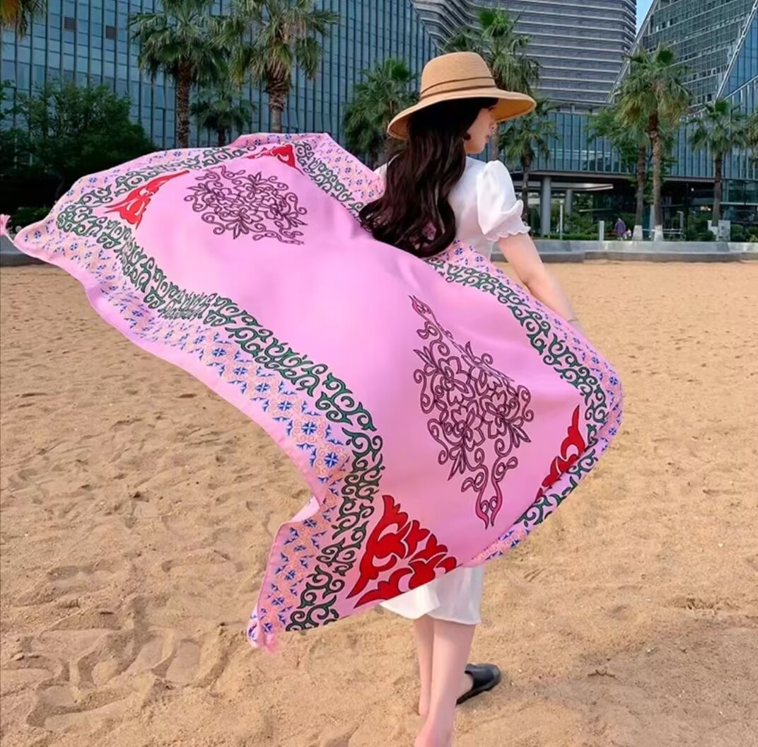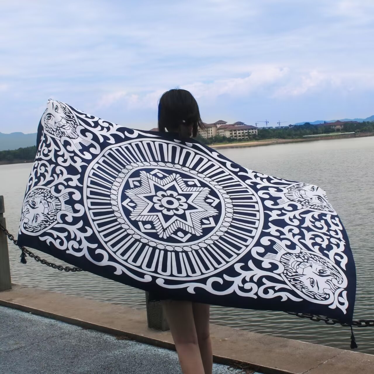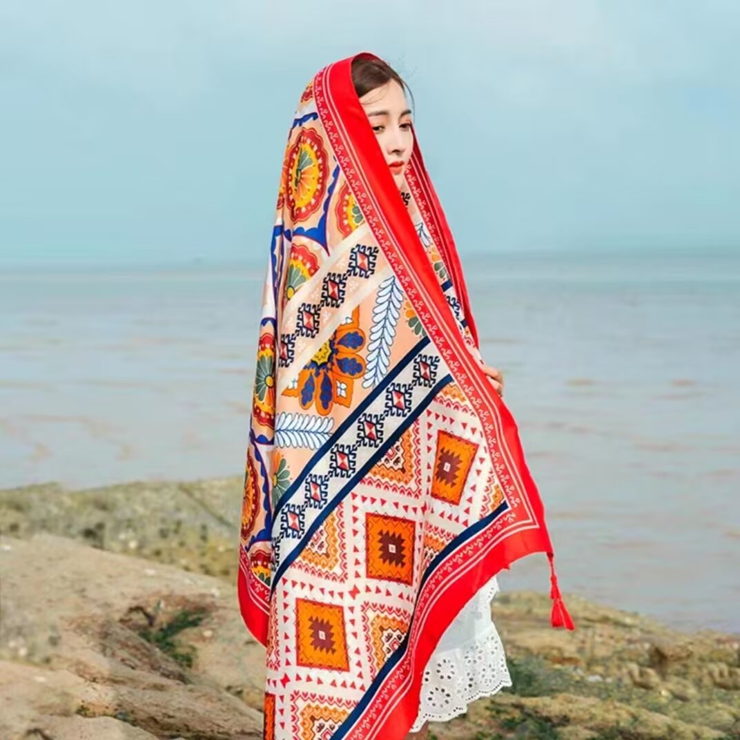 민족 스타일 스카프 운남 여행 사진 티베트 신장 여행 체크인 목도리 이중 목적 해변 해변 수건 신제품