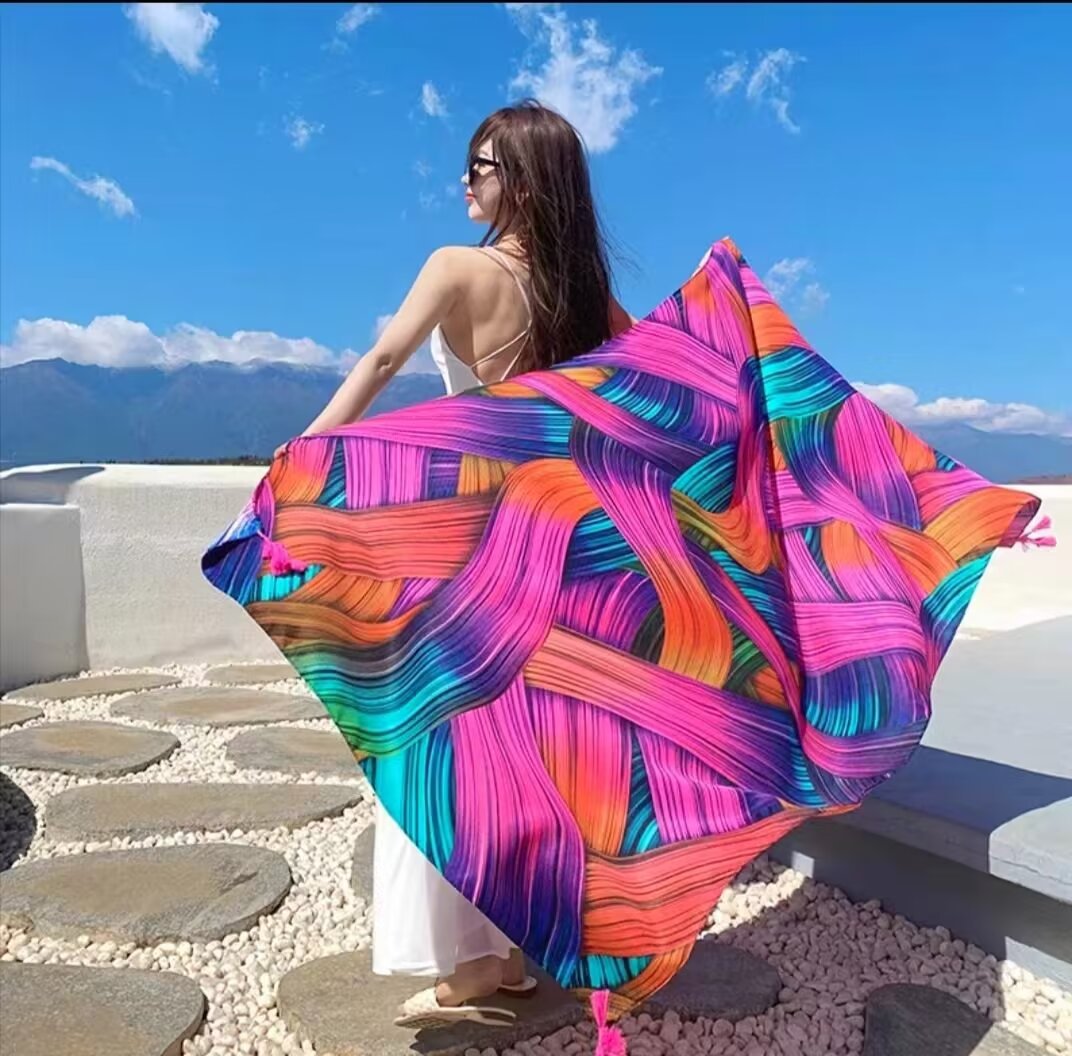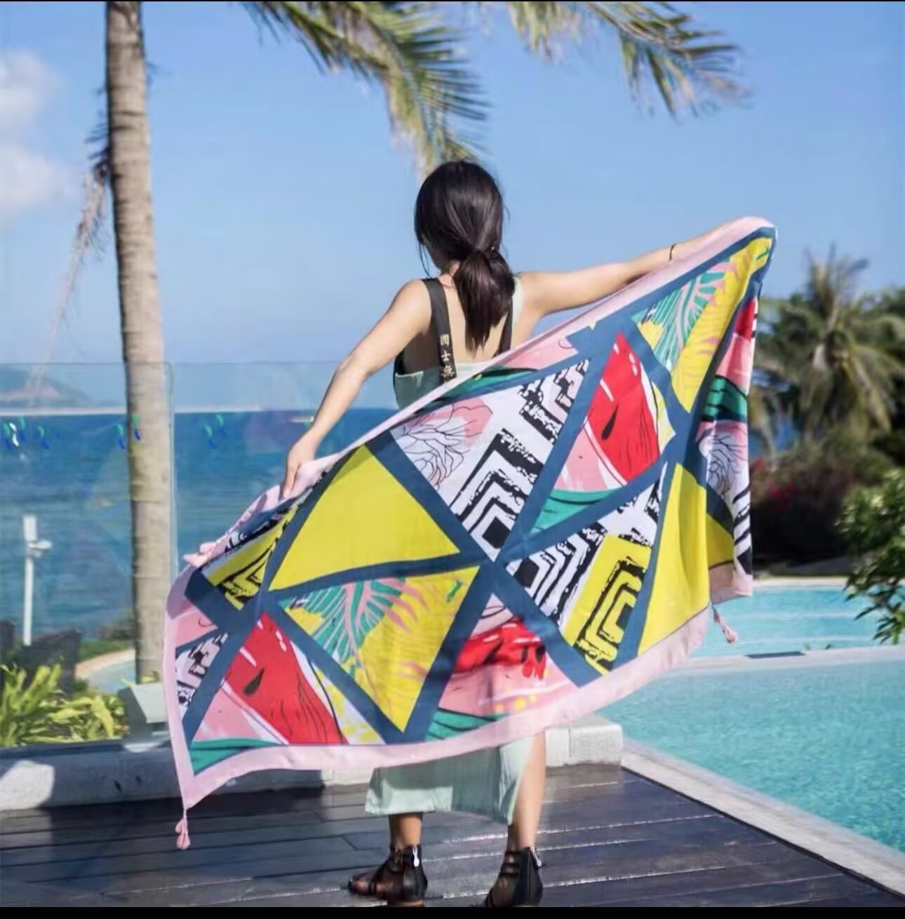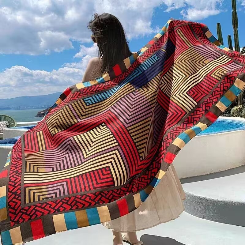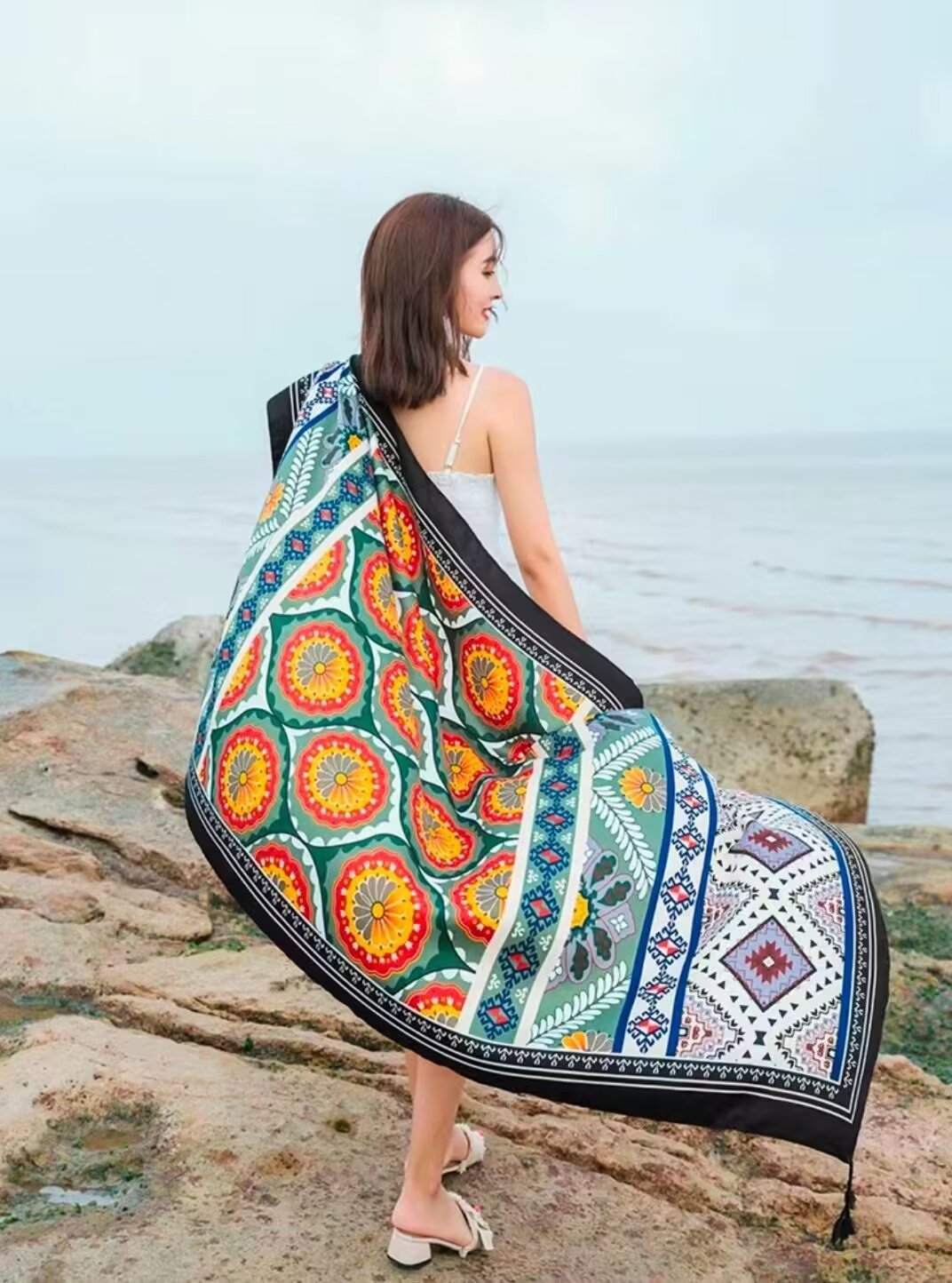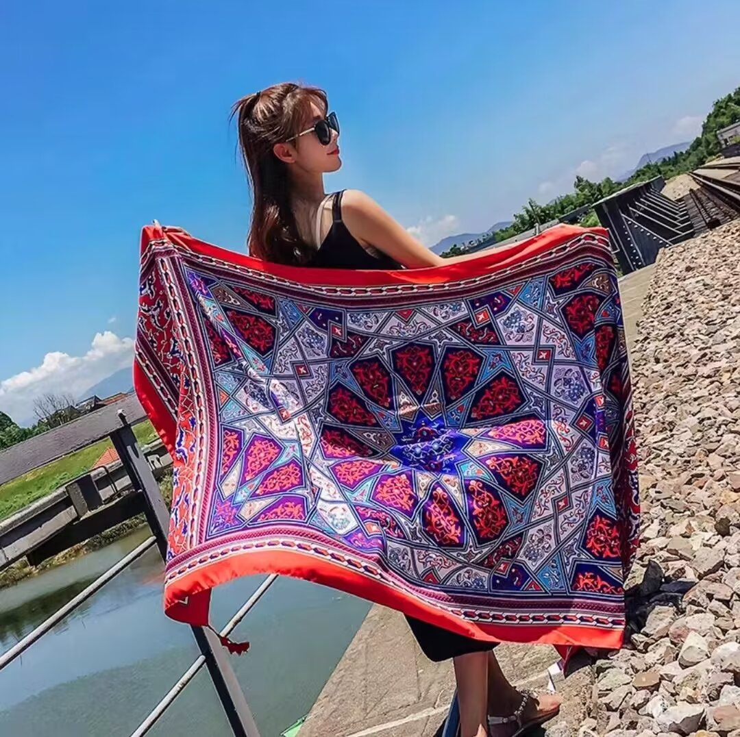 민족 스타일 스카프 운남 여행 사진 티베트 신장 여행 체크인 목도리 이중 목적 해변 해변 수건 신제품