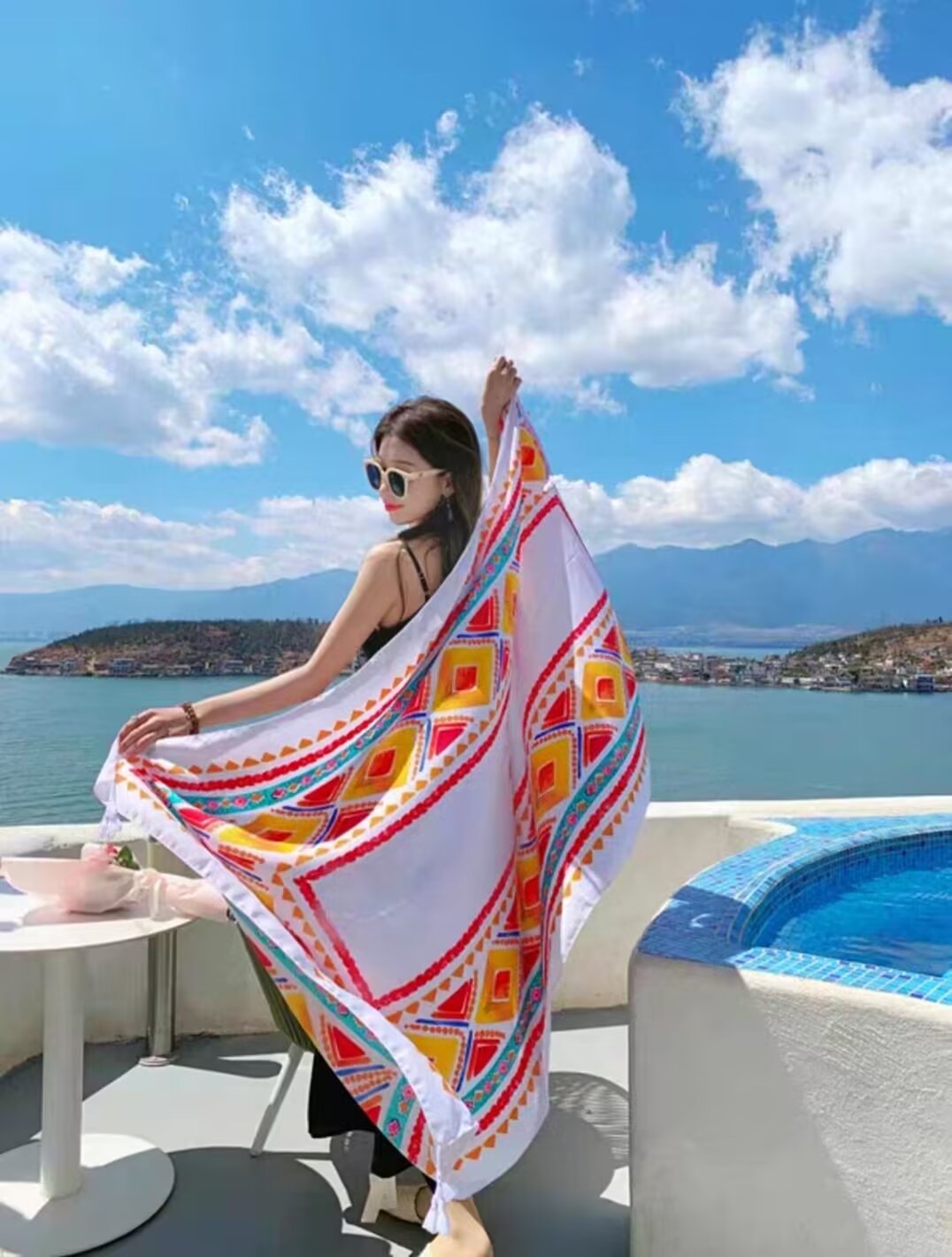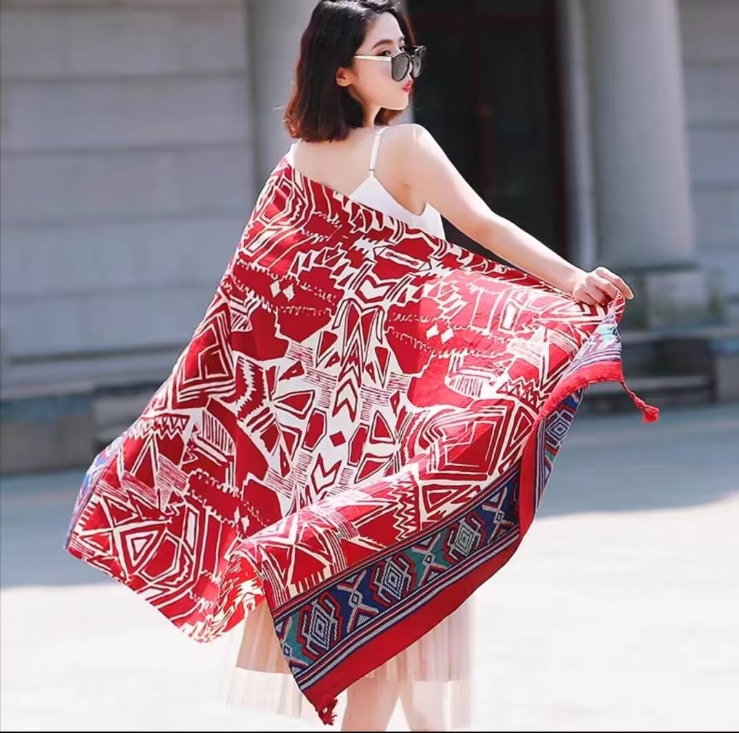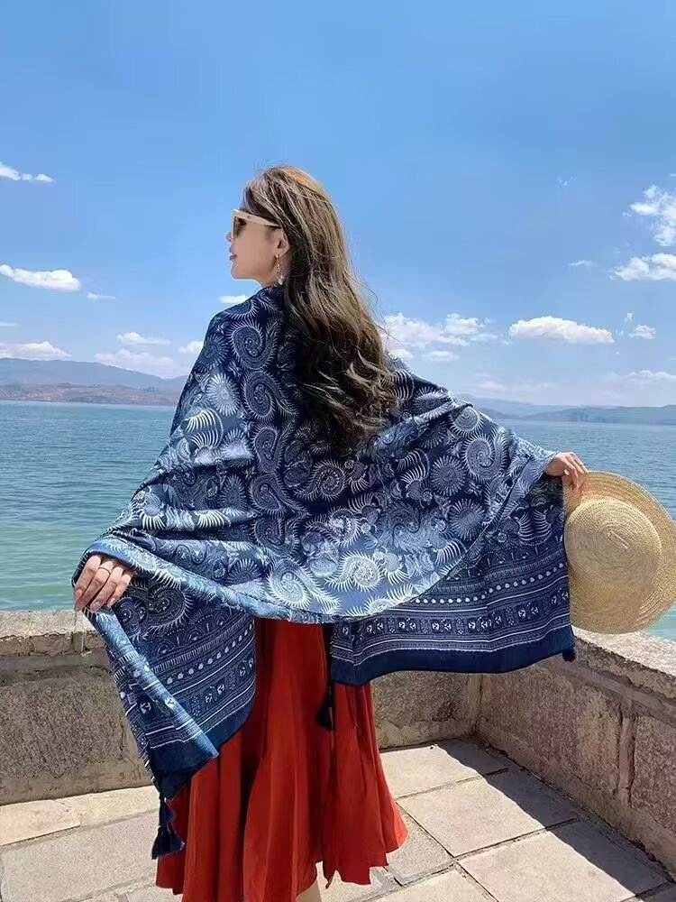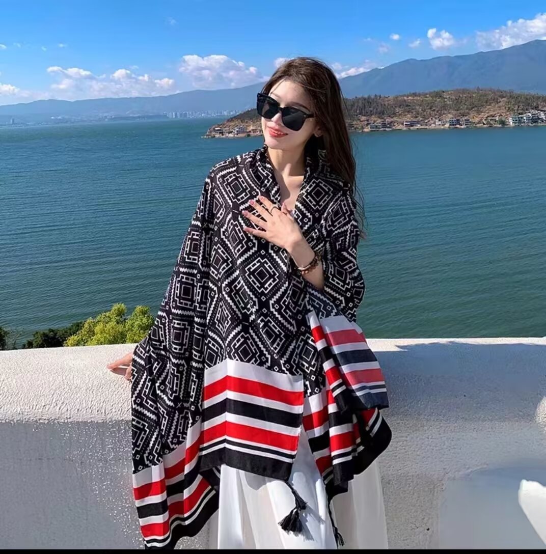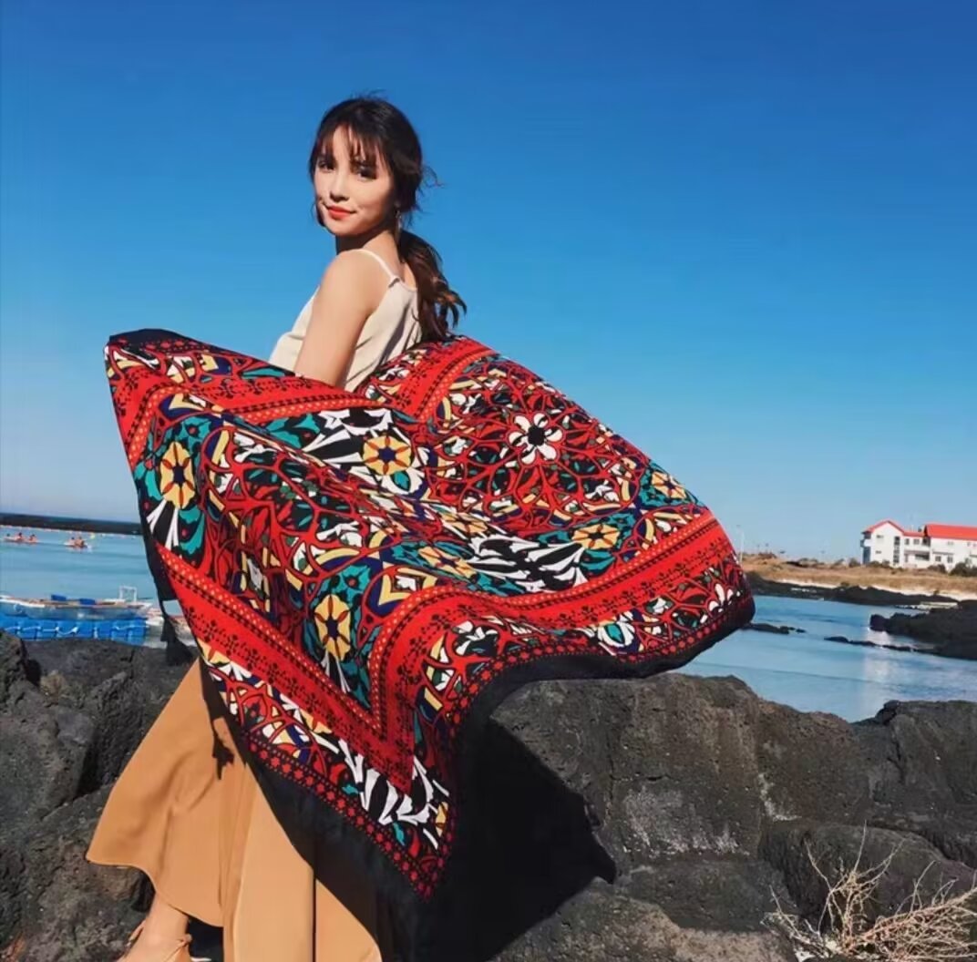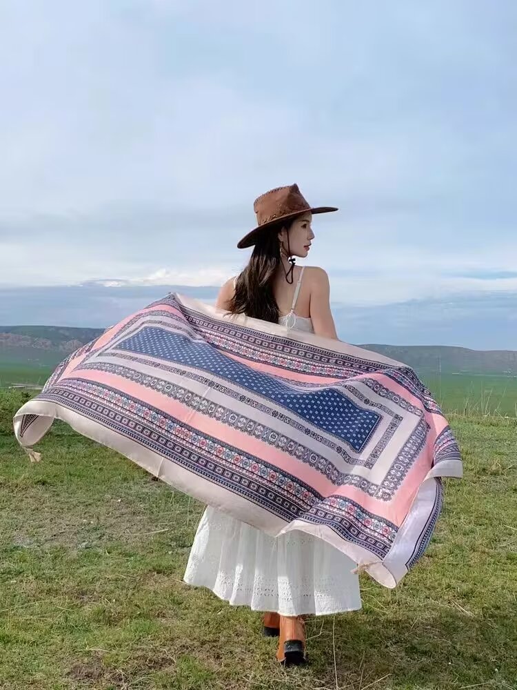 민족 스타일 스카프 운남 여행 사진 티베트 신장 여행 체크인 목도리 이중 목적 해변 해변 수건 신제품스토어 가기