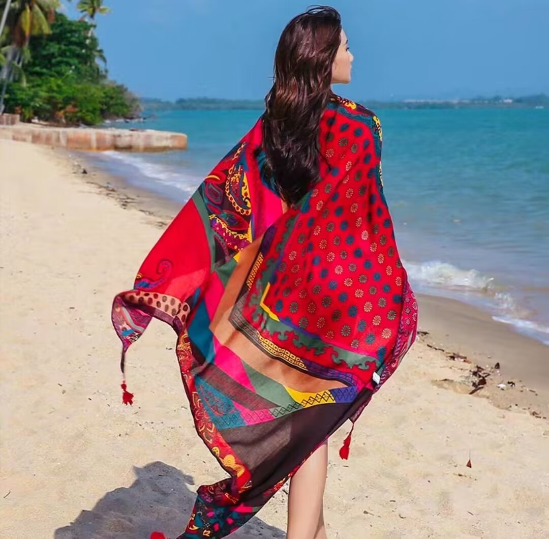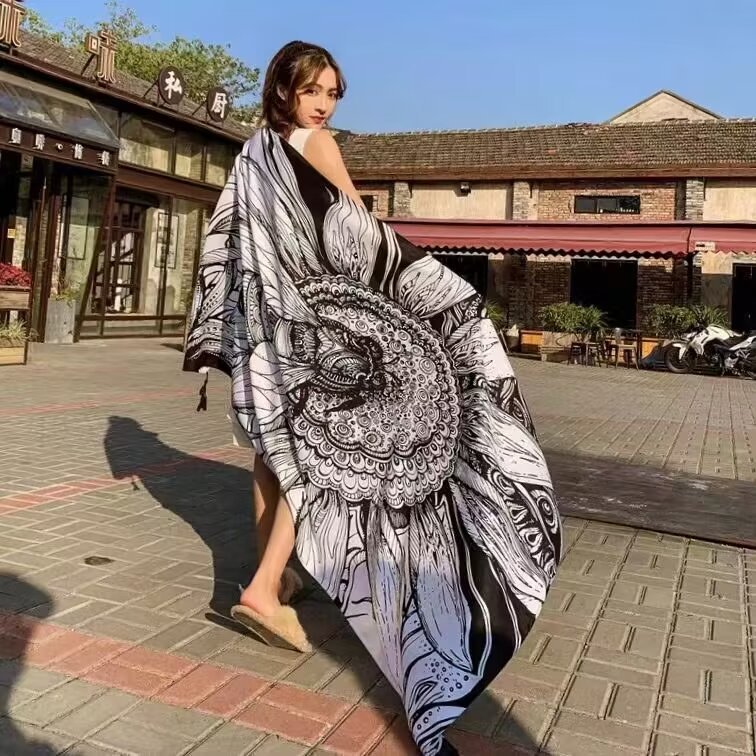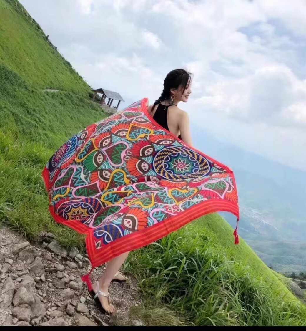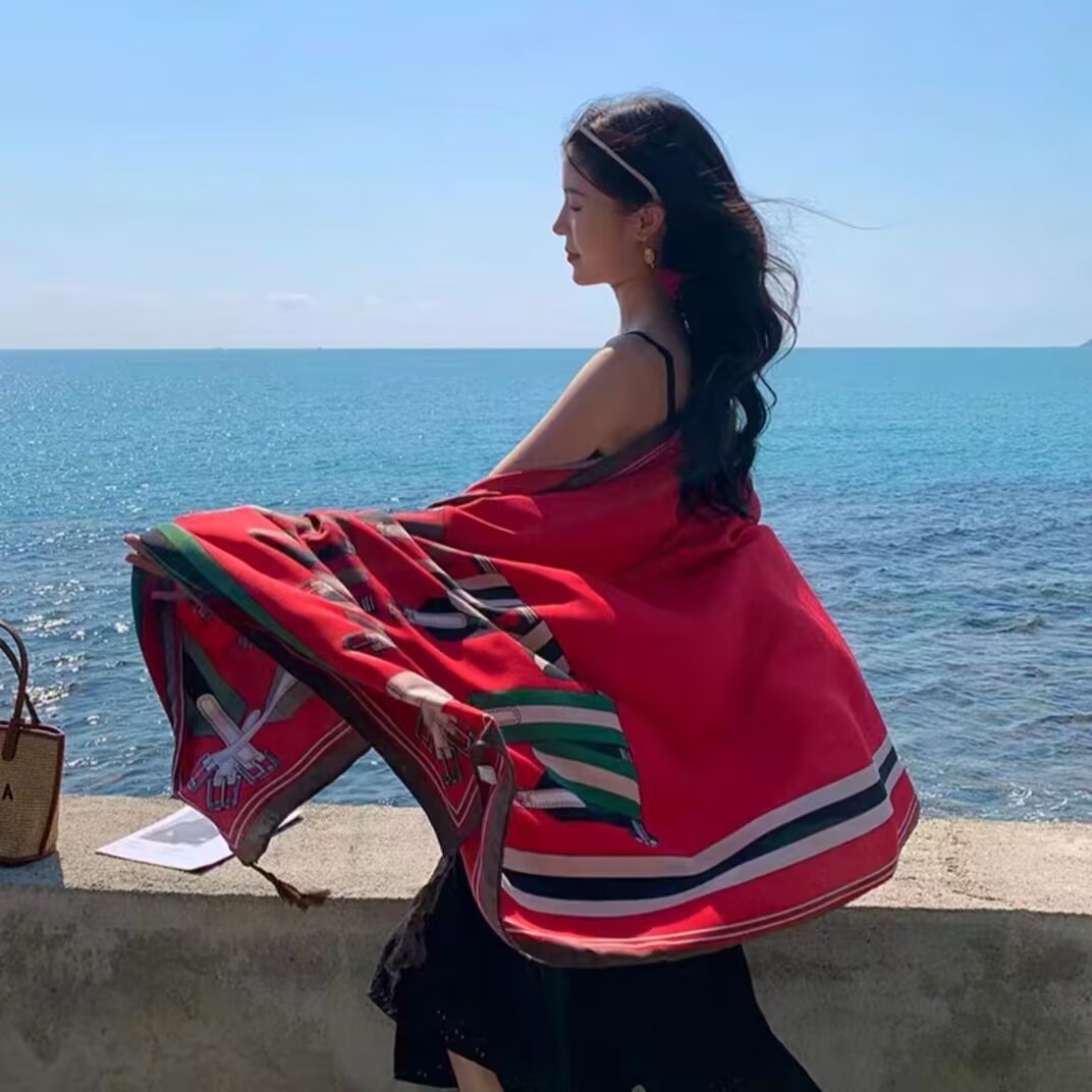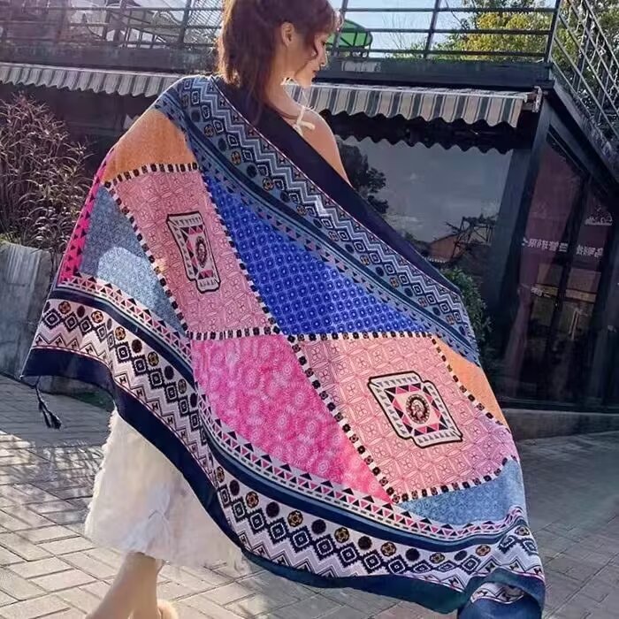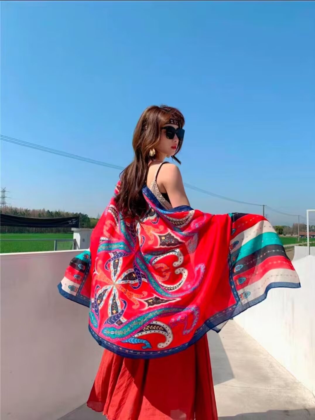 민족 스타일 스카프 운남 여행 사진 티베트 신장 여행 체크인 목도리 이중 목적 해변 해변 수건 신제품스토어 가기