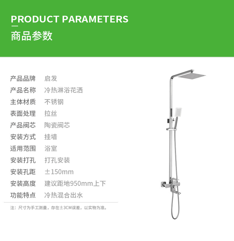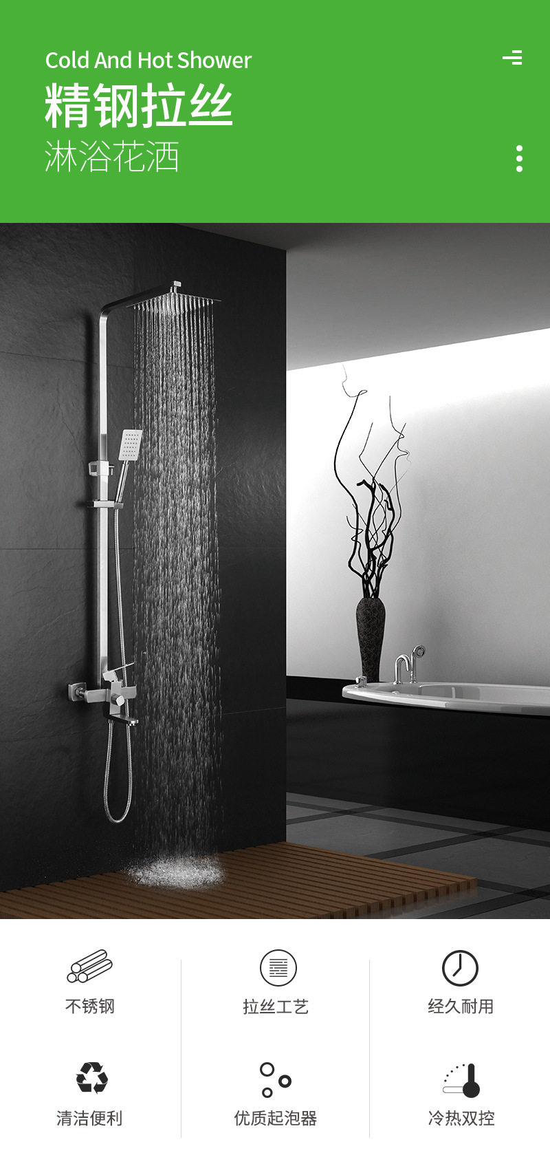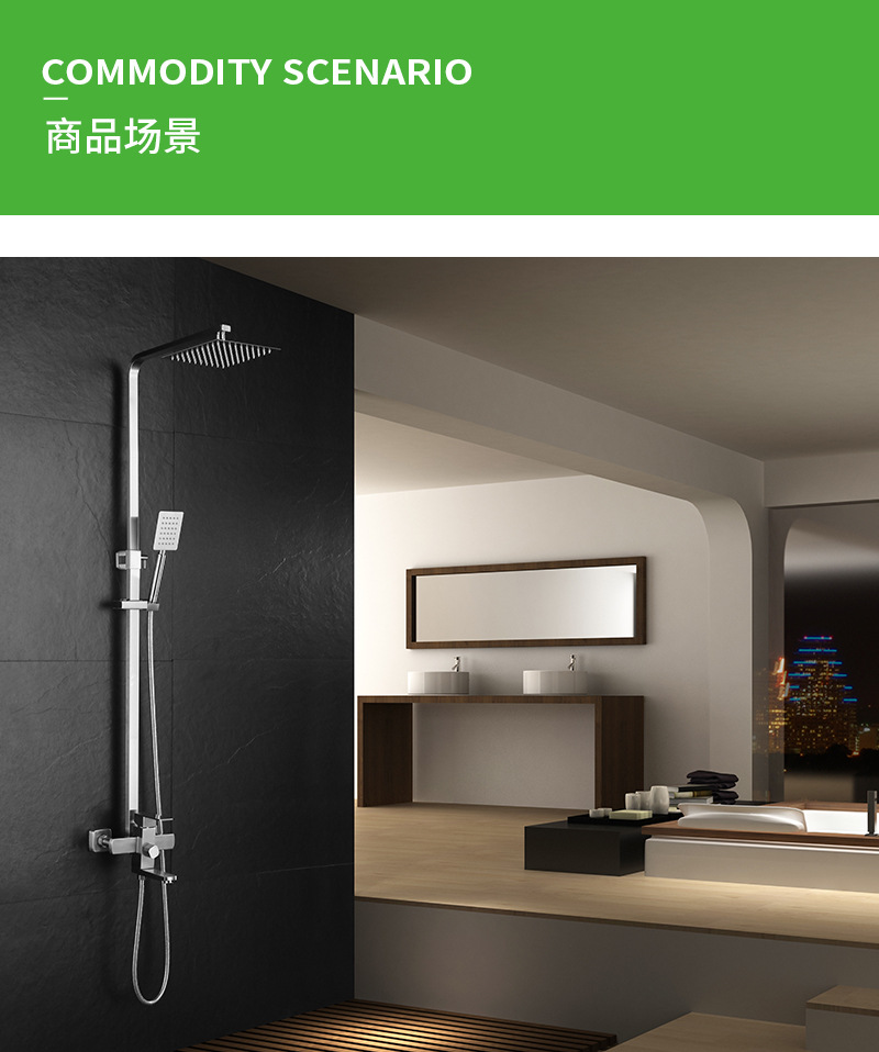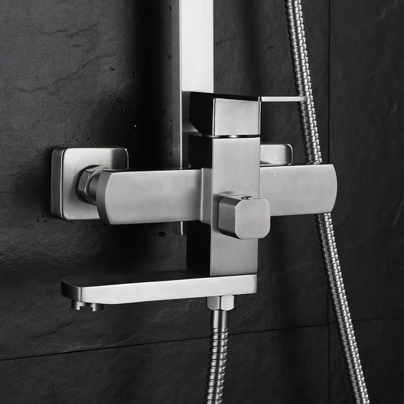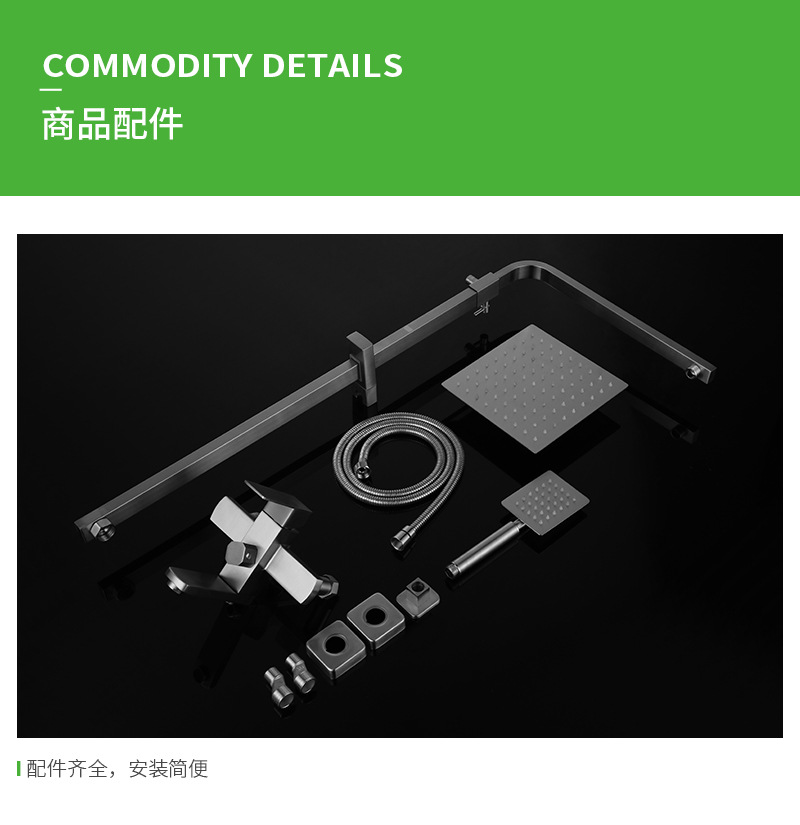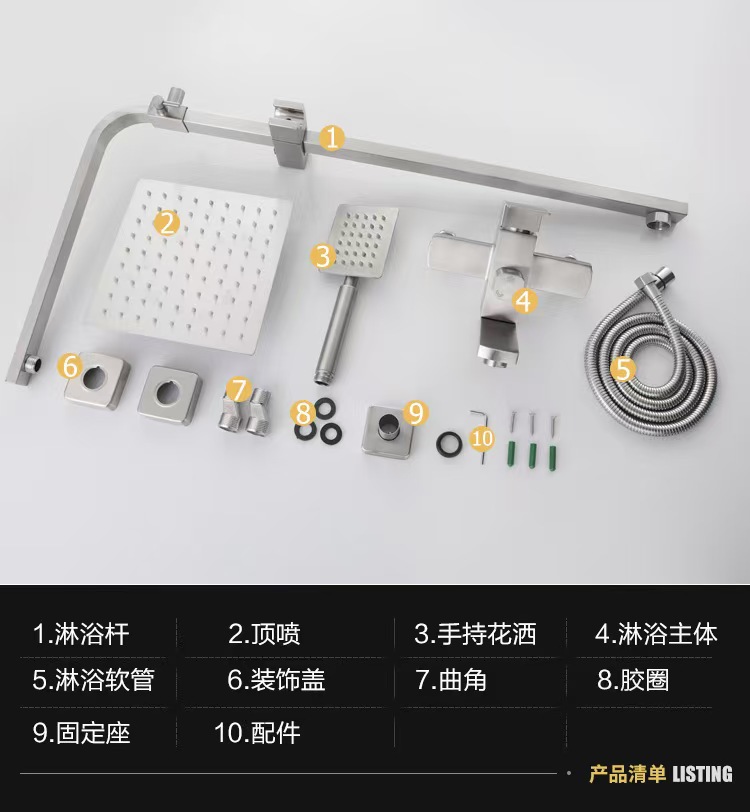 Kaiping 뜨거운 판매 304 스테인레스 스틸 사각형 샤워 헤드 뜨거운 및 냉수 휴대용 리프팅 탑 스프레이 샤워 세트스토어 가기