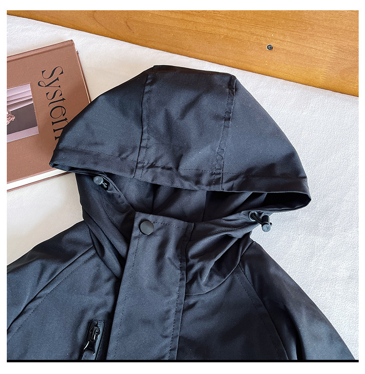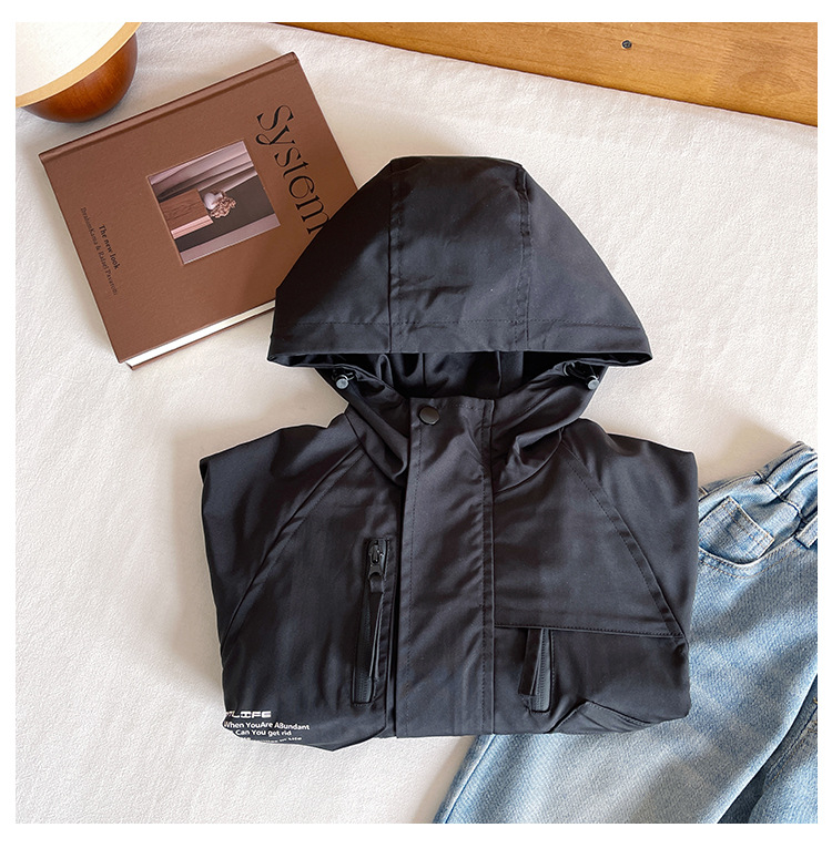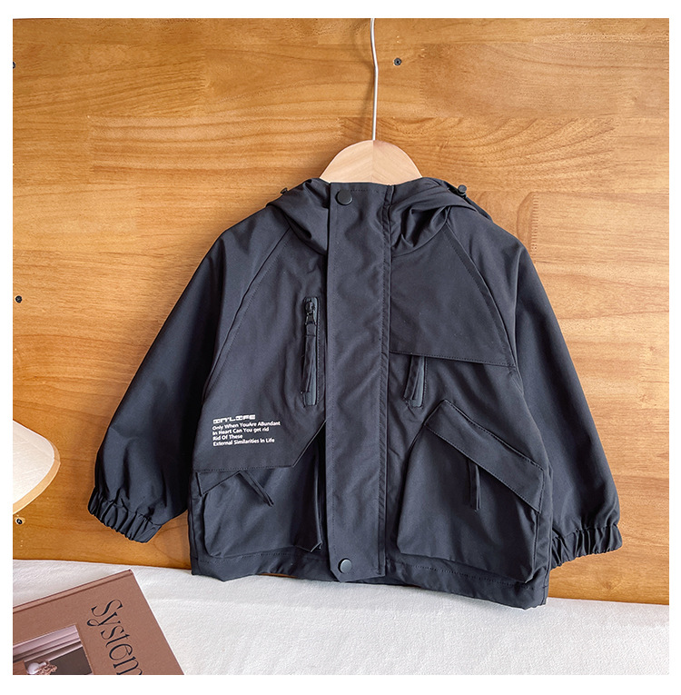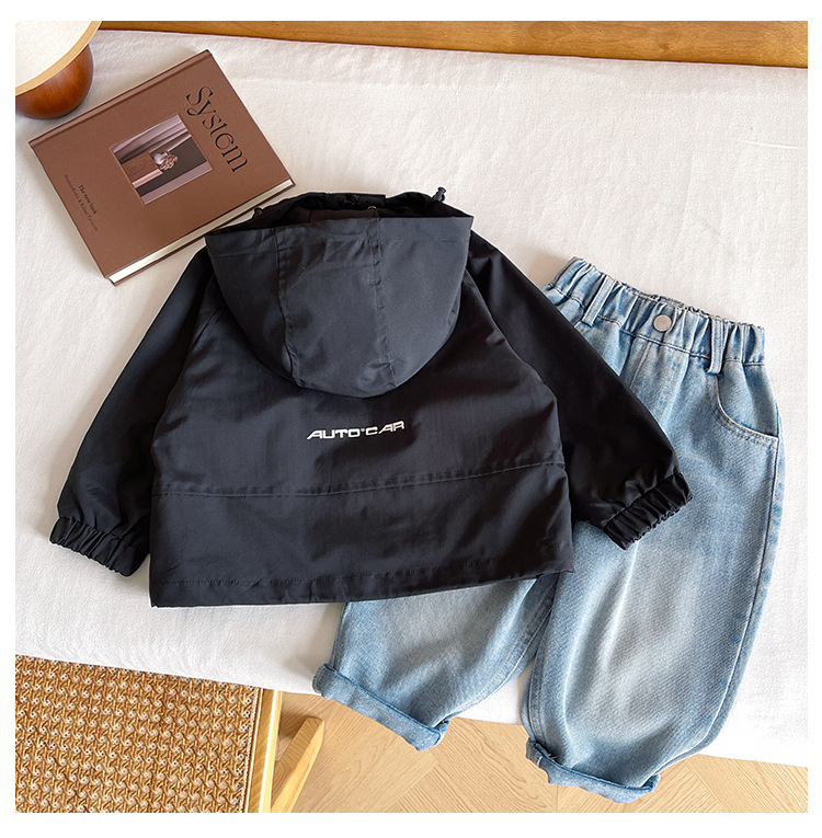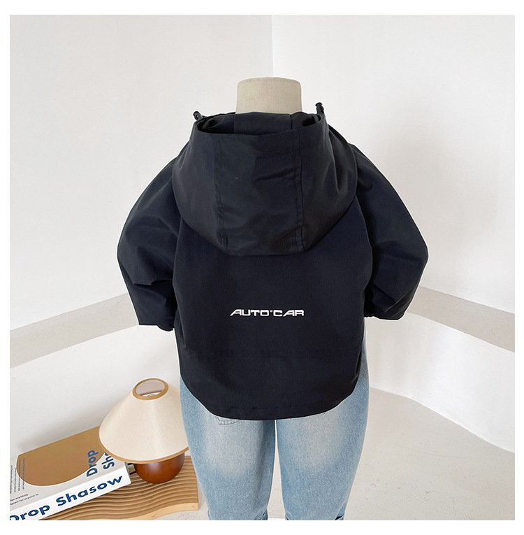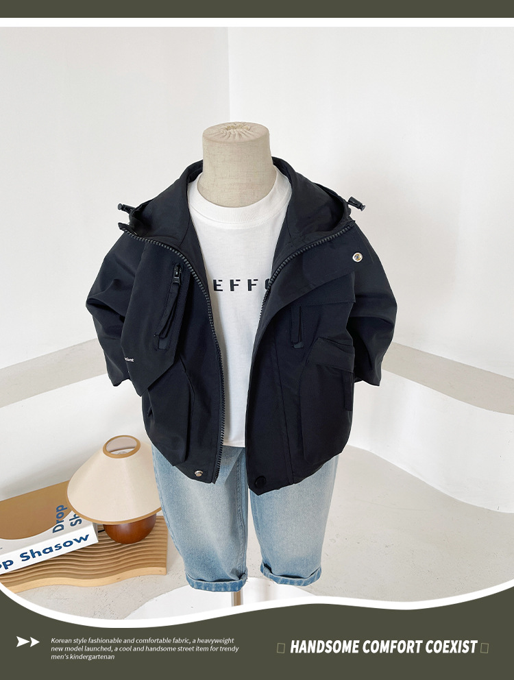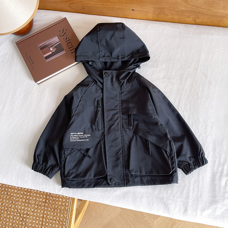 바람의 계곡 2024 가을 새 아동복 어린이 편지 포켓 루소 유행하는 핸섬 후드 자켓 소년 소녀