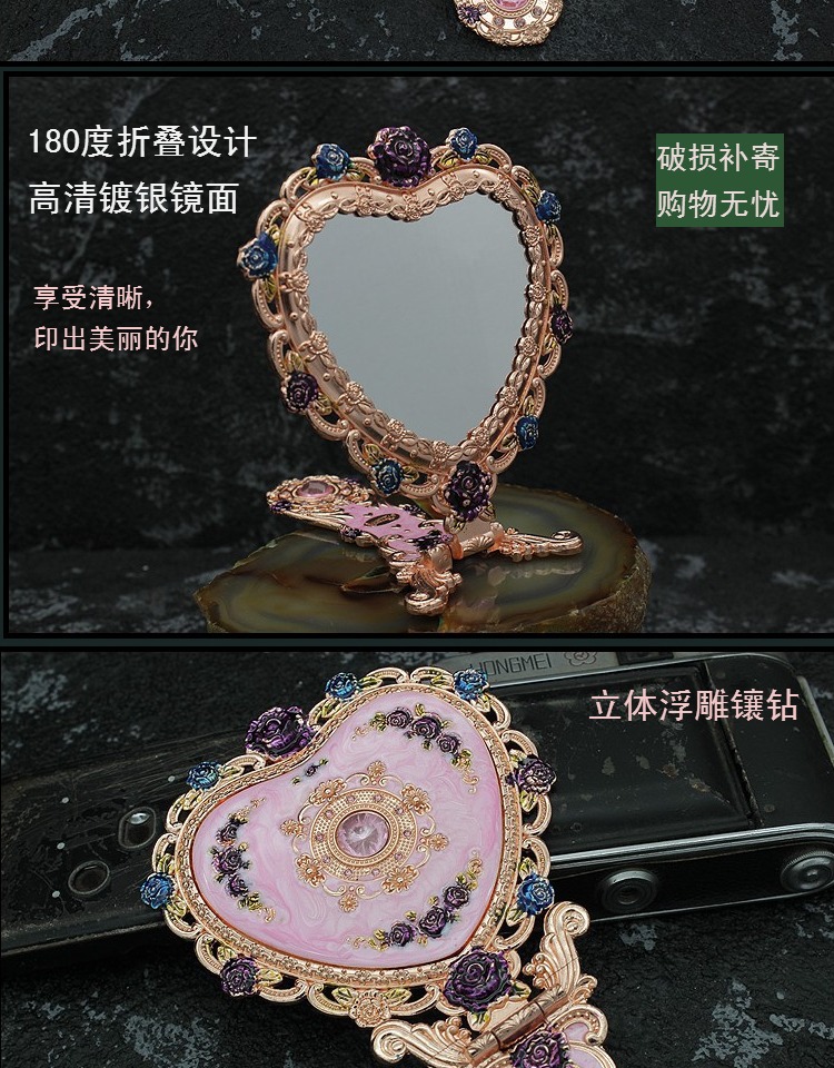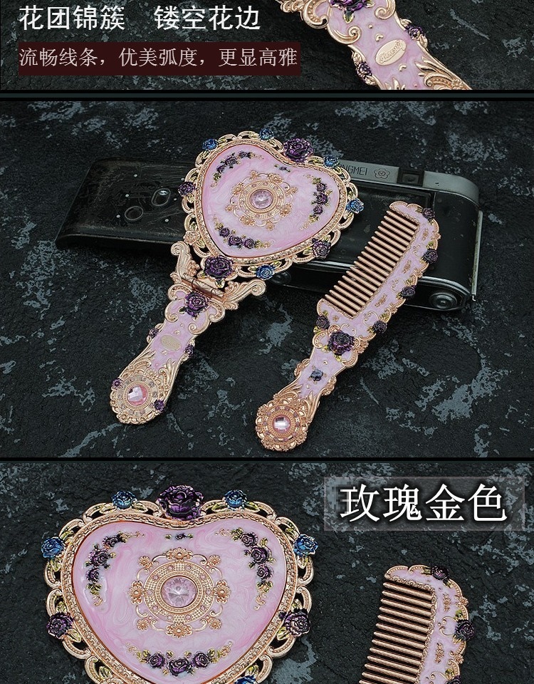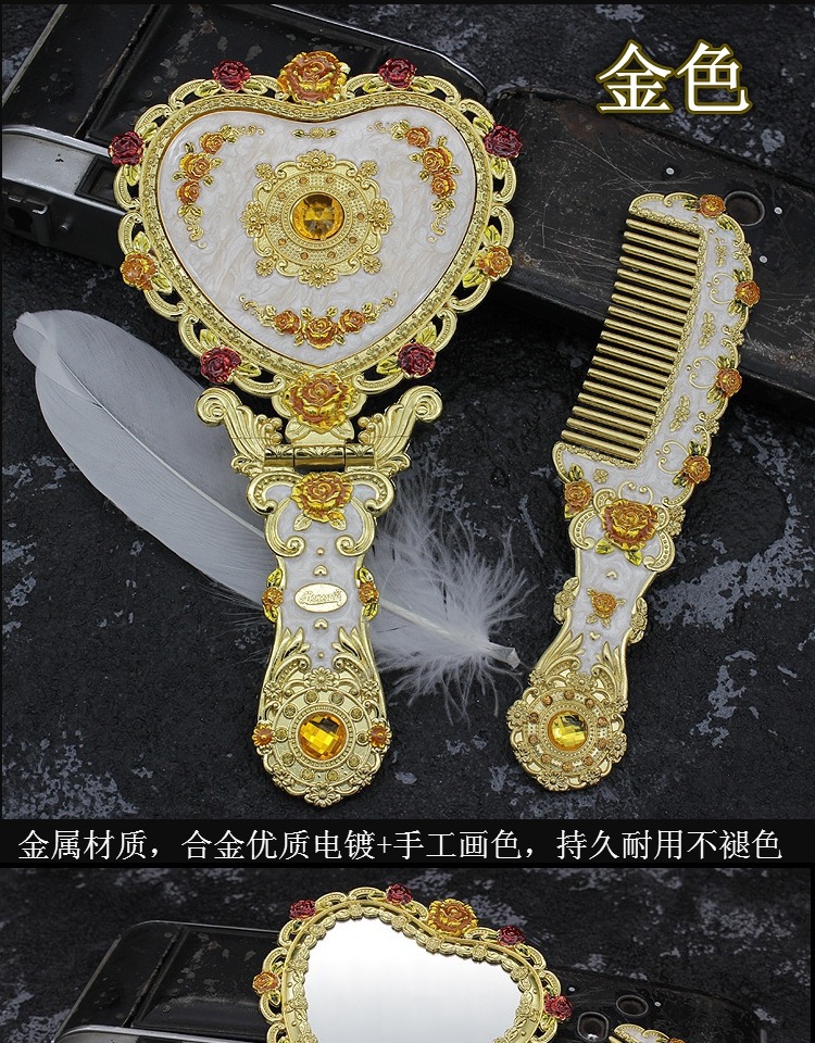 유럽식 성 드레싱 거울 창조적 인 선물 선물 뷰티 미러 클래식 캐리 온 메이크업 미러 빗 신제품스토어 가기