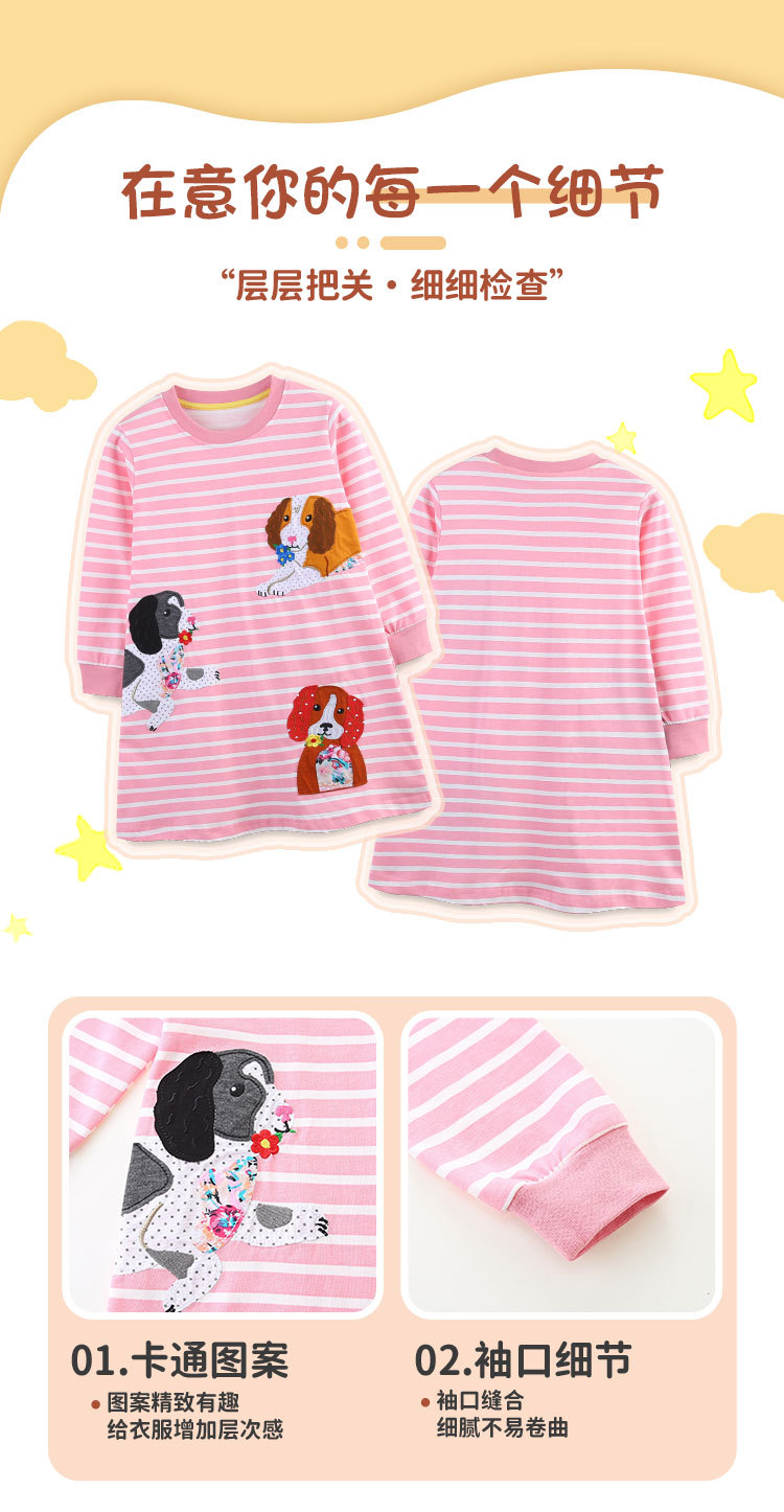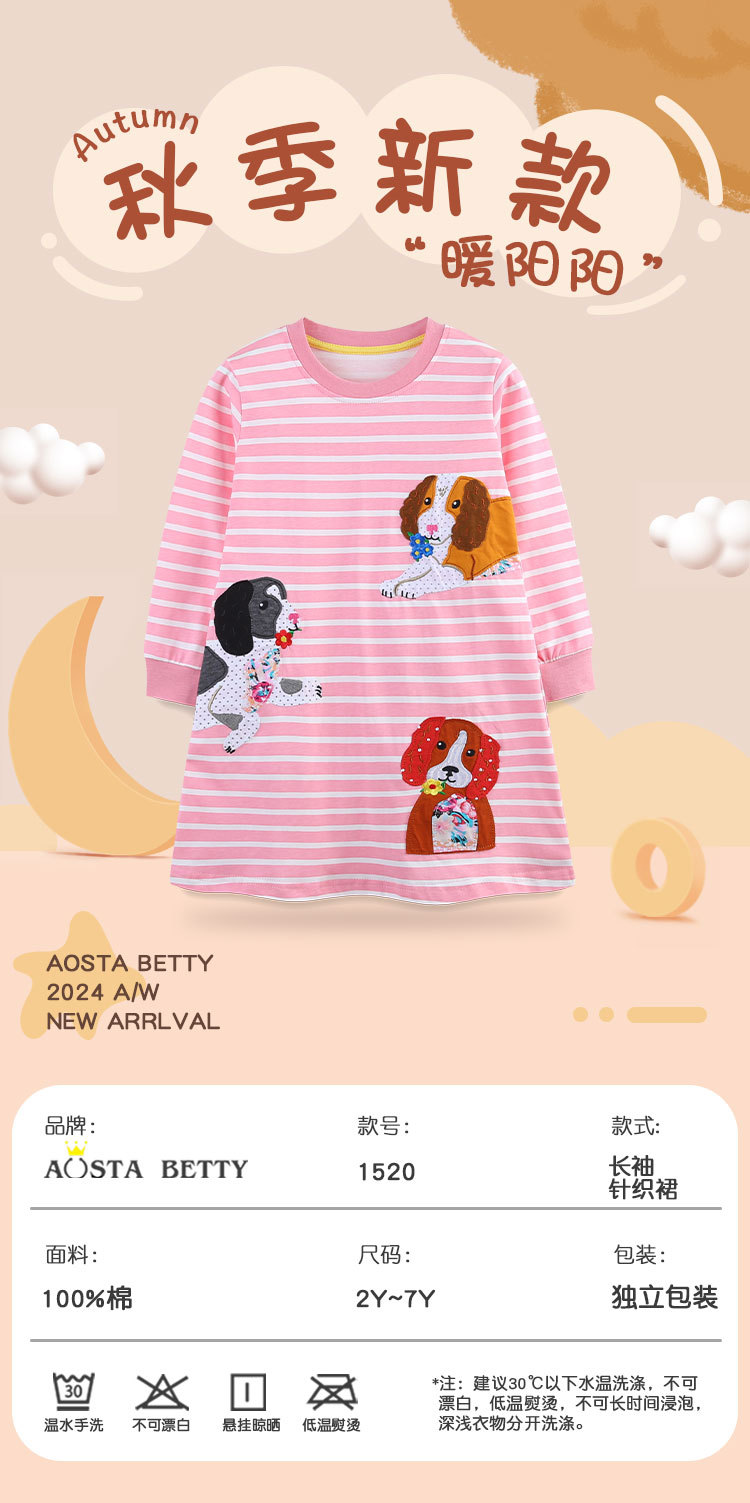 AostaBetty24 가을 소녀 원피스 캐주얼 만화 개 자수 스커트 유럽과 미국 스타일 스트라이프 스커트
