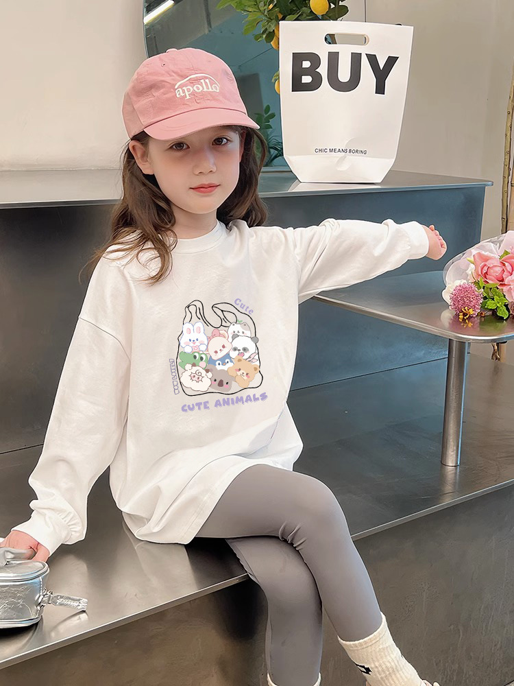 【纯棉】2024新款女童洋气t恤儿童中大童长袖打底衫中长款春秋上스토어 가기