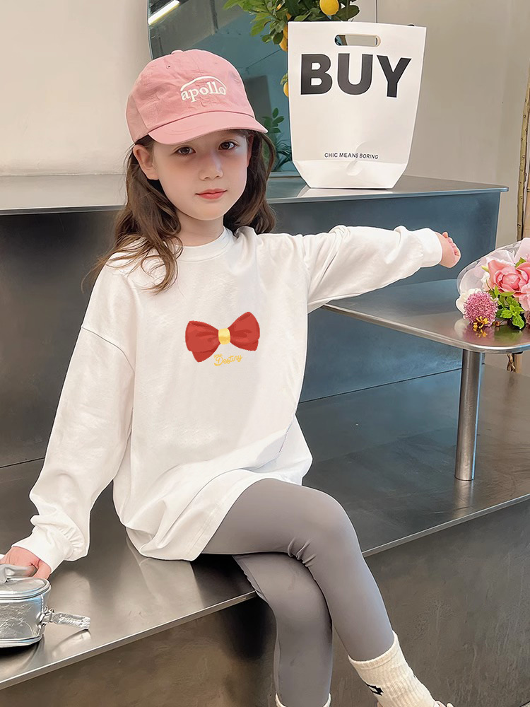 【纯棉】2024新款女童洋气t恤儿童中大童长袖打底衫中长款春秋上