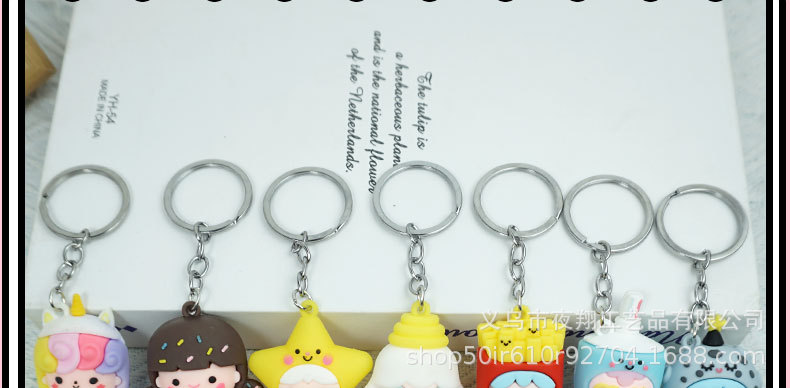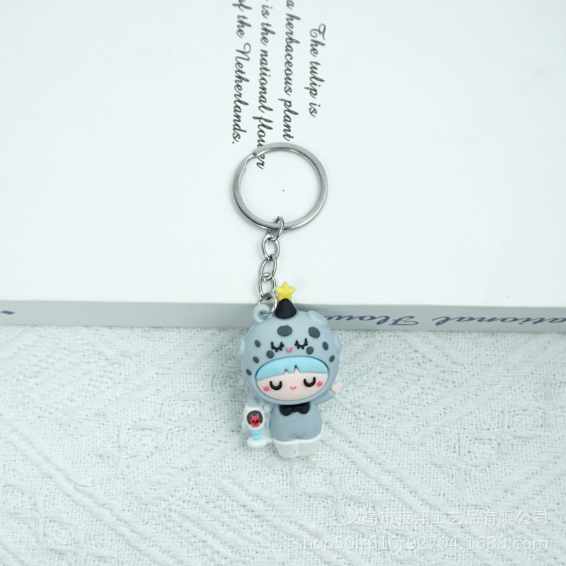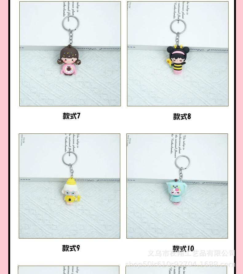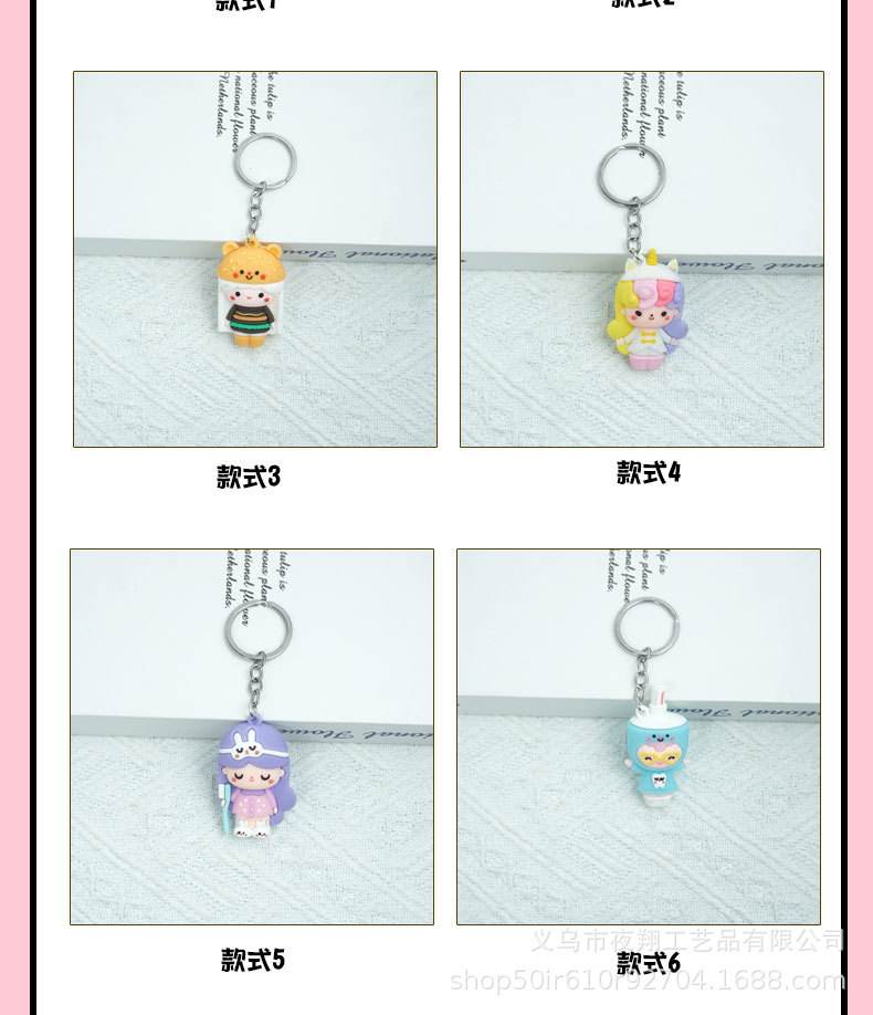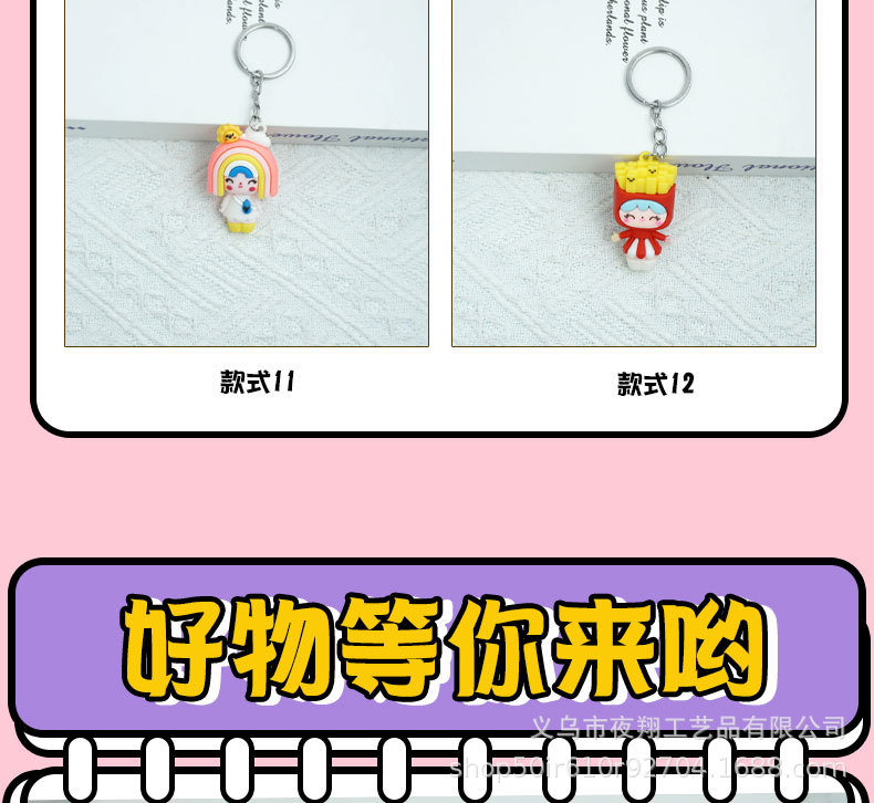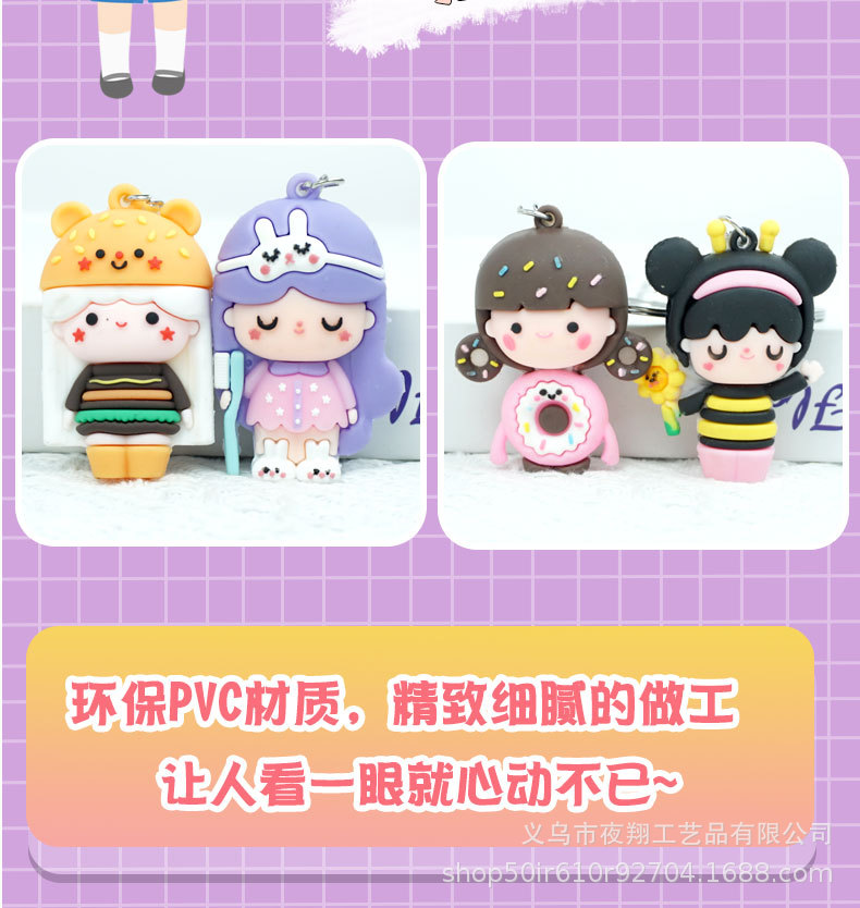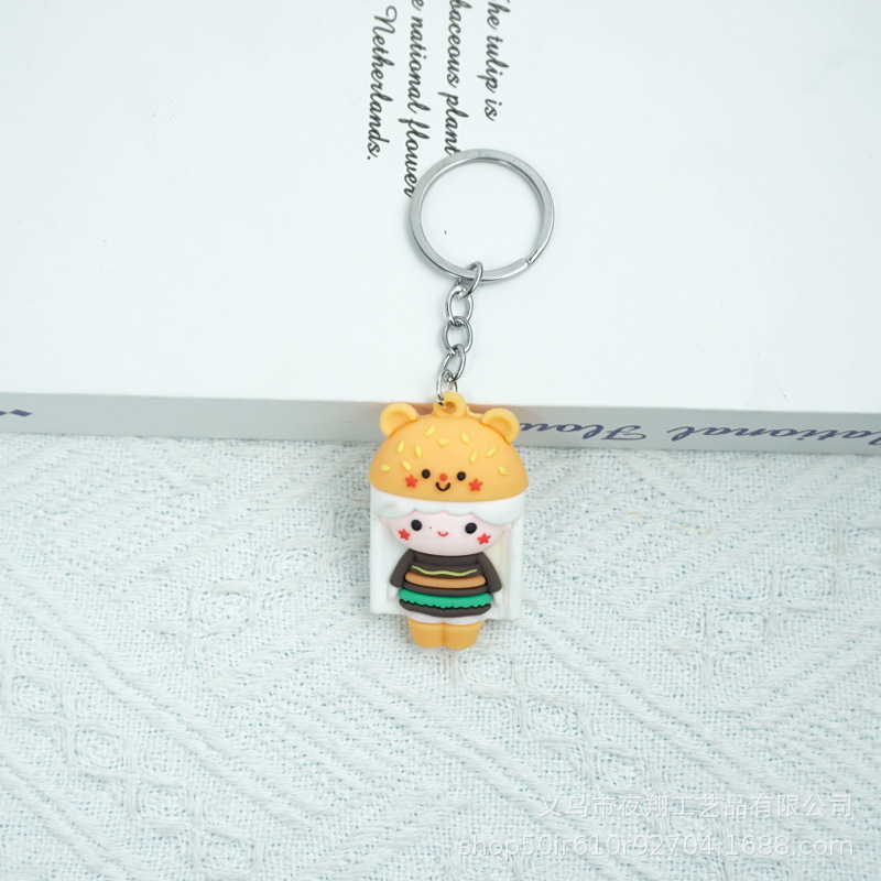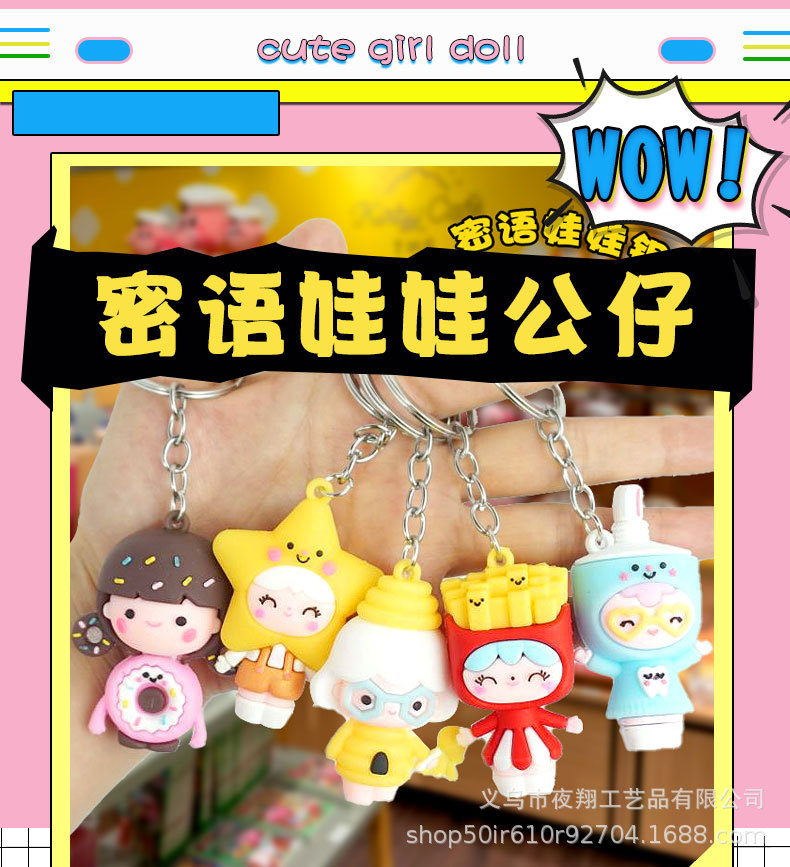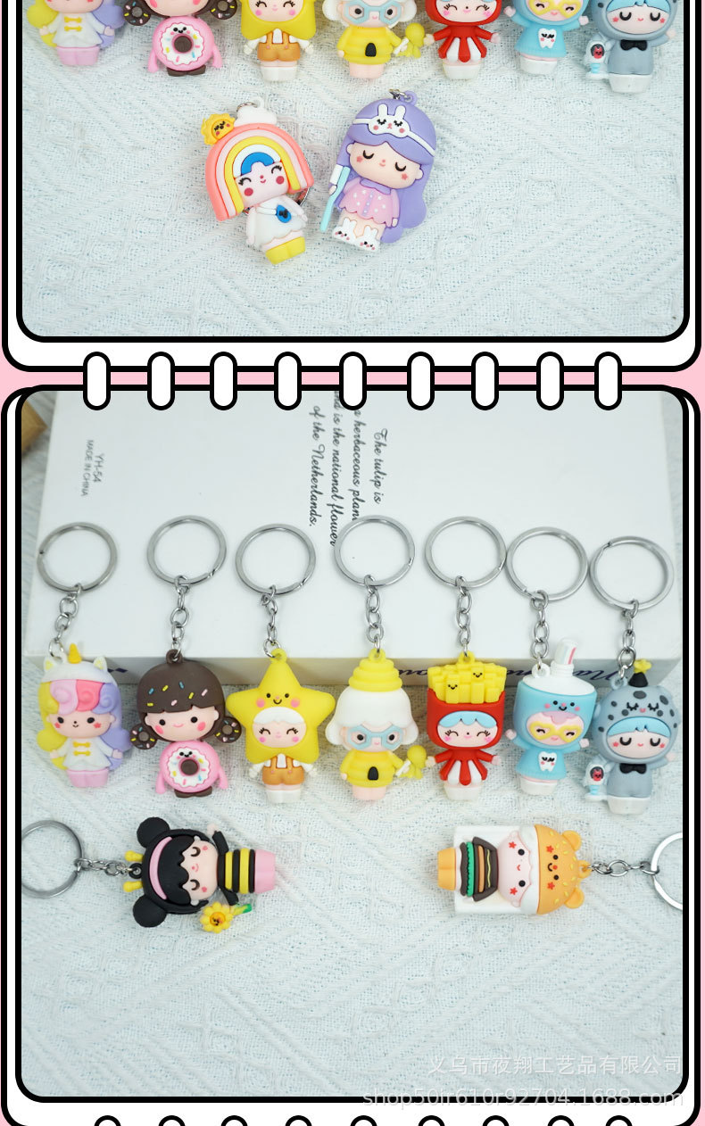 귀여운 비밀 언어 인형 키 체인 만화 인형 교수형 프렌치 프라이 인형 도넛 소녀 작은 펜던트 도매스토어 가기