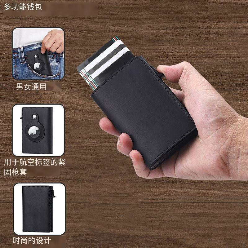 국경 간 뜨거운 판매 pu 지갑 DFID 알루미늄 케이스 도난 방지 지갑 자동 팝업 카드 케이스 AirTag 지갑스토어 가기