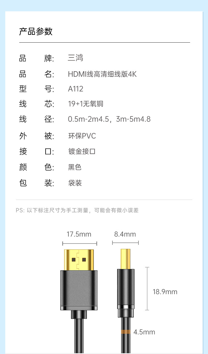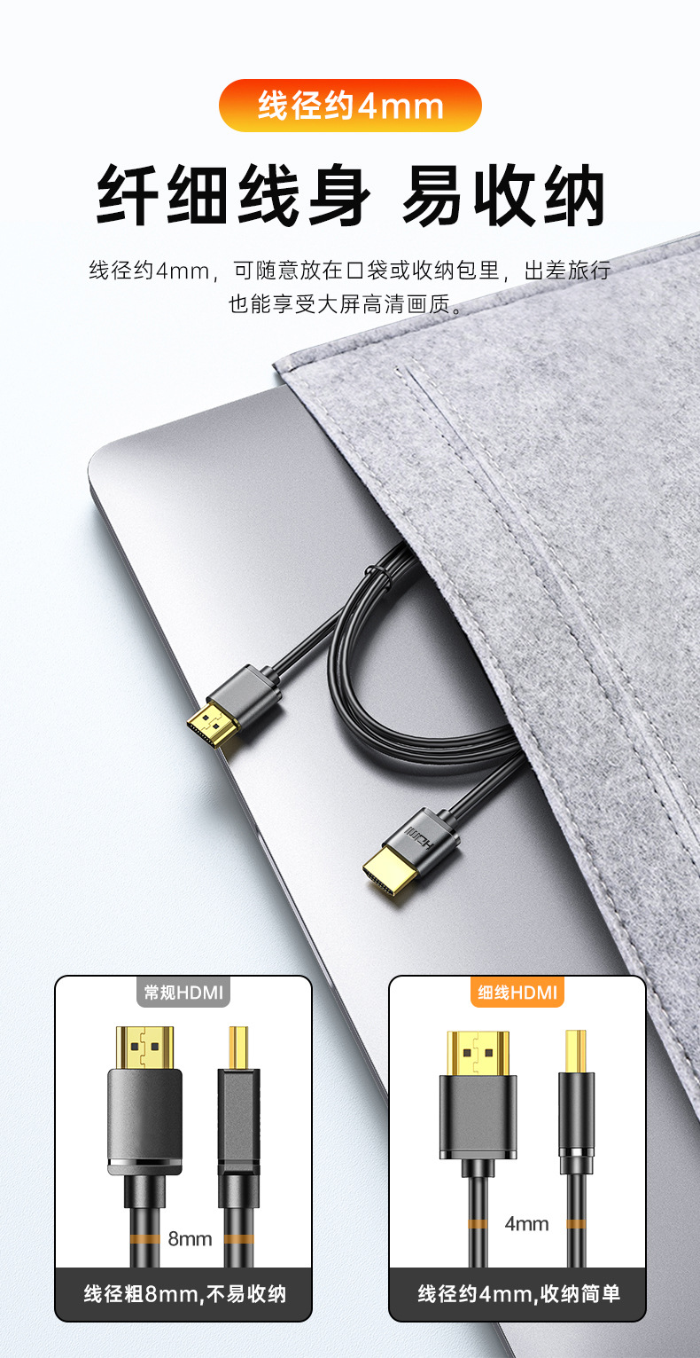 HDMI 얇은 유연한 케이블 2.0 얇은 유연한 케이블 컴퓨터 TV 4K 초고화질 얇고 짧은 휴대용 0.5/ 1m hdml