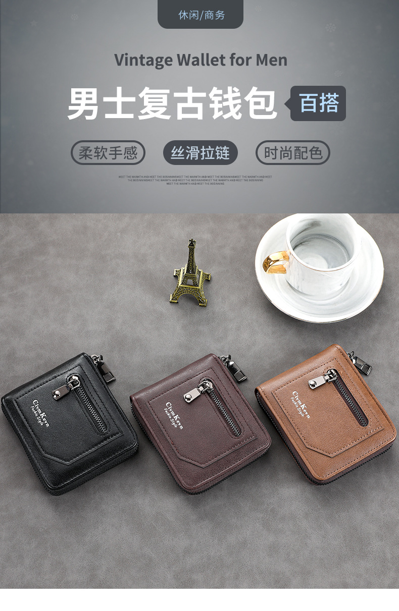 국경 간 레트로 남자 지갑 짧은 ID 카드 가방 지갑 지갑 지갑 지갑 지퍼 남자 지갑