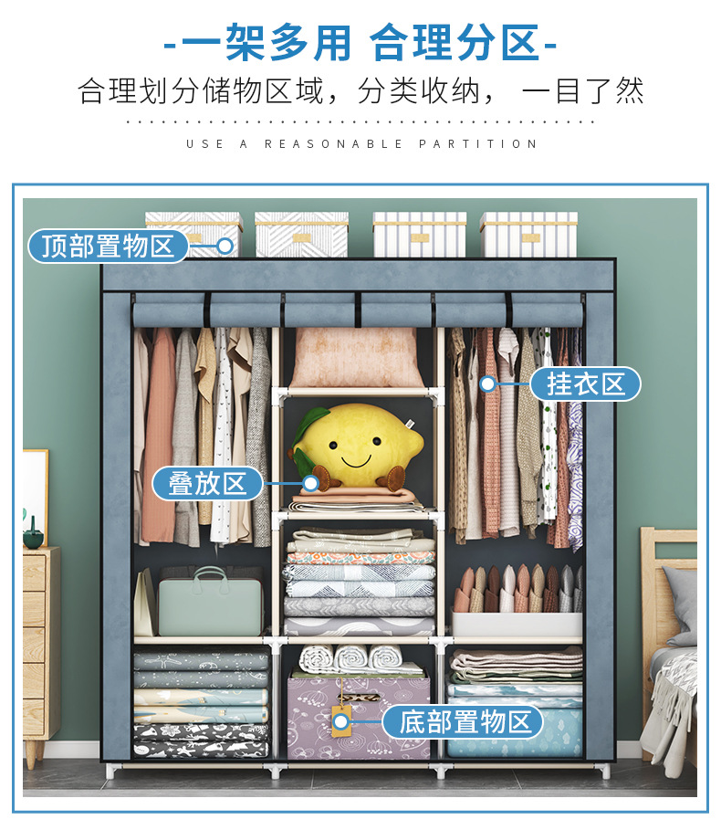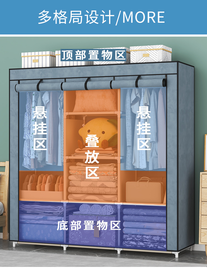 간단한 옷장 옷장 방진 대여실 싱글 스몰 사이즈 기숙사 침실 홈 교수형 옷 스틸 파이프 컬렉션 신제품스토어 가기