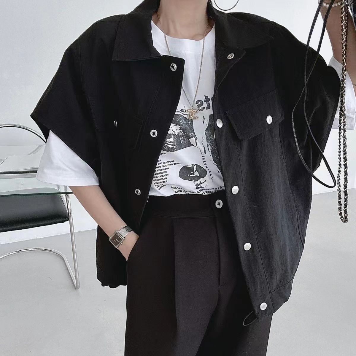 한국식 여름 새 복고풍 캐주얼 디자인 틈새 느슨한 우아한 올매치 작업복 조끼 재킷