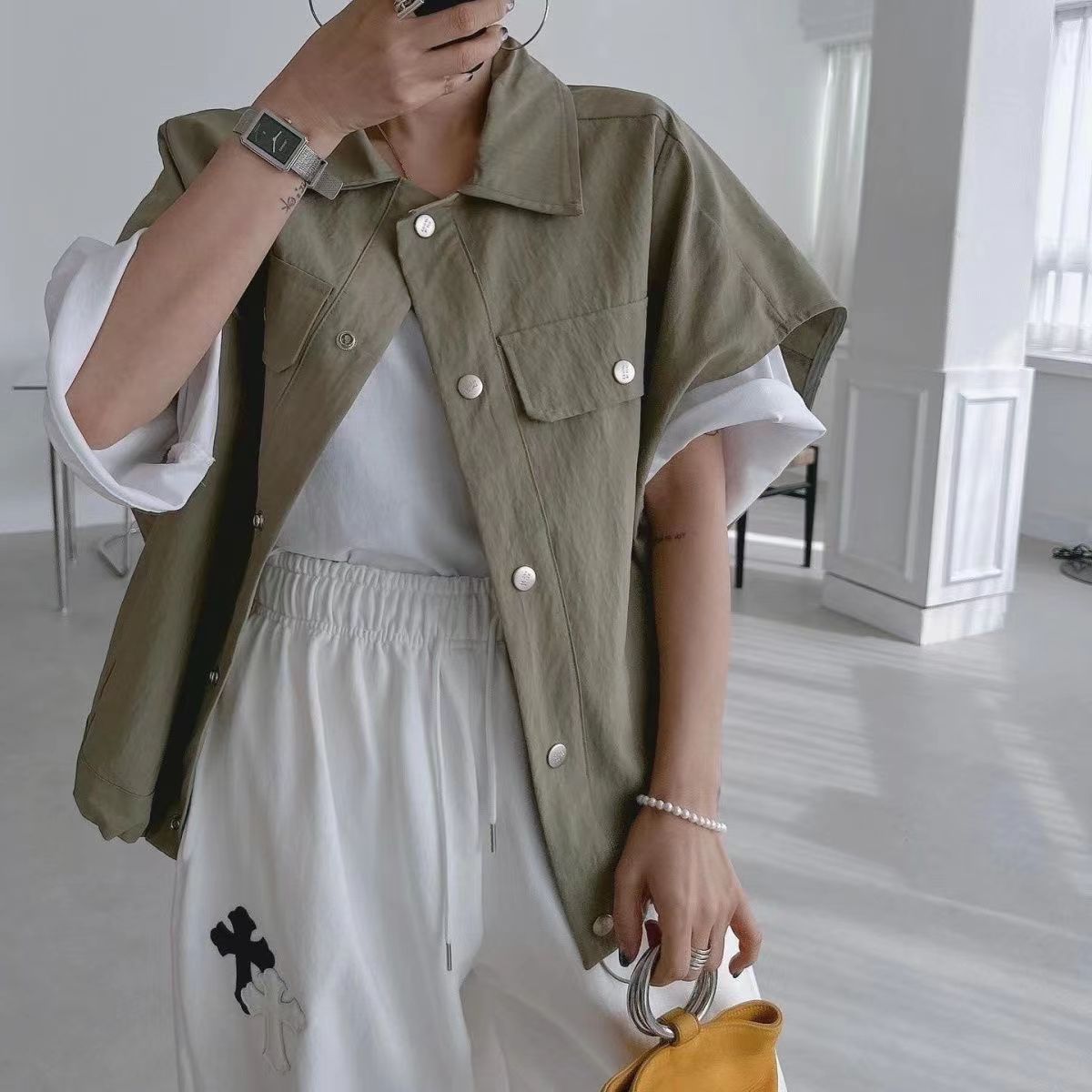 한국식 여름 새 복고풍 캐주얼 디자인 틈새 느슨한 우아한 올매치 작업복 조끼 재킷스토어 가기