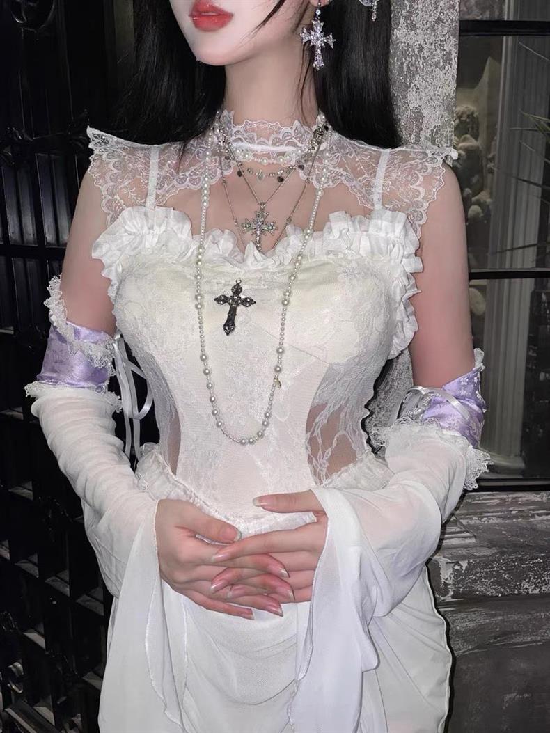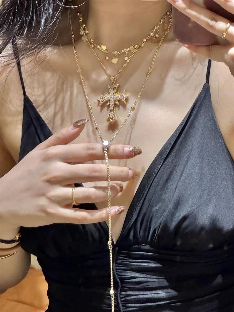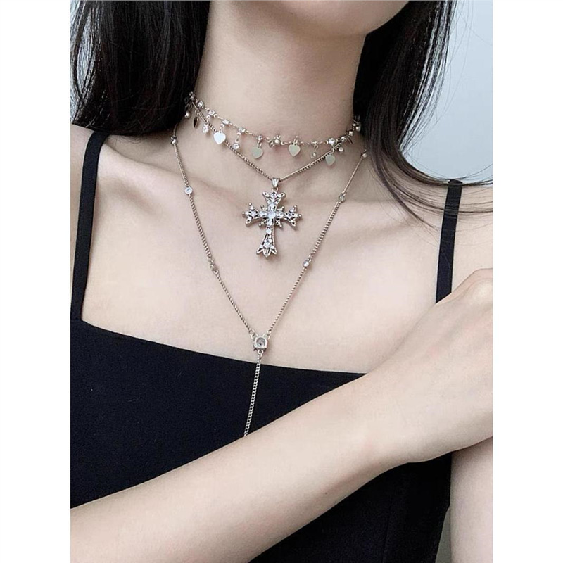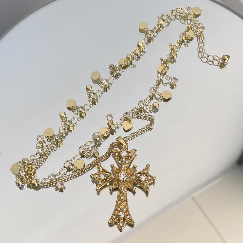 라이트 럭셔리 틈새 빈티지 바로크 스타일 더블 레이어 스택 크로스 목걸이 모직 체인스토어 가기