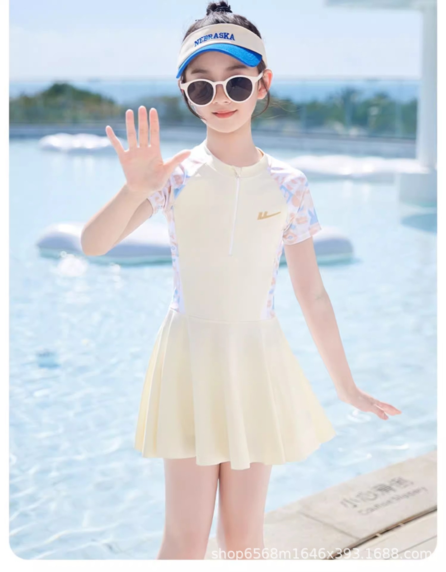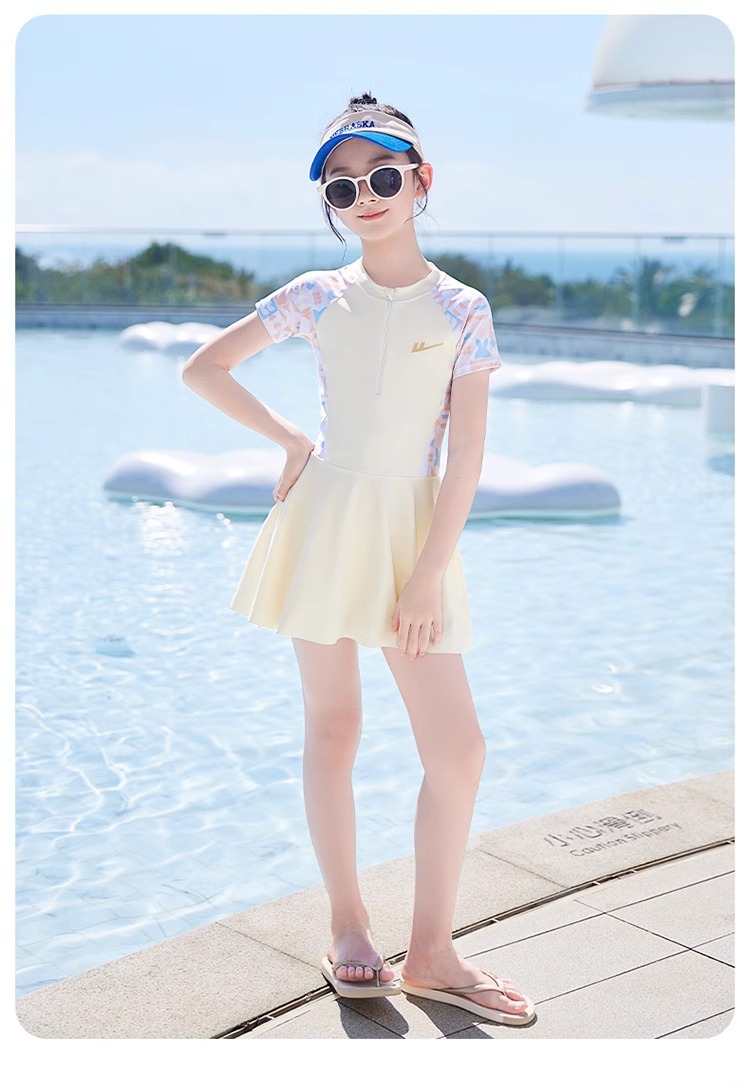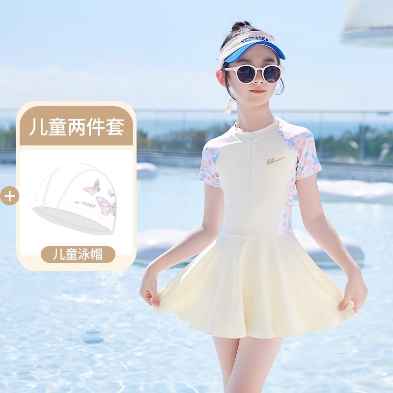 어린이 수영복 소녀 2025 새로운 여름 소녀 원피스 수영복 큰 어린이를위한 달콤한 수영복스토어 가기