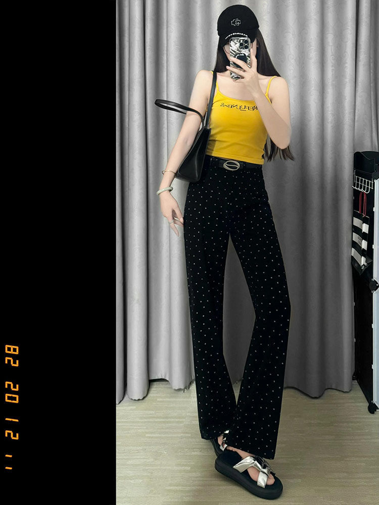 틈새 블랙 디자인 센스 높은 허리 스트레이트 다리 청바지 2024 새로운 여성 아메리칸 스타일 하이 스트리트 레트로 느슨한 넓은 다리 바지스토어 가기