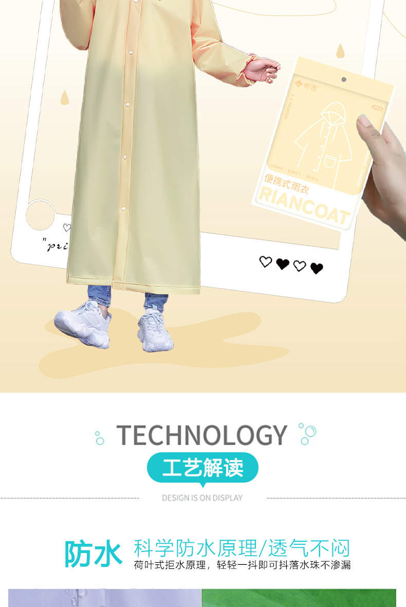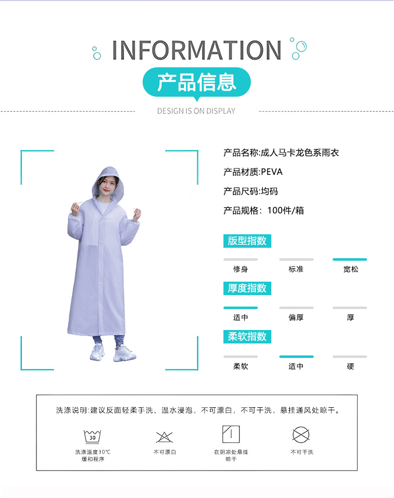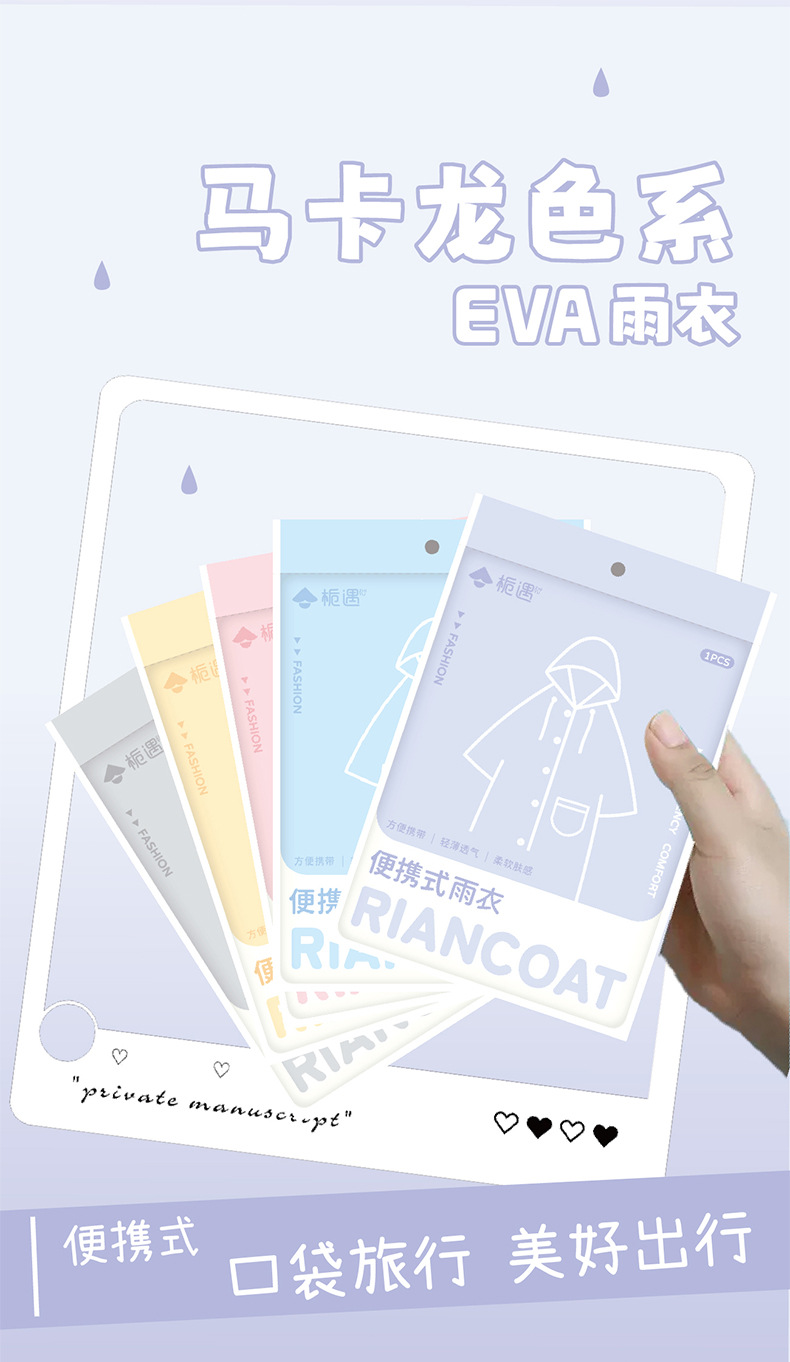 마카롱 컬러 일회용 비옷 학생 긴 전신 두꺼운 휴대용 비옷 가방 재활용 가능한 판초스토어 가기