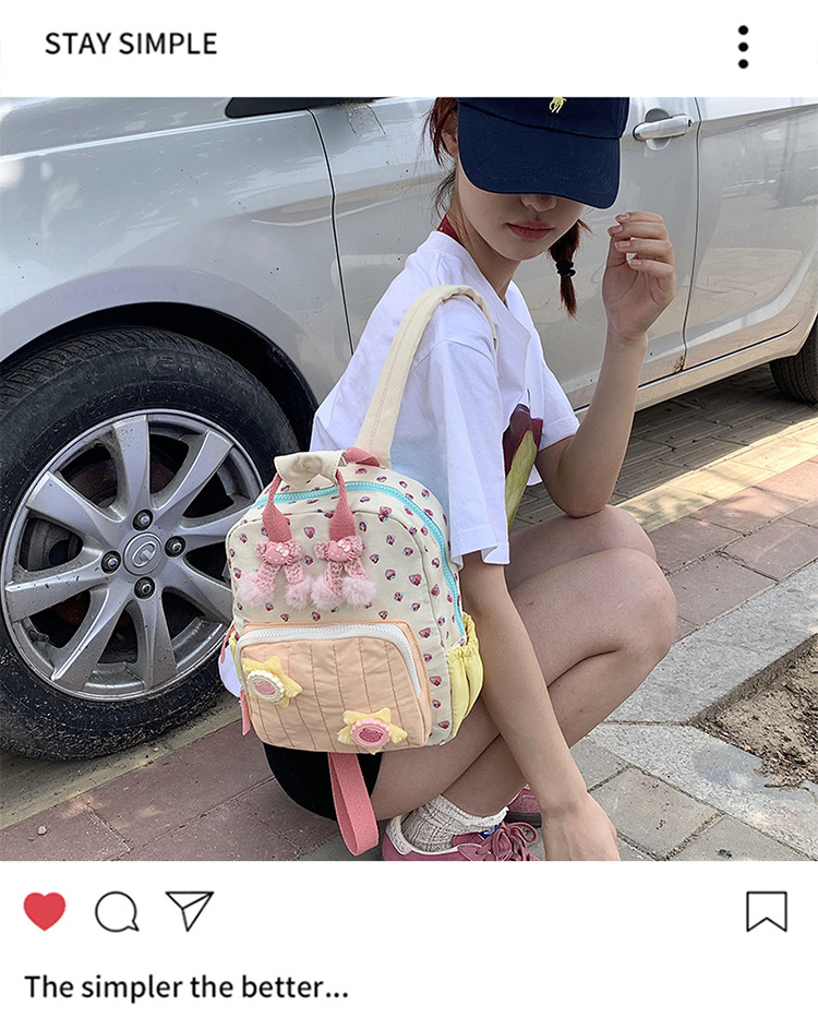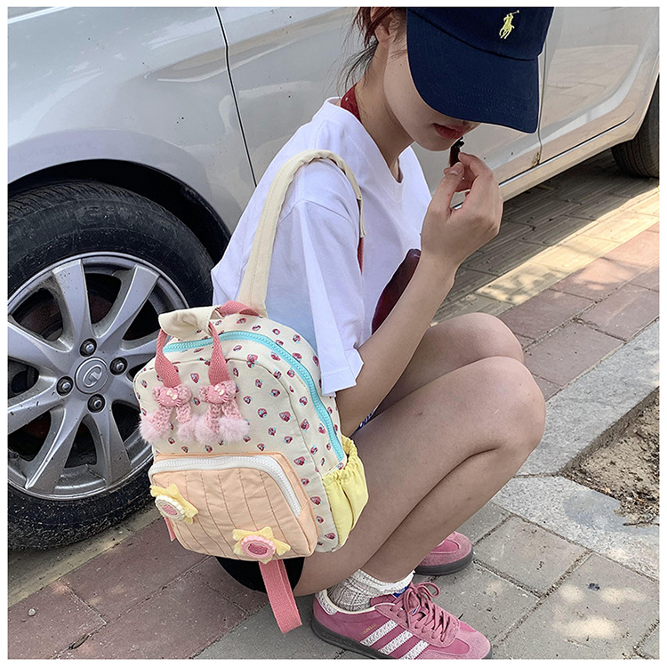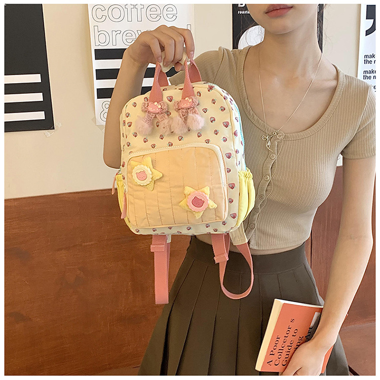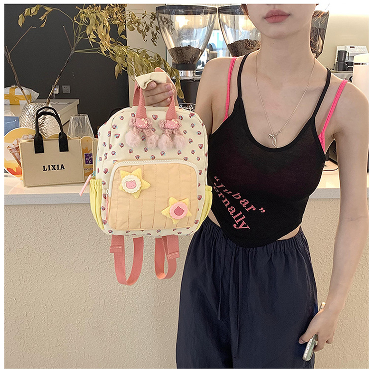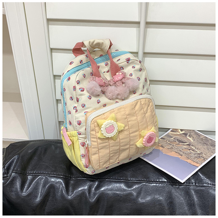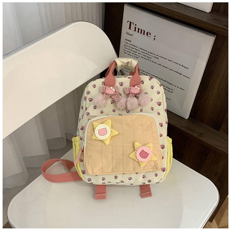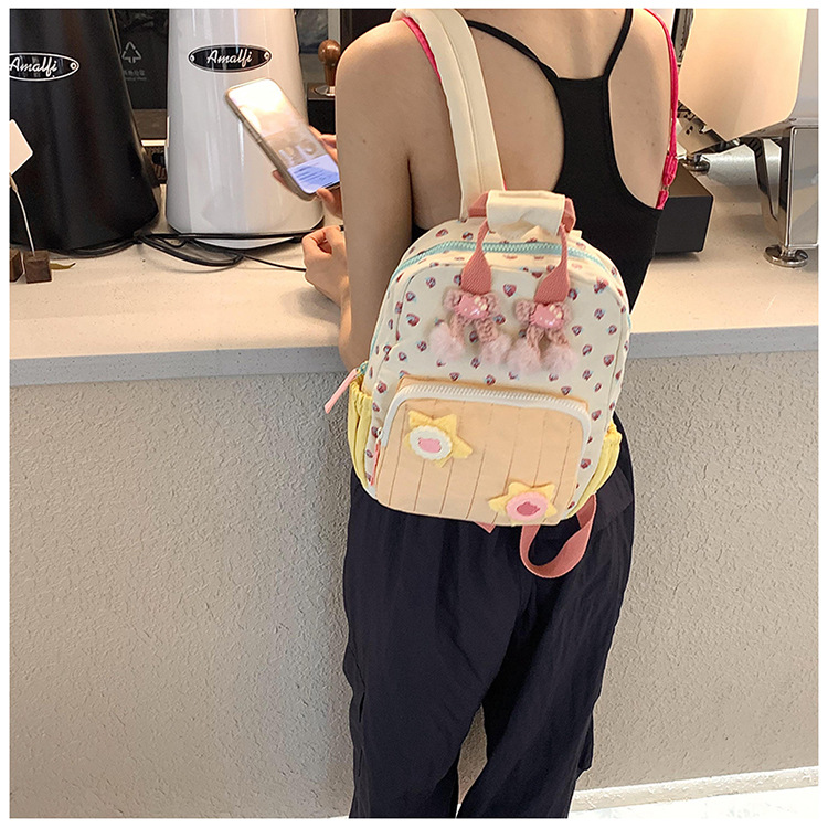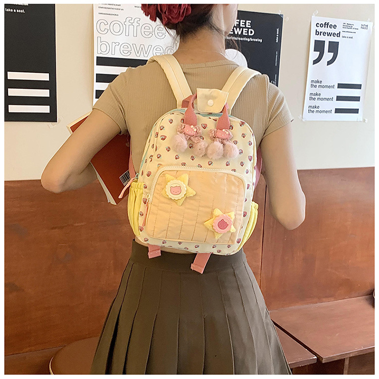 일본 부드러운 소녀 도파민 소녀 귀여운 작은 배낭 어린이 작은 딸기 만화 별 대비 미니 배낭스토어 가기