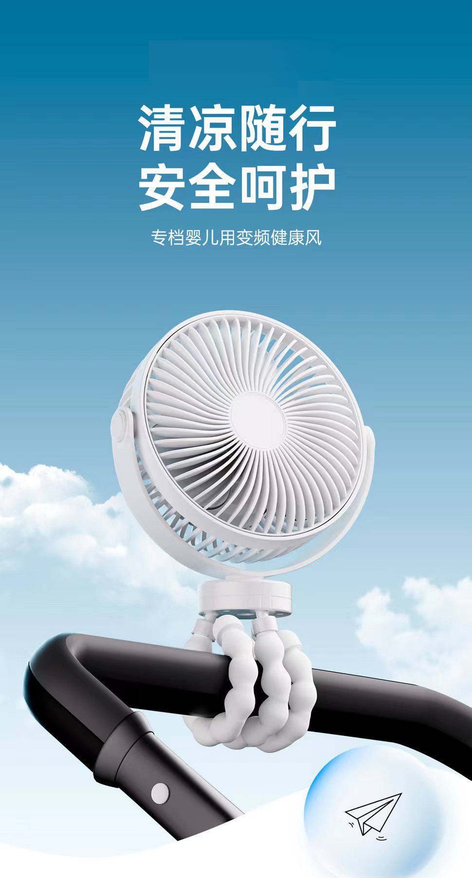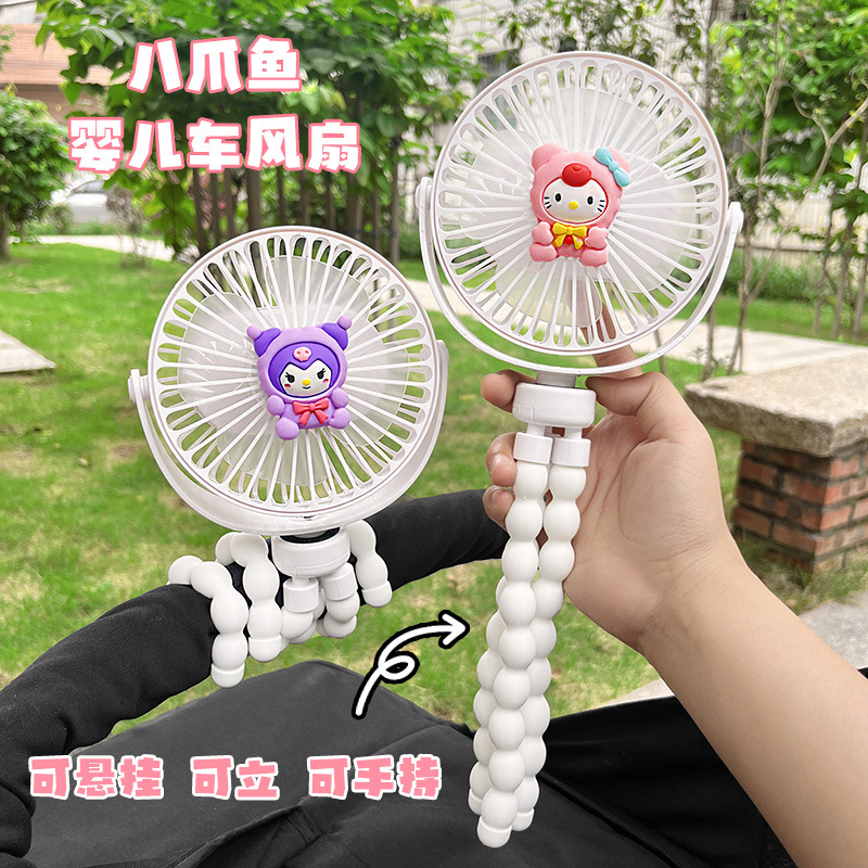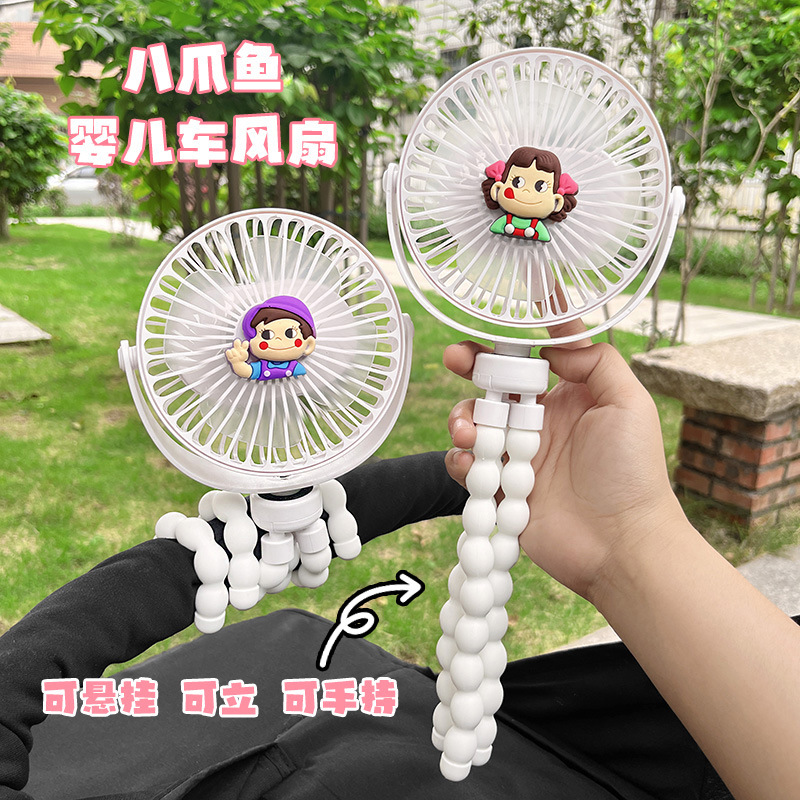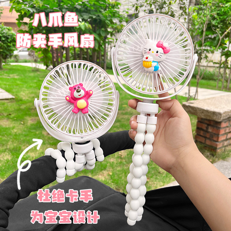 아기 자동차 작은 팬 휴대용 걷는 아기 유물 귀여운 만화 문어 아기 트롤리 클립 온 팬 음소거스토어 가기
