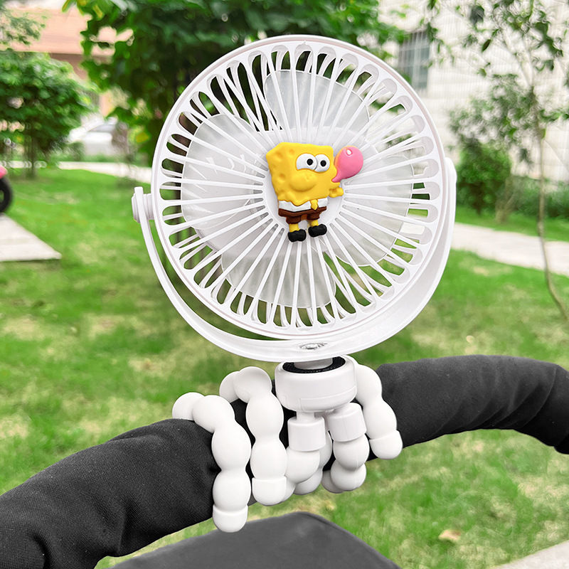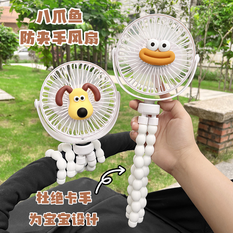 아기 자동차 작은 팬 휴대용 걷는 아기 유물 귀여운 만화 문어 아기 트롤리 클립 온 팬 음소거
