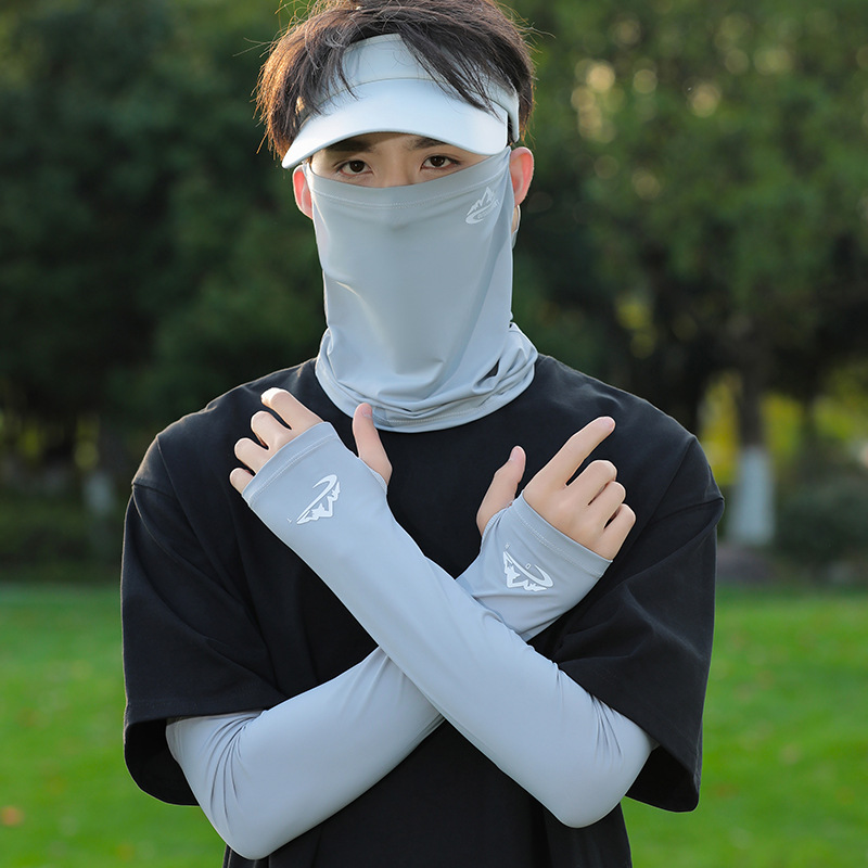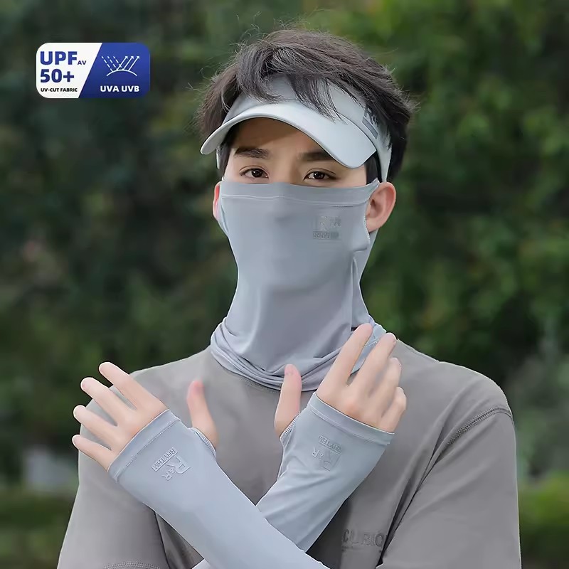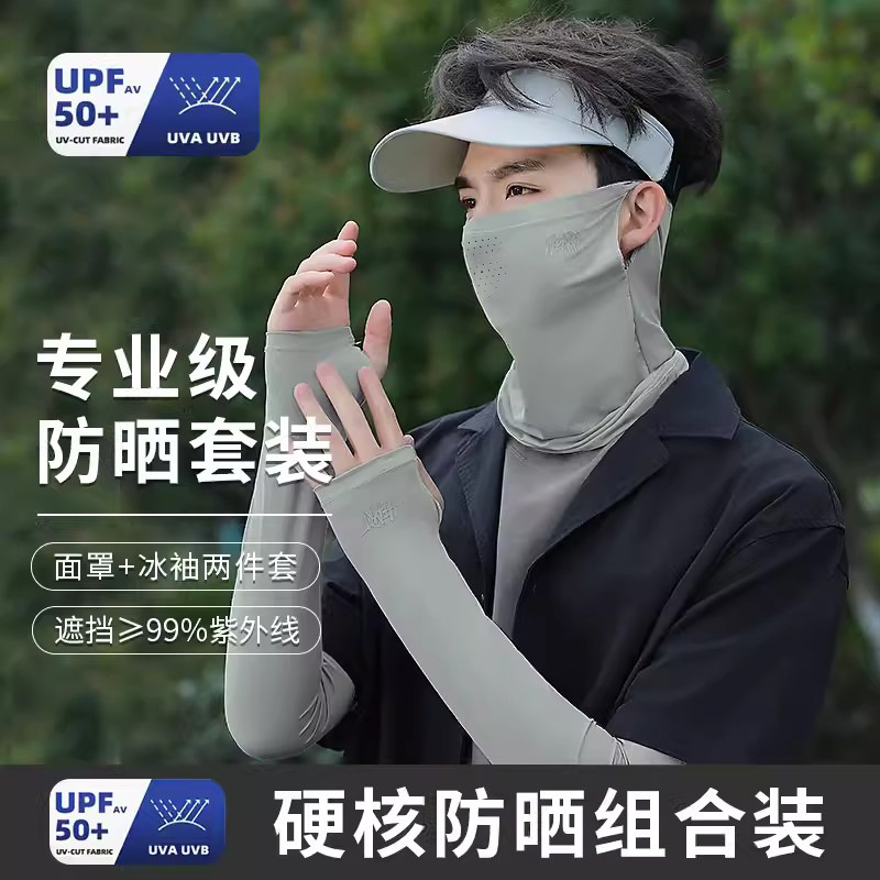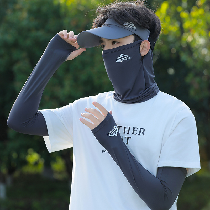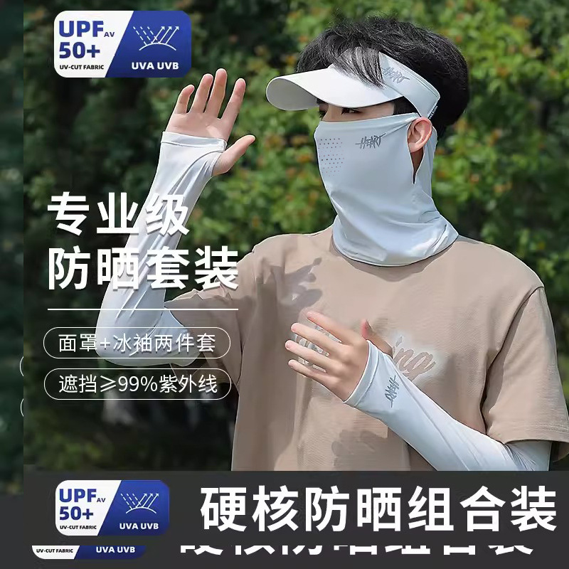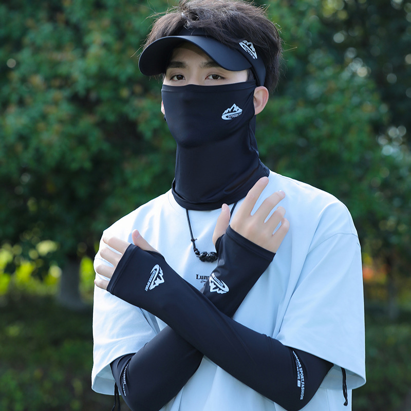아이스 실크 승마 선 스크린 마스크 남성 안티 UV 사이클링 얼굴 베일 남자 아이스 슬리브 선 스크린 캡 세트