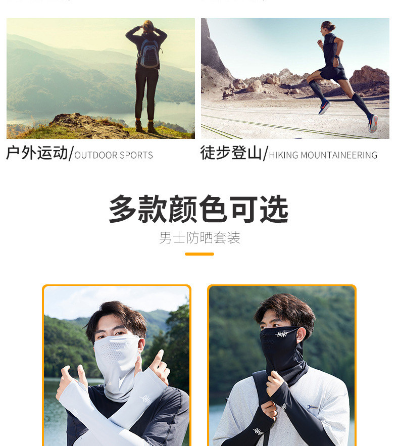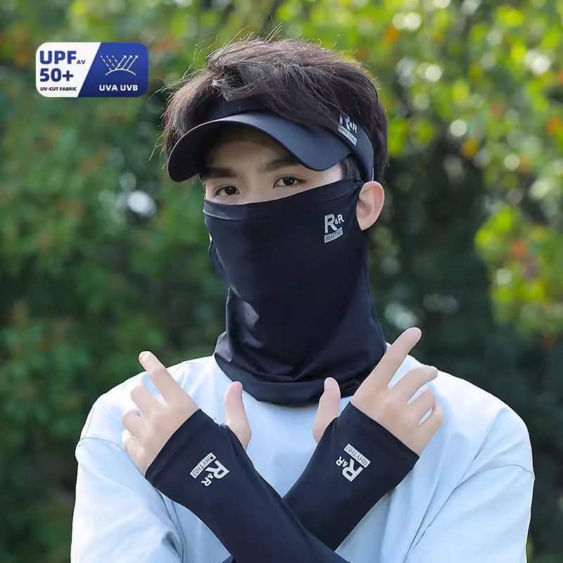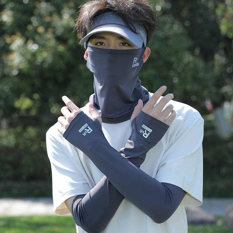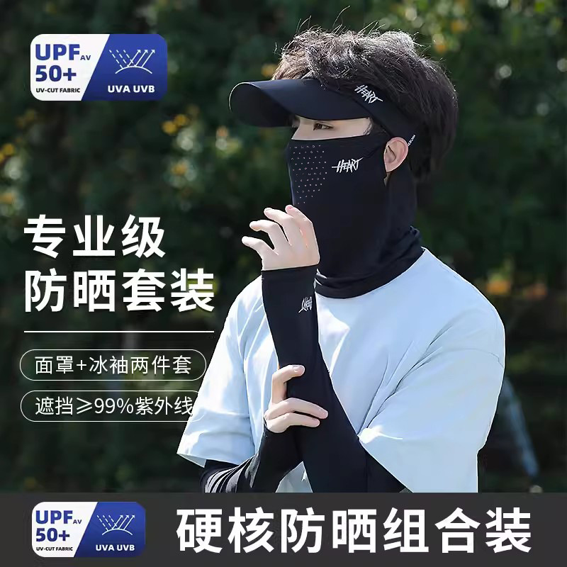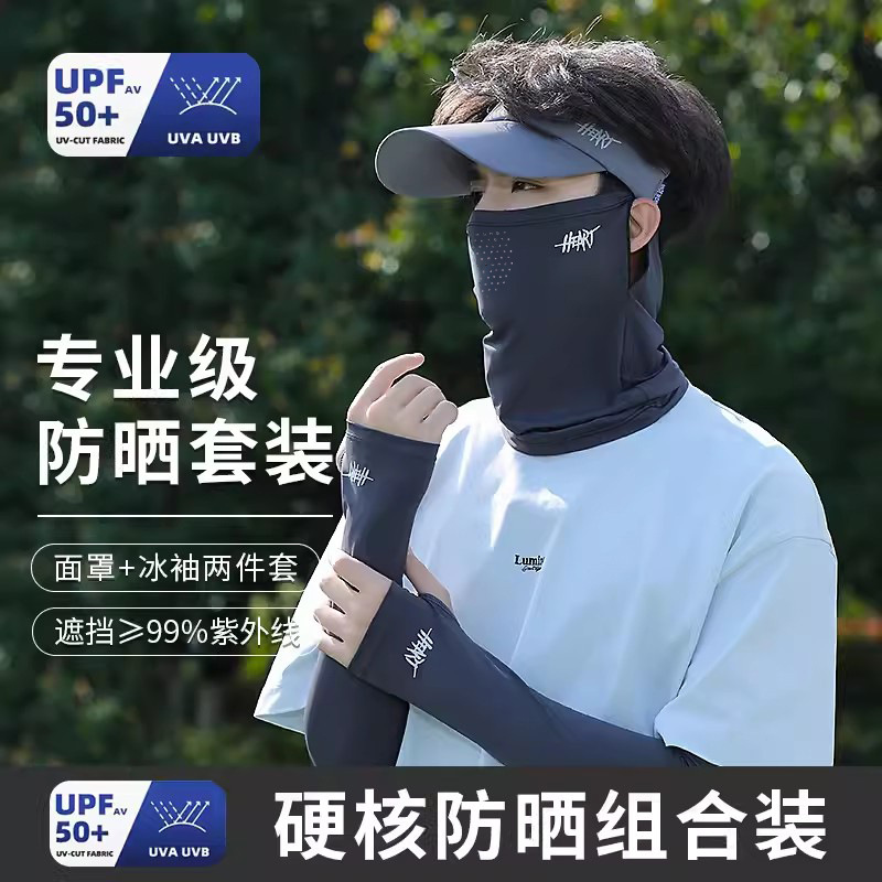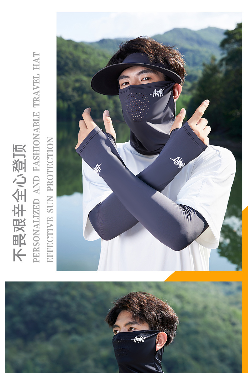 아이스 실크 승마 선 스크린 마스크 남성 안티 UV 사이클링 얼굴 베일 남자 아이스 슬리브 선 스크린 캡 세트
