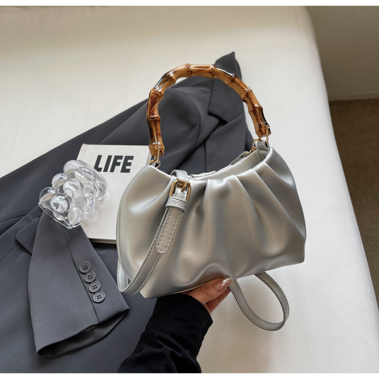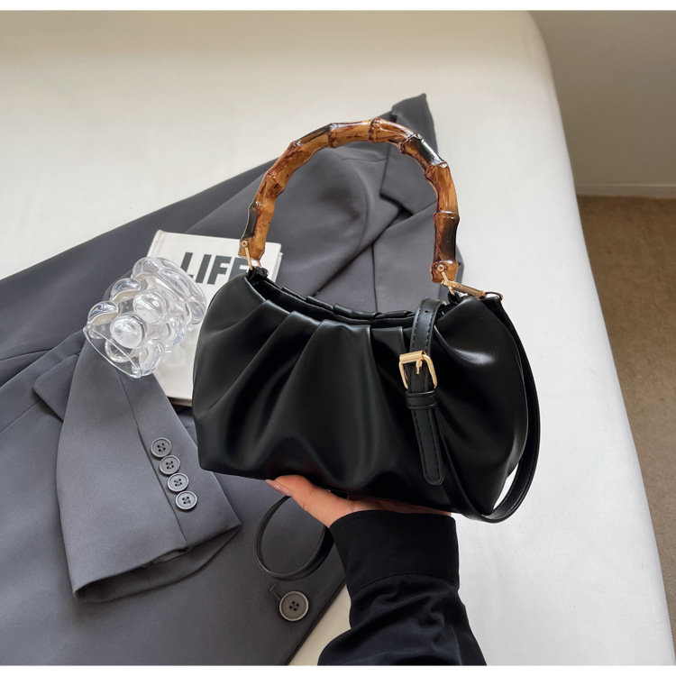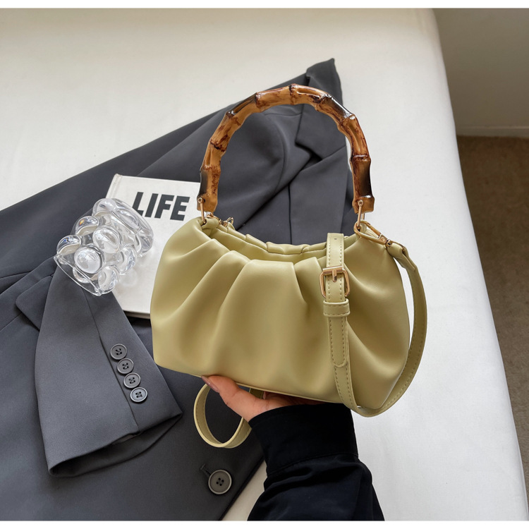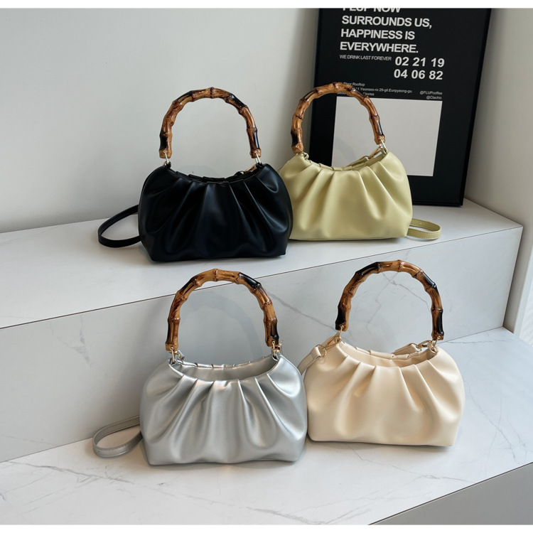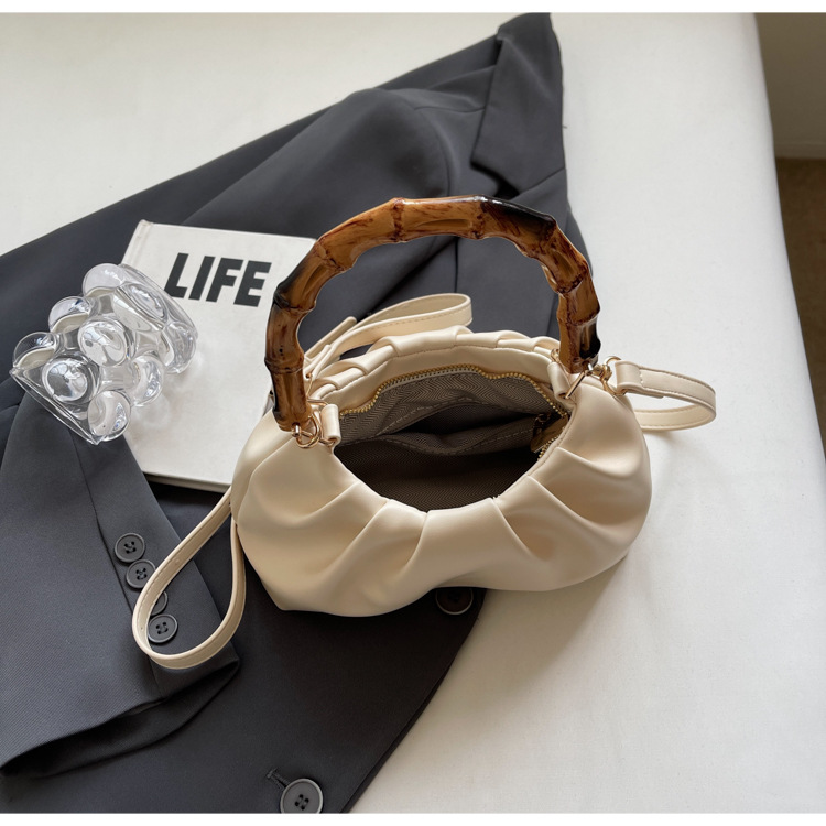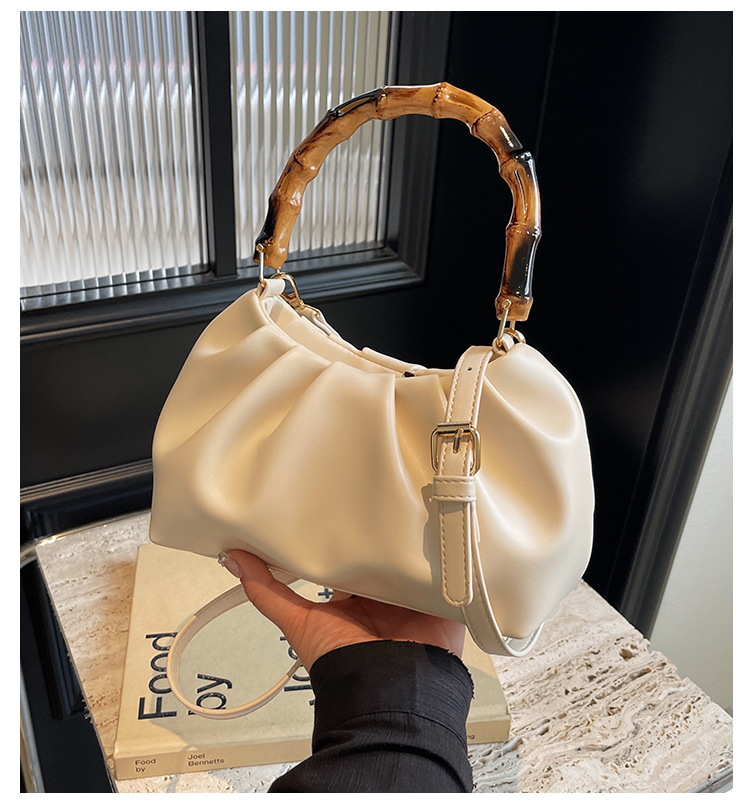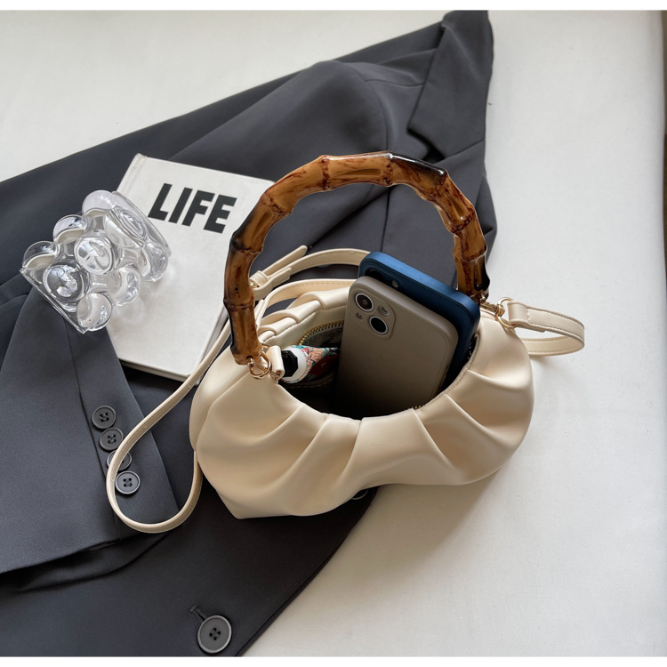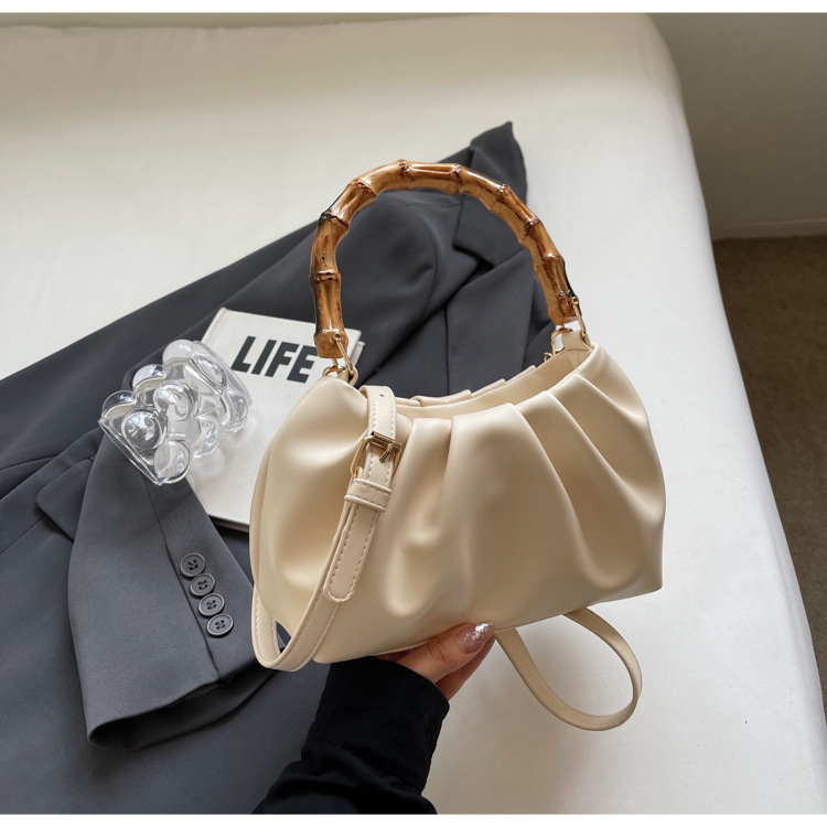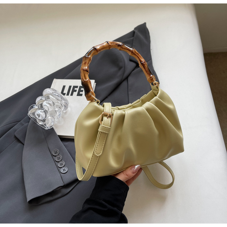 레트로 스타일 나무 대나무 휴대용 주름진 구름 가방 여성 가방 2024 새로운 패션 올 매치 어깨 크로스 바디 백