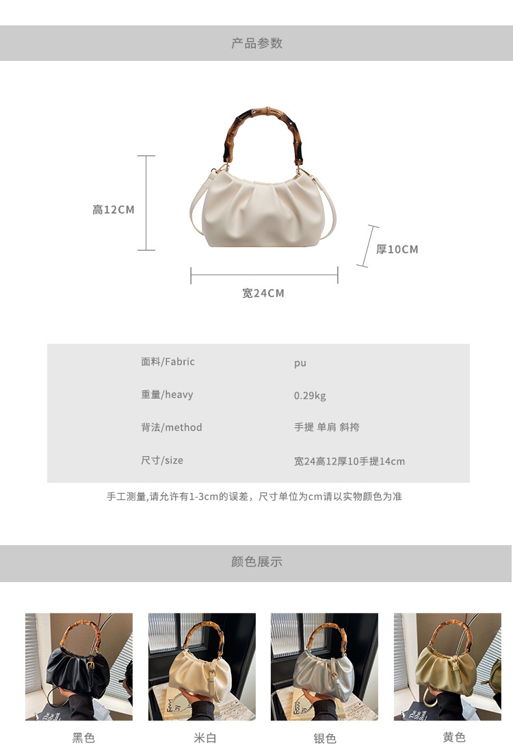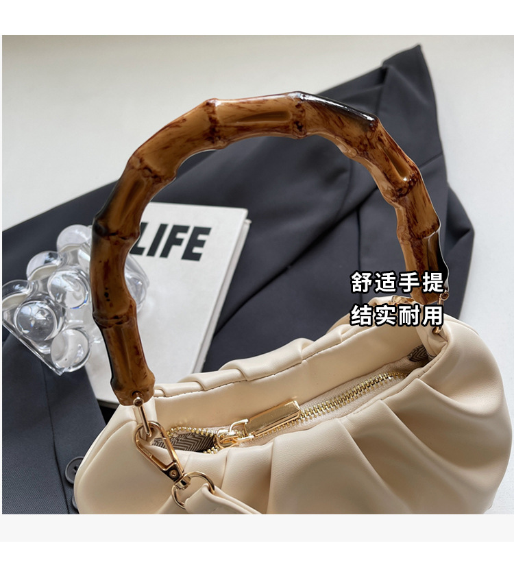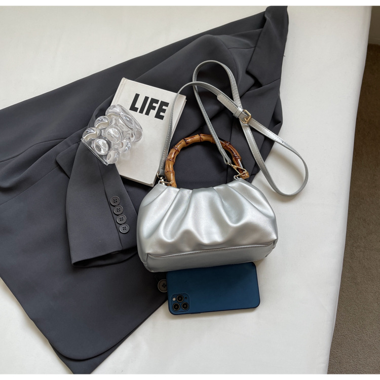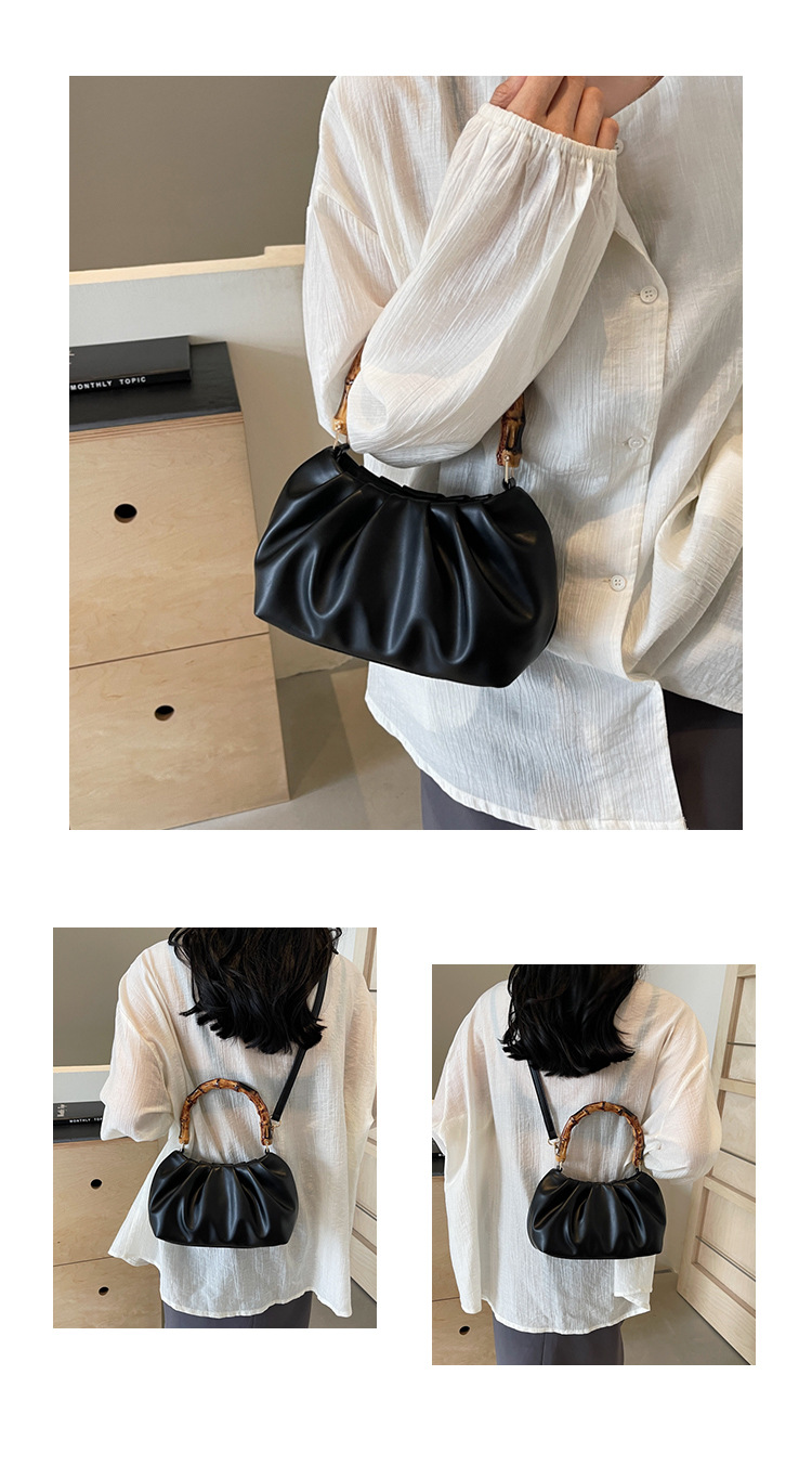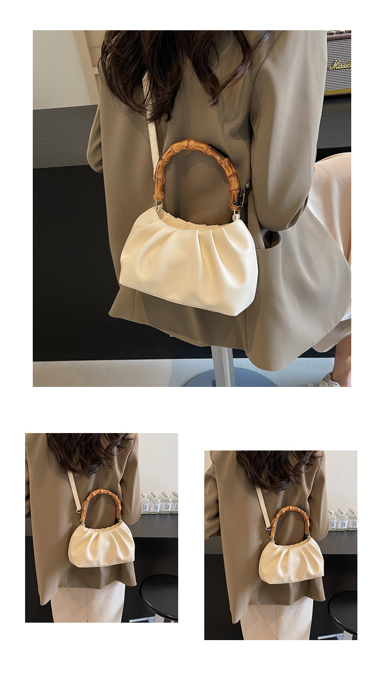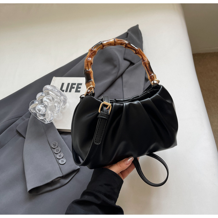 레트로 스타일 나무 대나무 휴대용 주름진 구름 가방 여성 가방 2024 새로운 패션 올 매치 어깨 크로스 바디 백