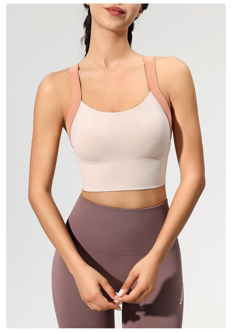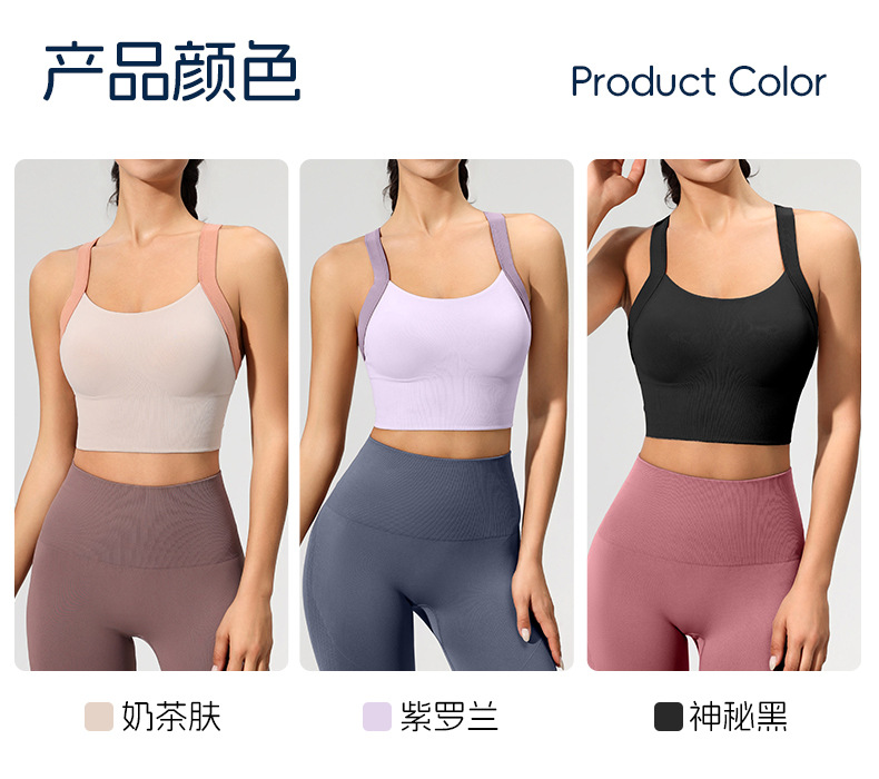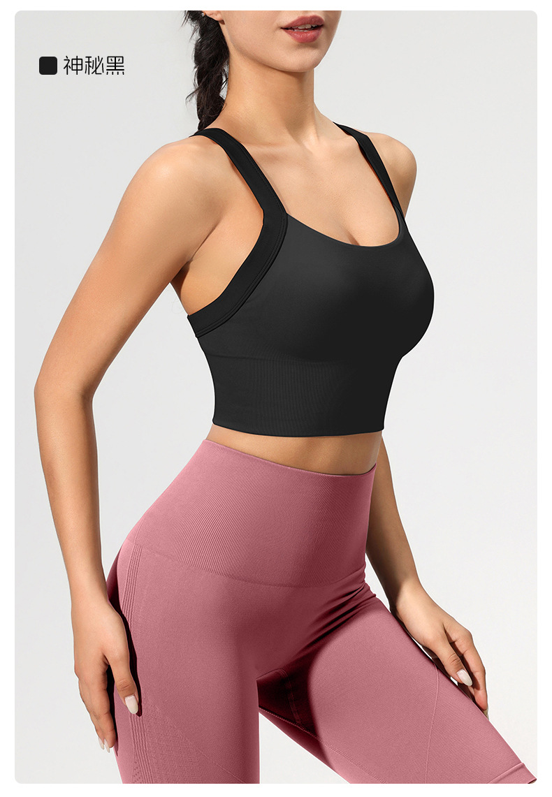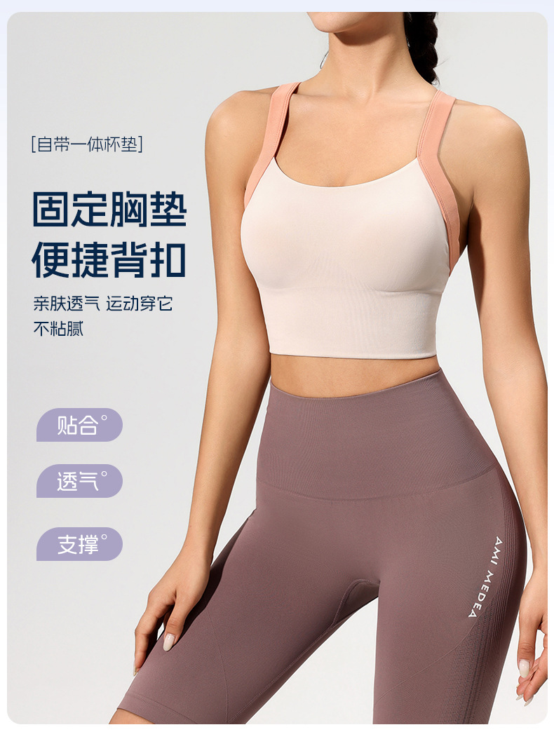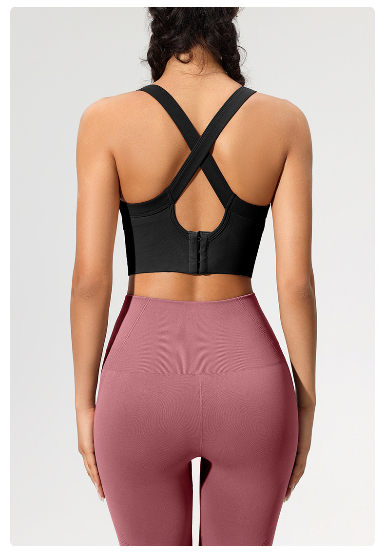 跨境健身文胸女四排四扣防震瑜伽服背心固定杯高强度美背运动内衣