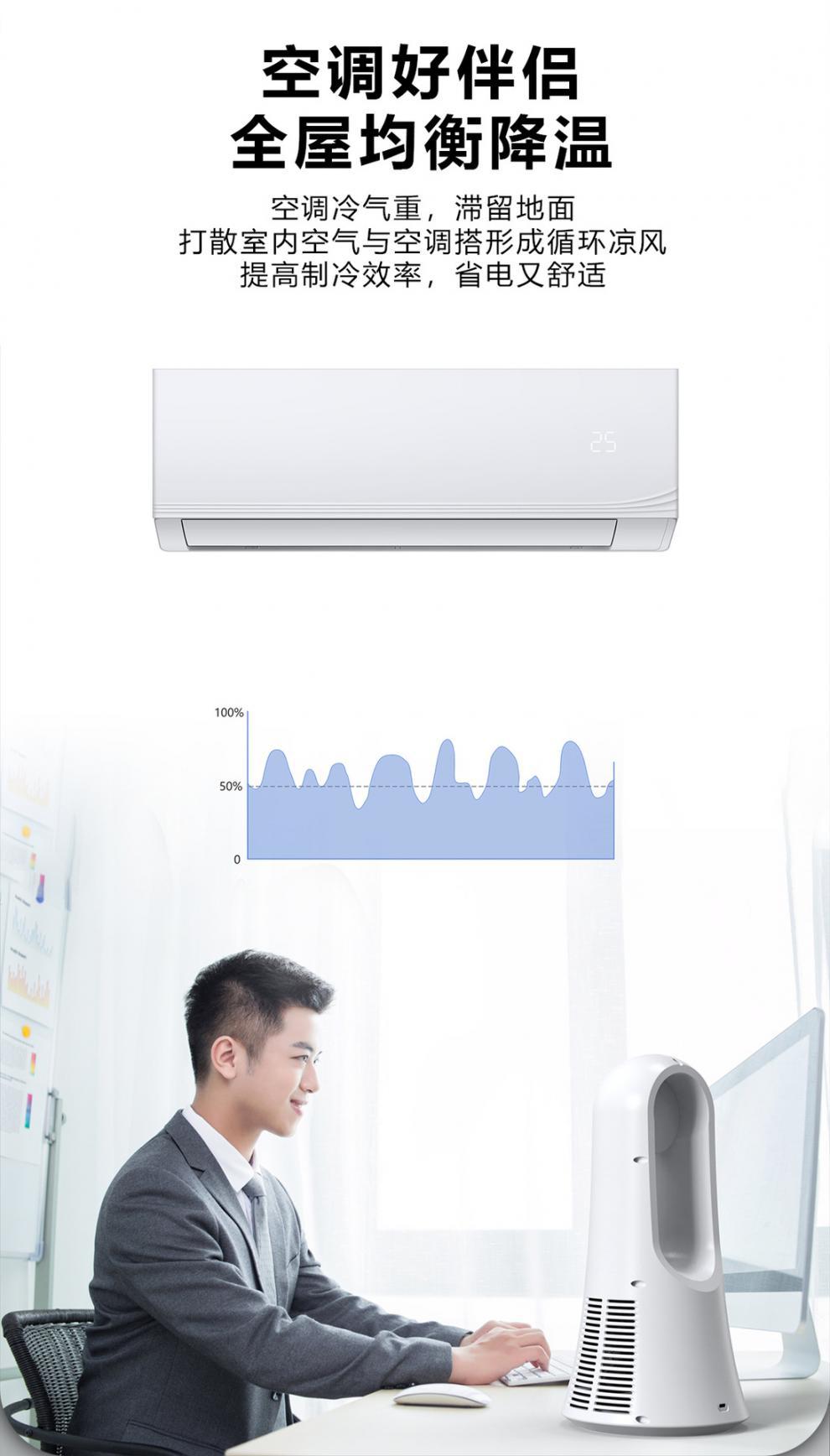 香氛无叶风扇桌面LED屏显空调扇 大风力立式塔扇静音办公室电风扇