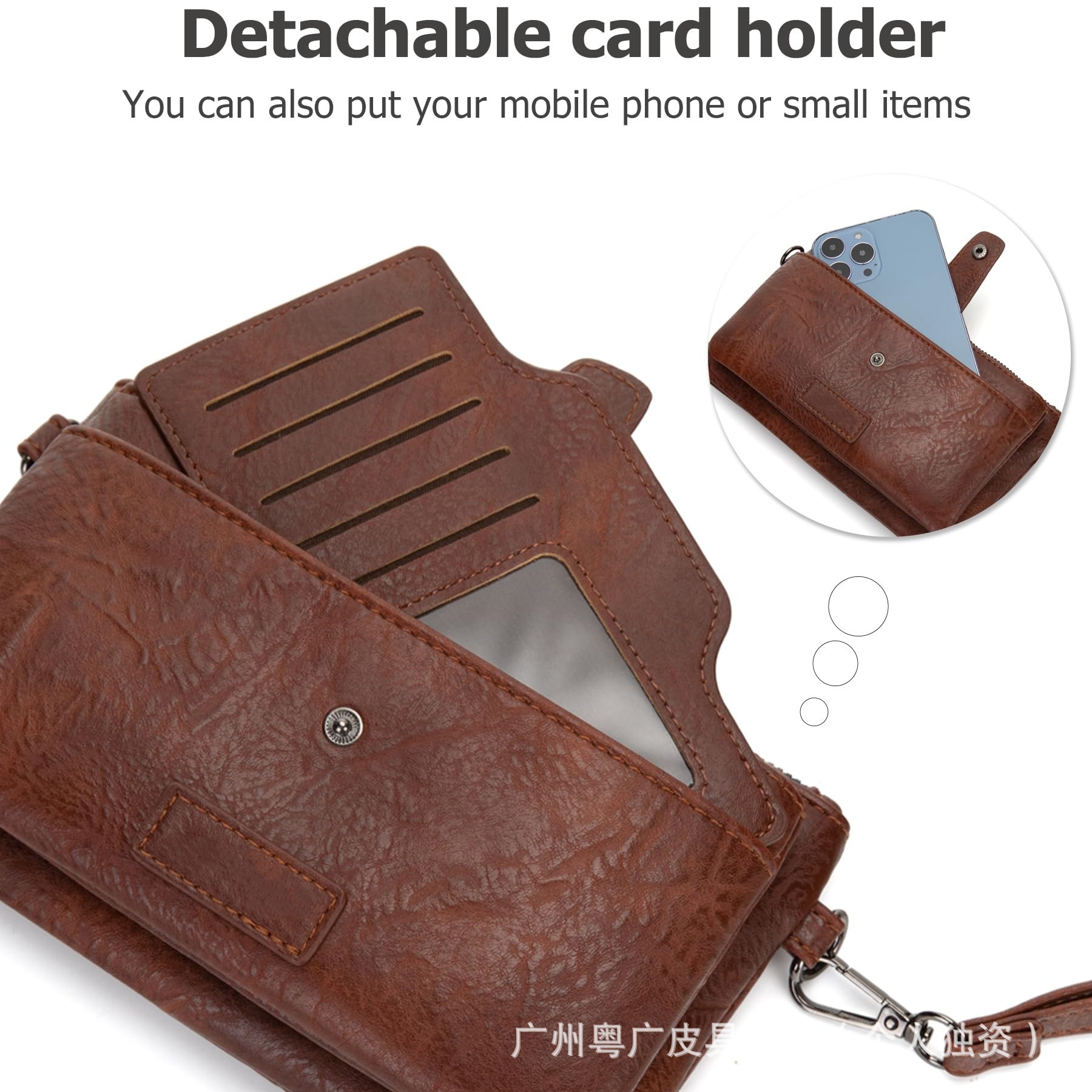 새로운 국경 복고풍 대용량 수평 여성 휴대 전화 가방 다기능 멀티 카드 휴대용 여행 보관 가방