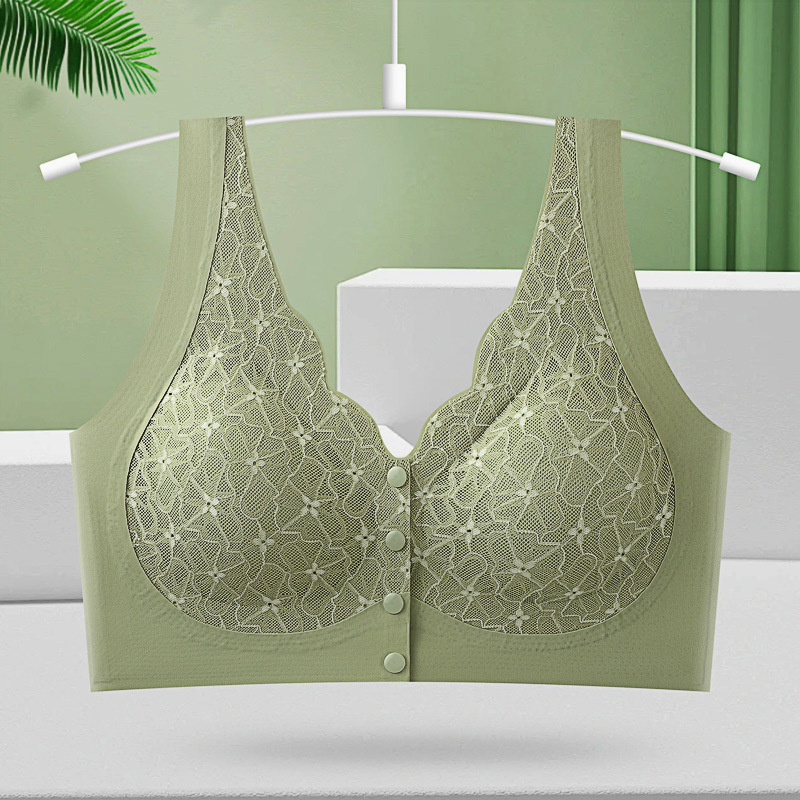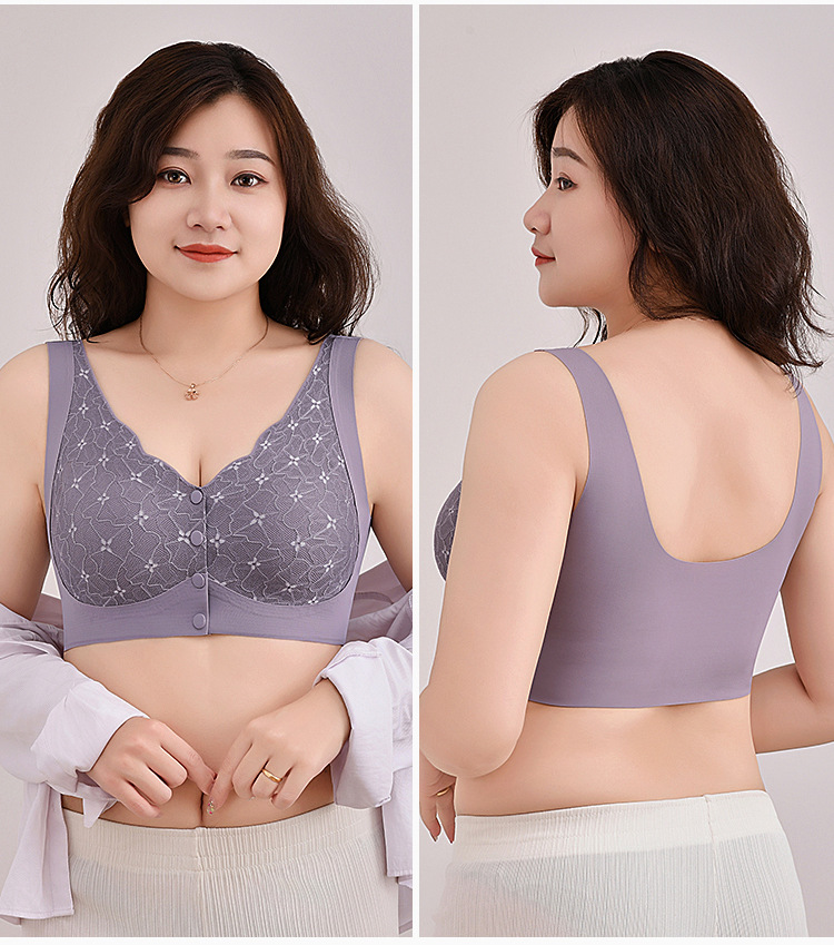 프론트 오프닝 및 버클 프리 브라 안티 처짐 조끼 스타일 플러스 사이즈 및 노 마크 아름다운 등 와이드 어깨 스트랩 속옷을 입은 여성용 브라
