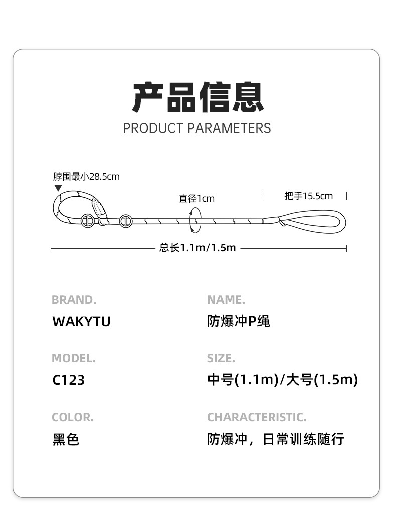 Wakytu 영국 야외 폭발 방지 개 걷는 로프 개 견인 밧줄 유형 P 로프 훈련 견인 체인스토어 가기
