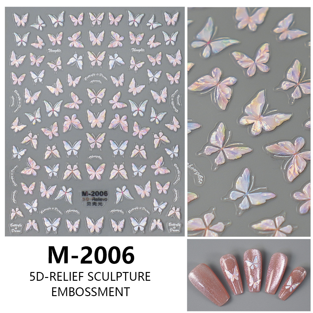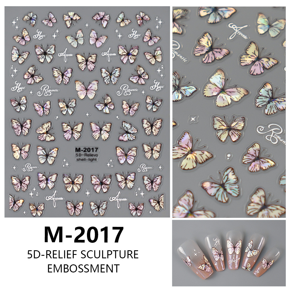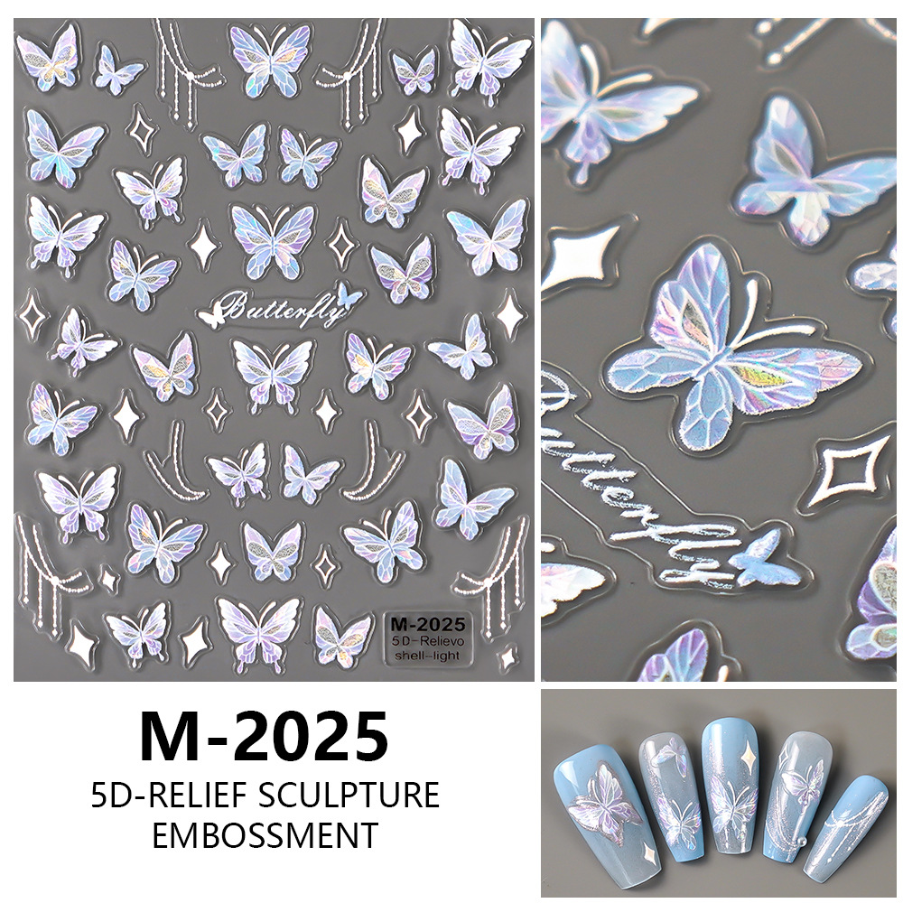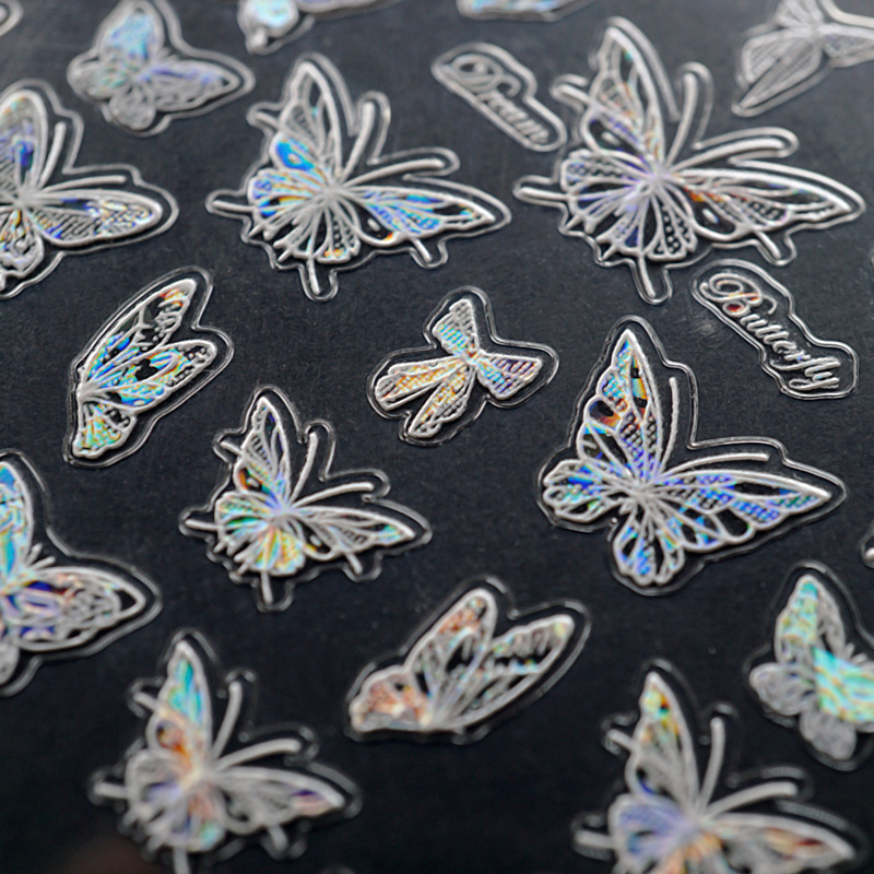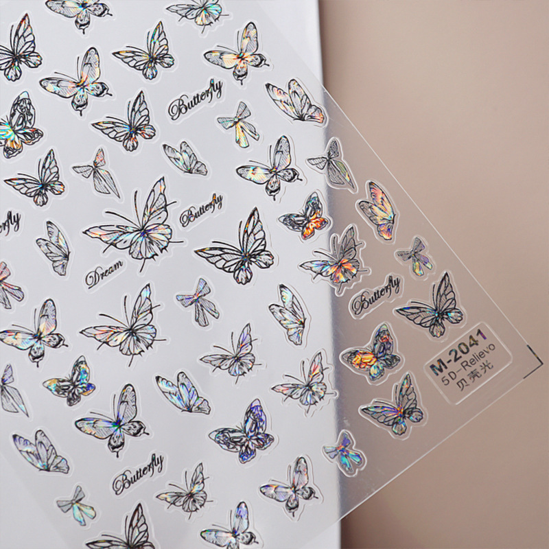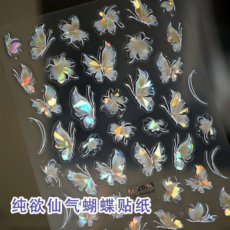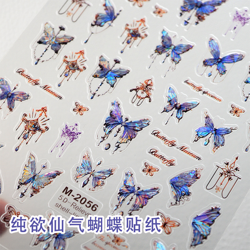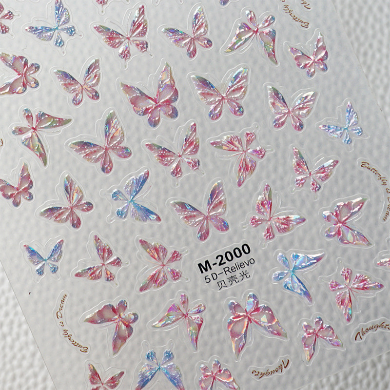 국경을 넘는 인기 5D 레이저 쉘 라이트 나비 별 네일 아트 스티커 도매, 요정같은 입체 스티커스토어 가기