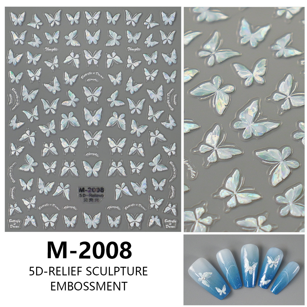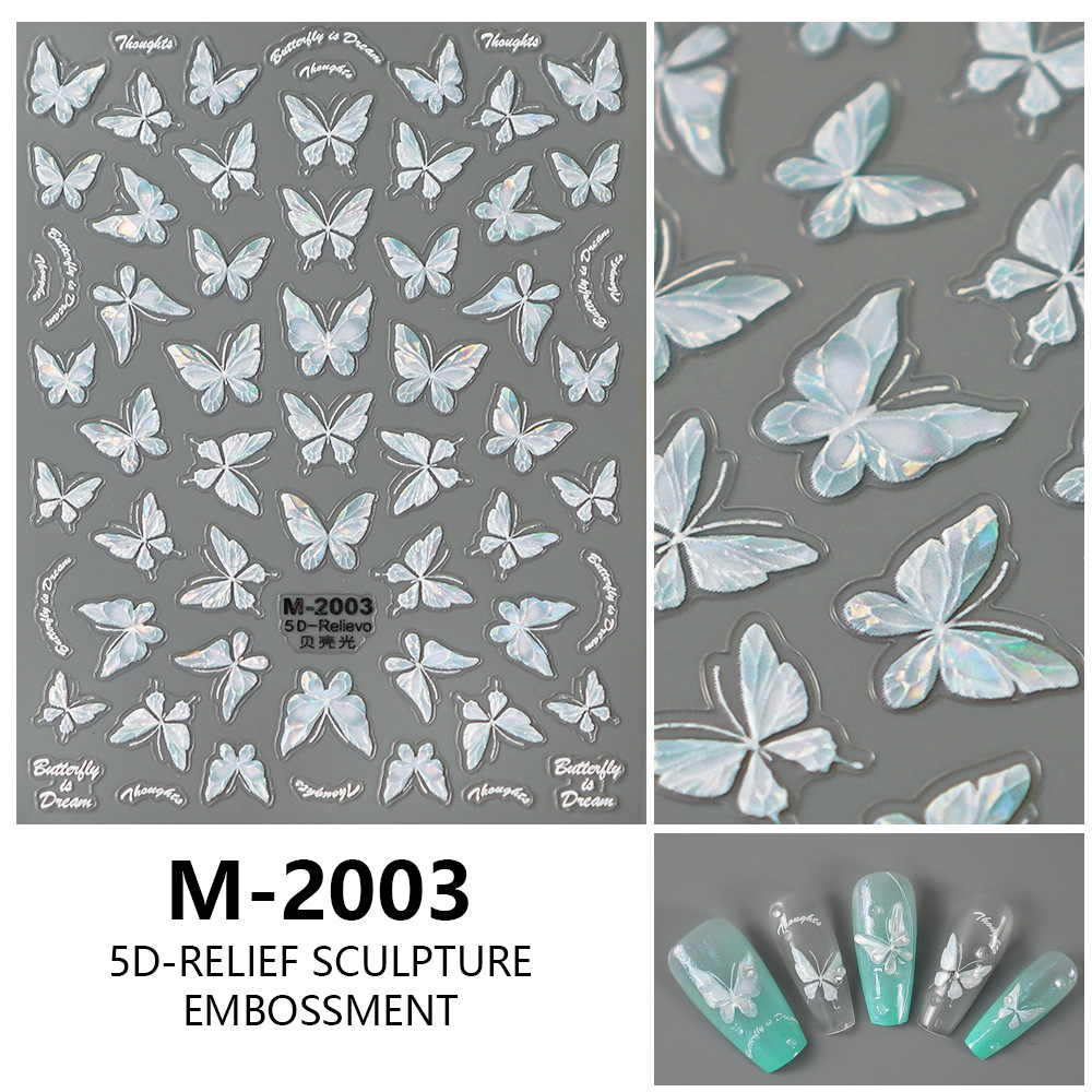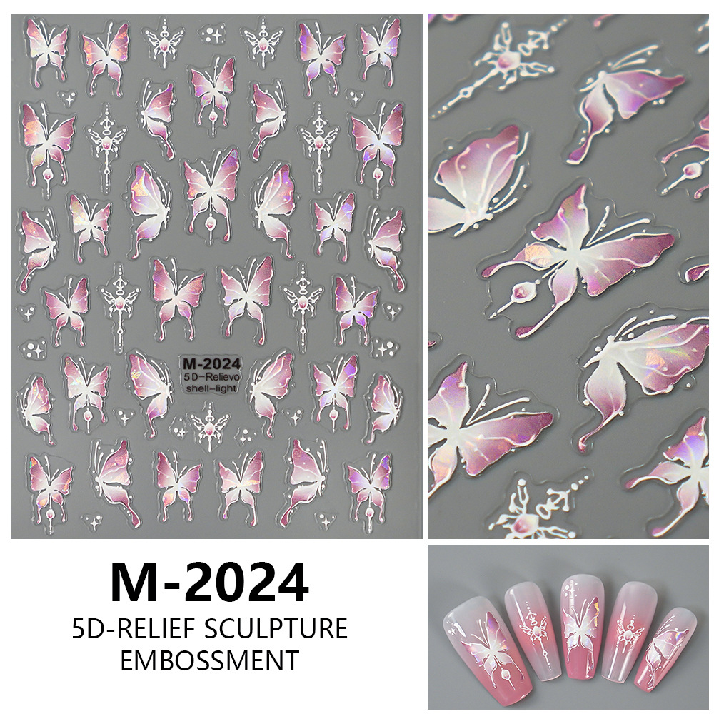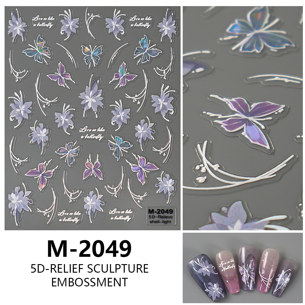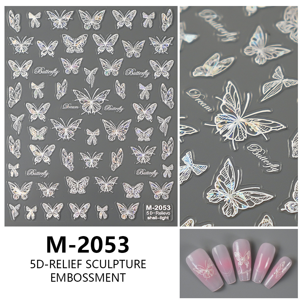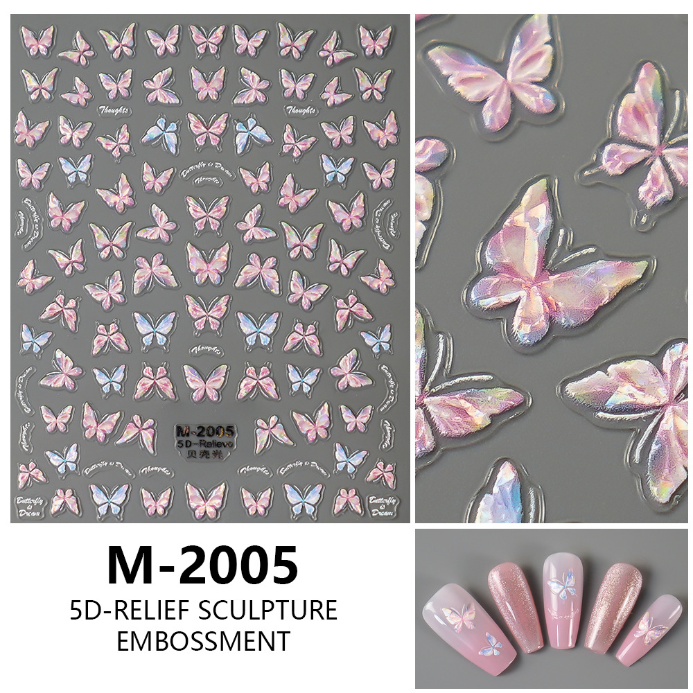 국경을 넘는 인기 5D 레이저 쉘 라이트 나비 별 네일 아트 스티커 도매, 요정같은 입체 스티커스토어 가기