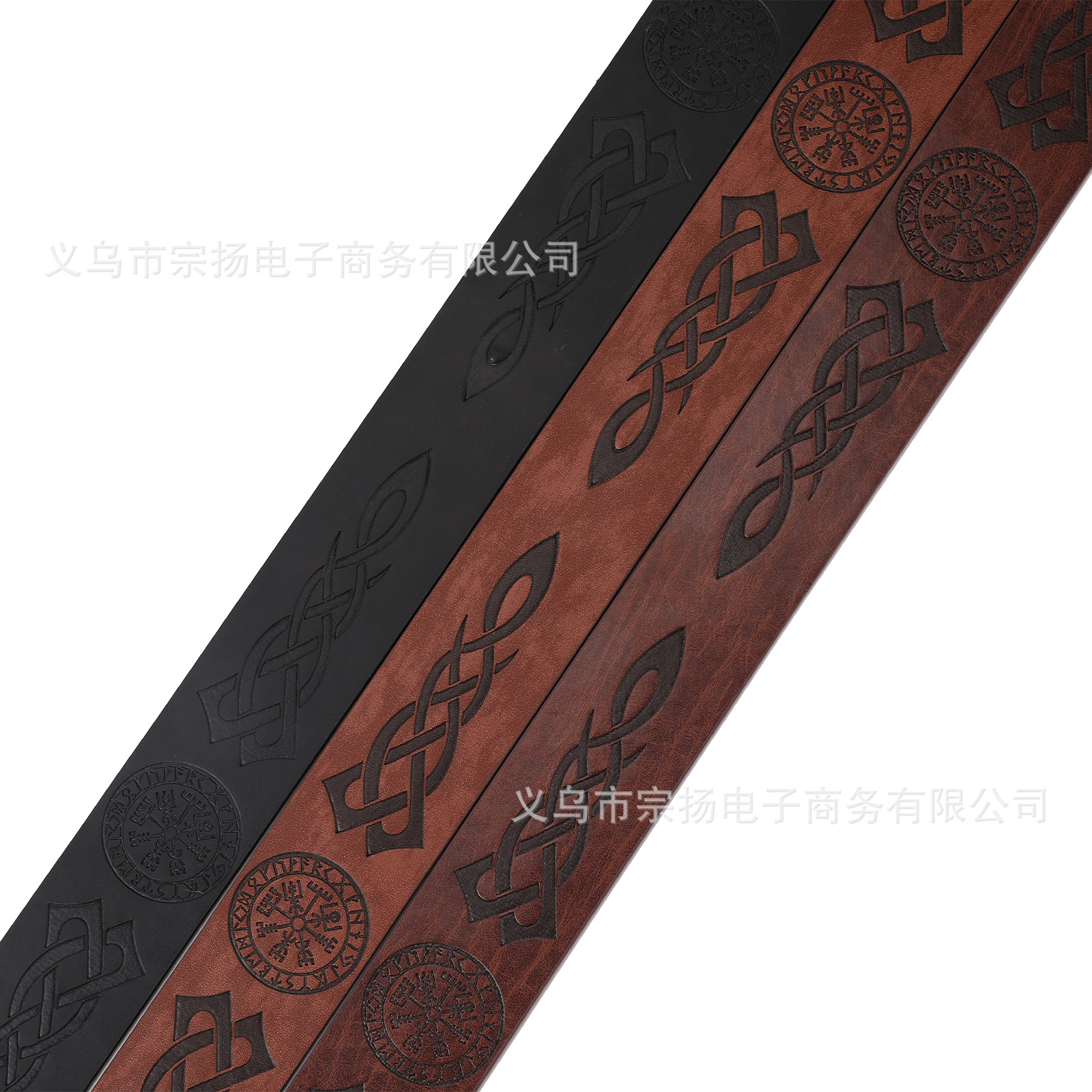 레트로 양각 된 중세 예술적 레트로 합금 세이버 양각 기사 모조 가죽 가죽 벨트 추가 롱