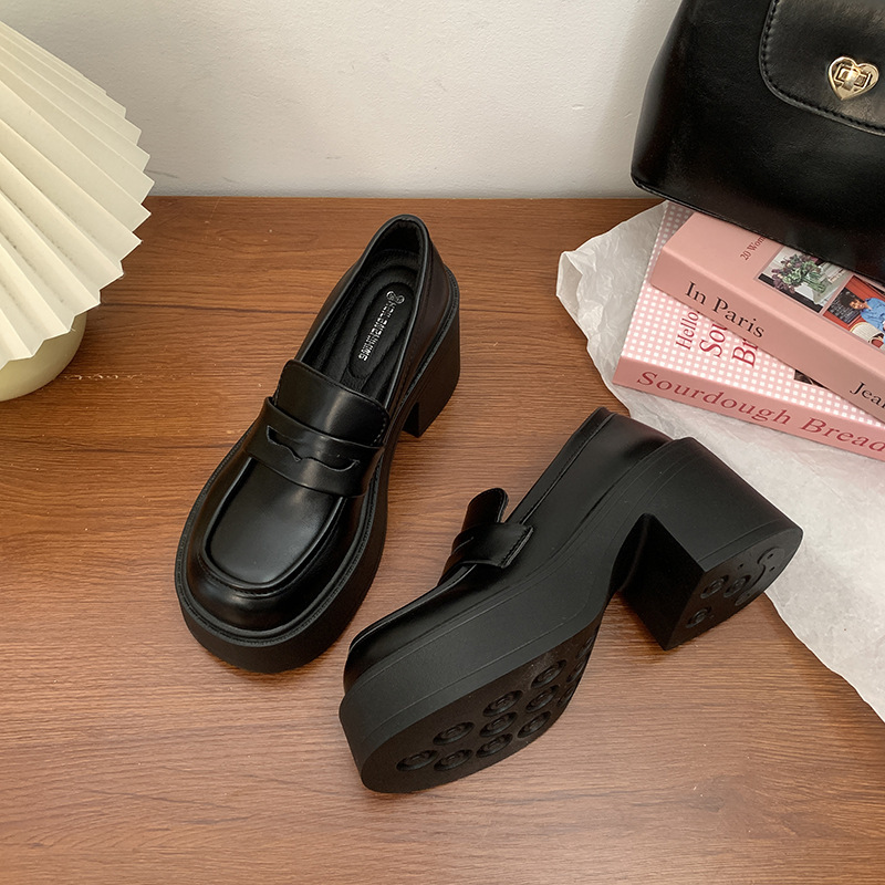 빈티지 두꺼운 가죽 신발 여성 영국 스타일 싱글 레이어 신발 외주 2025 새로운 도착 가을 및 여름 올 매치 두꺼운 뒤꿈치 Lefu 신발스토어 가기