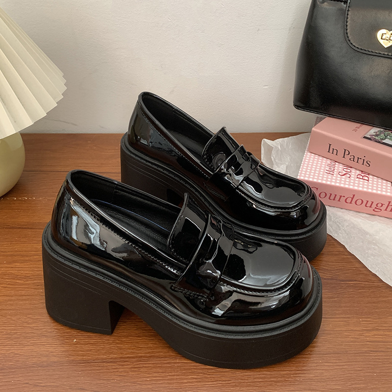 빈티지 두꺼운 가죽 신발 여성 영국 스타일 싱글 레이어 신발 외주 2025 새로운 도착 가을 및 여름 올 매치 두꺼운 뒤꿈치 Lefu 신발
