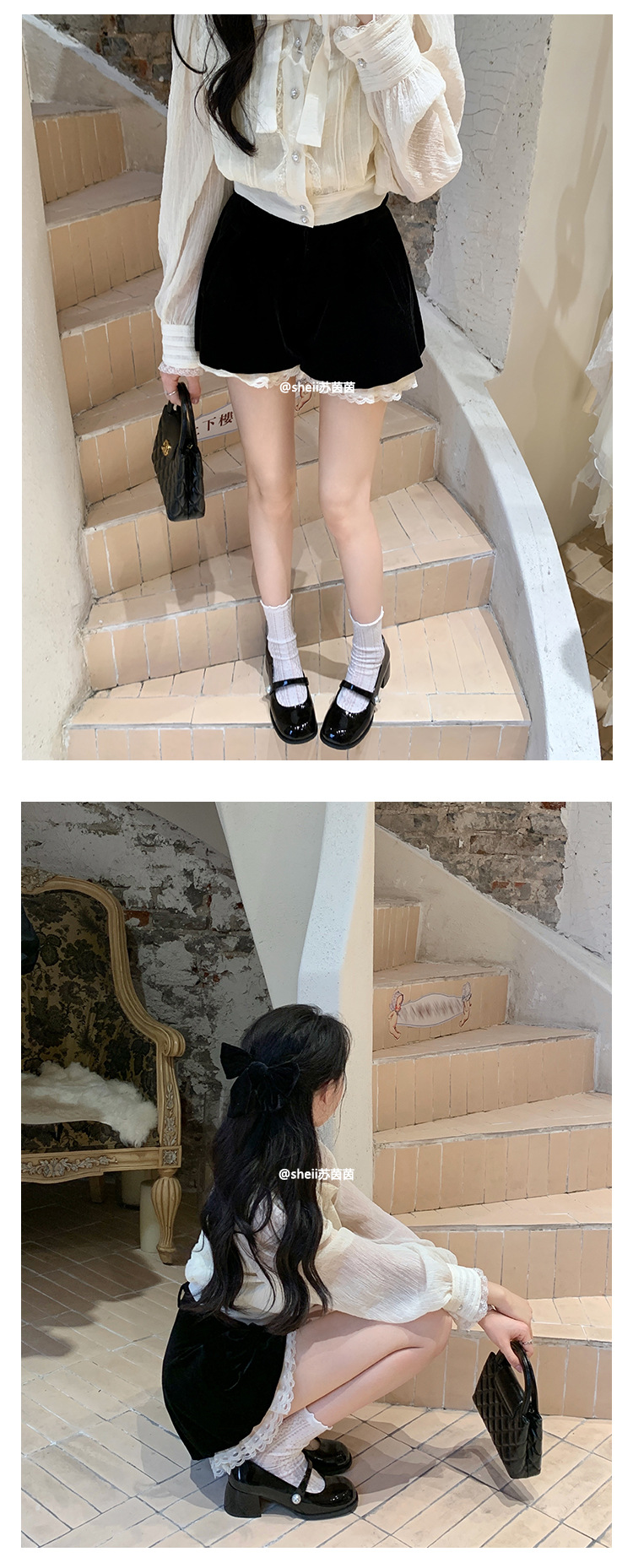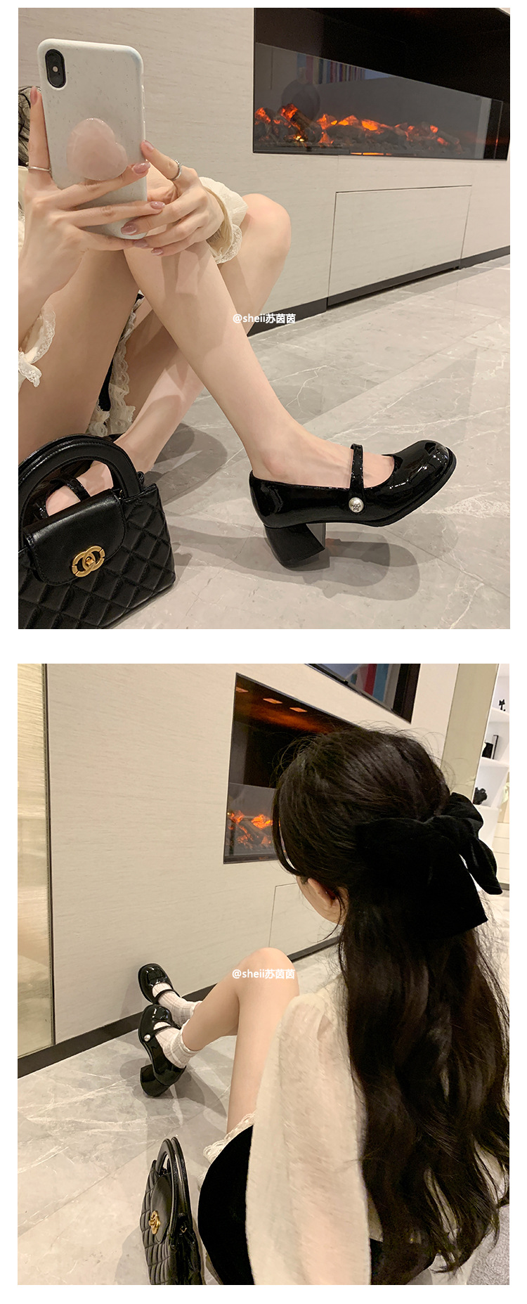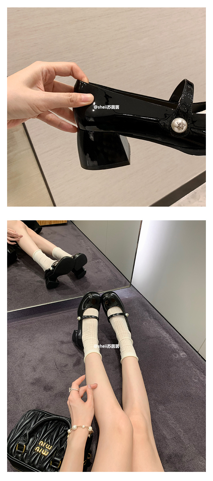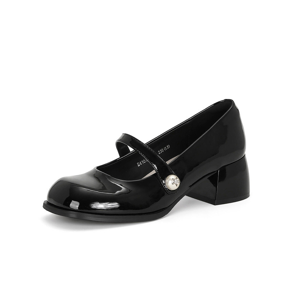 【포도엄마】인간의 바비~ 한국식 라운드 토 진주 굽이 두꺼운 메리제인 여성화, 가죽 단화