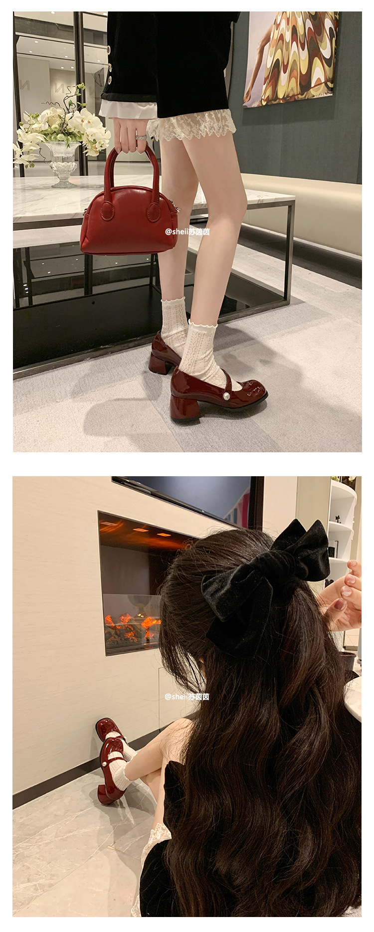 【포도엄마】인간의 바비~ 한국식 라운드 토 진주 굽이 두꺼운 메리제인 여성화, 가죽 단화스토어 가기