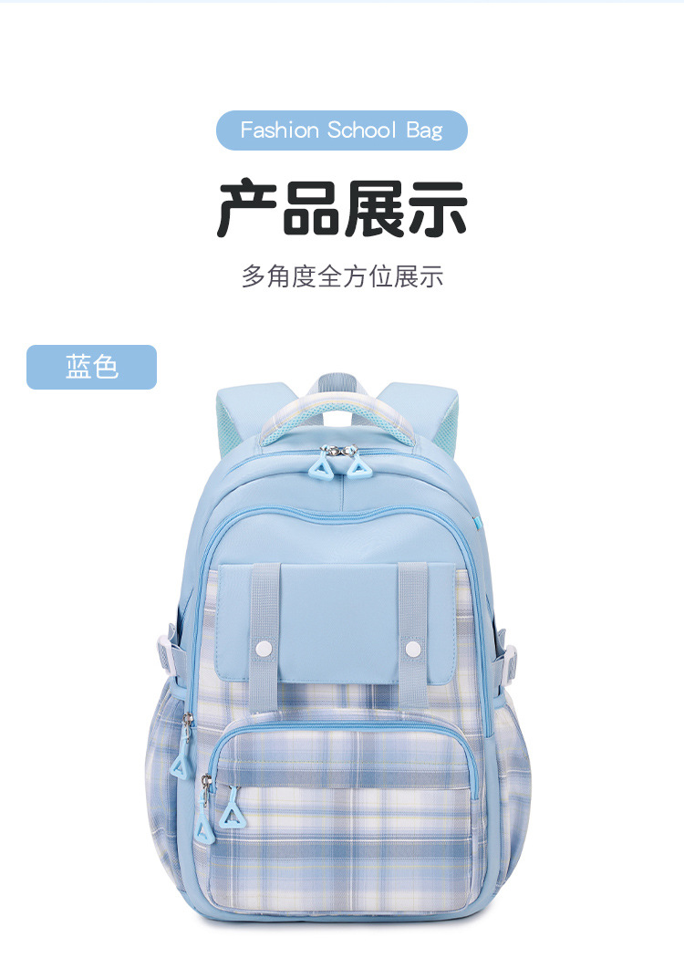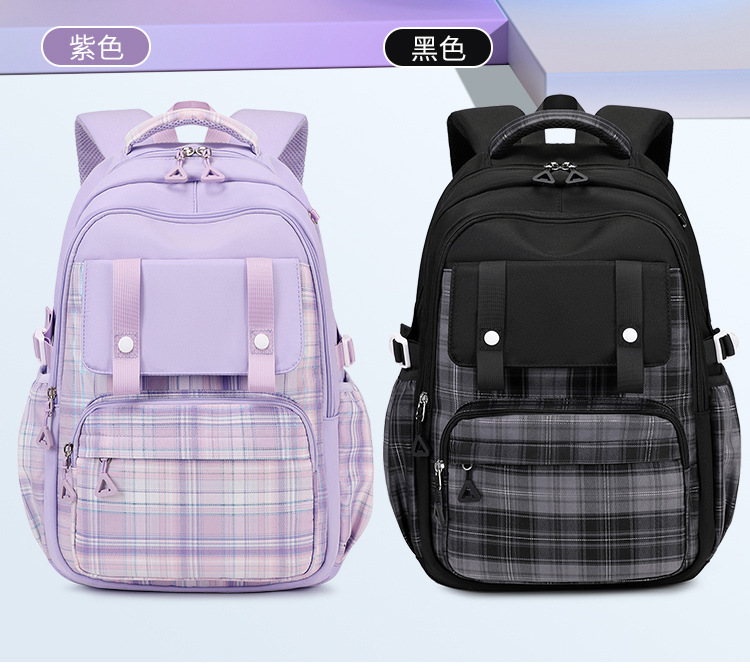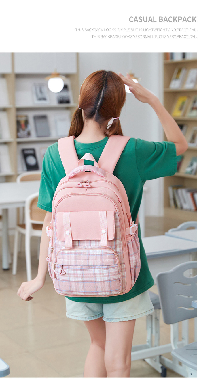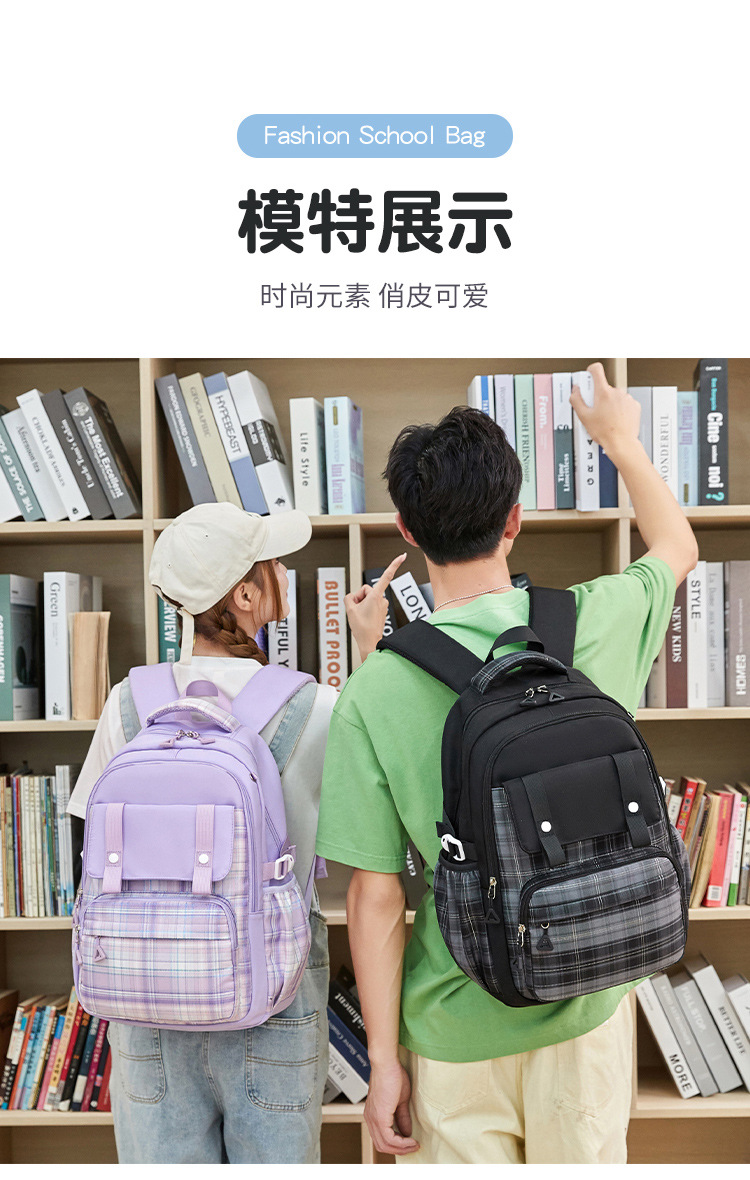 2024 초등학교 학생을위한 새로운 어린이 스쿨 백 3-6 학년 리지 보호 및 경량 격자 무늬 배낭 옥스포드 천 경량 배낭스토어 가기