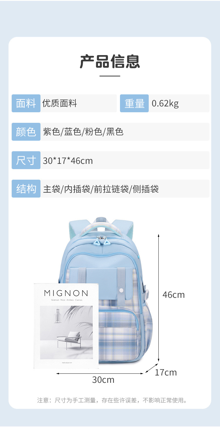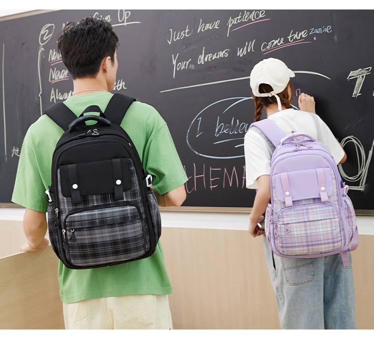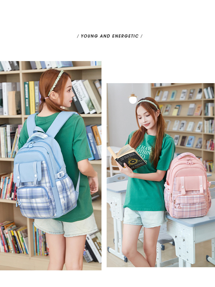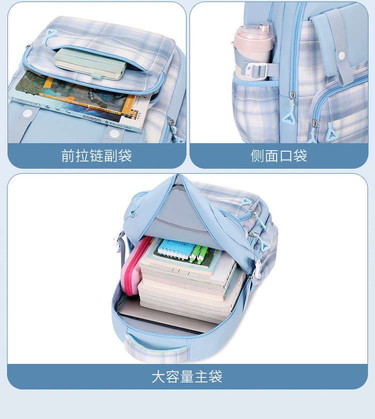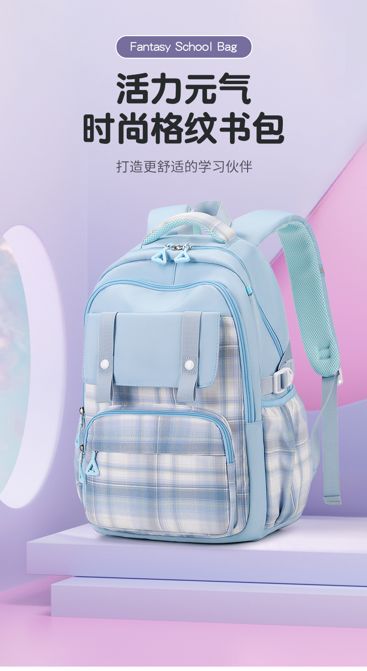 2024 초등학교 학생을위한 새로운 어린이 스쿨 백 3-6 학년 리지 보호 및 경량 격자 무늬 배낭 옥스포드 천 경량 배낭스토어 가기