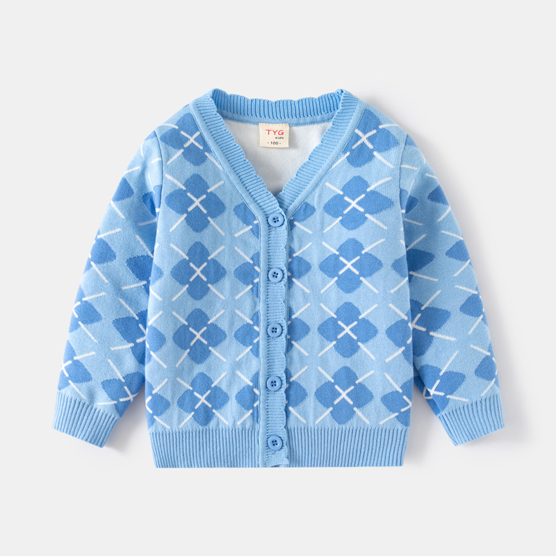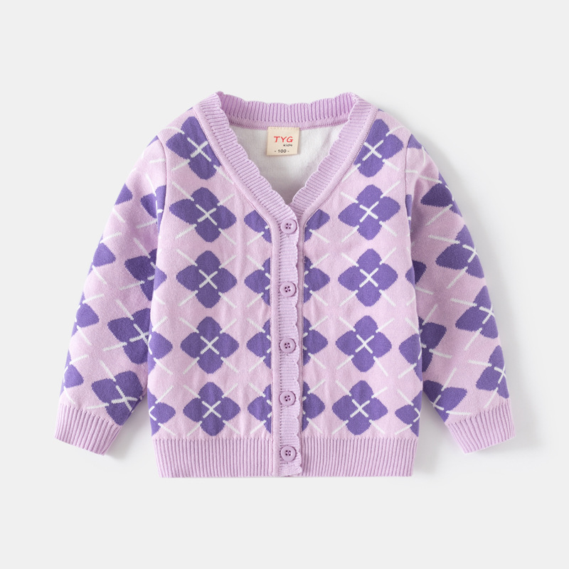여자 스웨터 재고 도매 가을 새로운 아동복 소녀 더블 면 꽃 자카드 니트 카디건 재킷